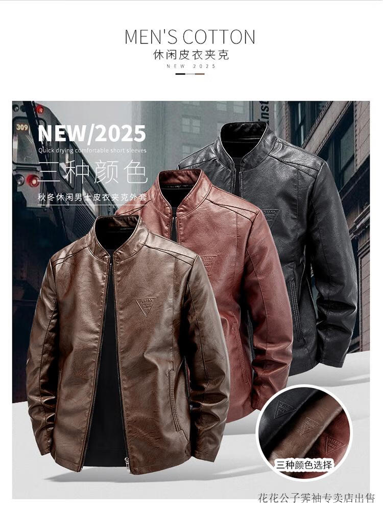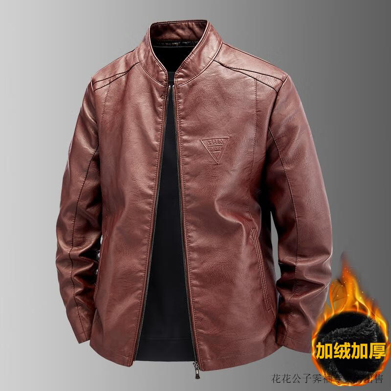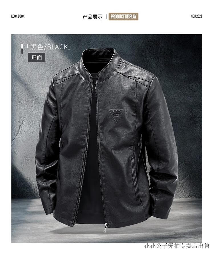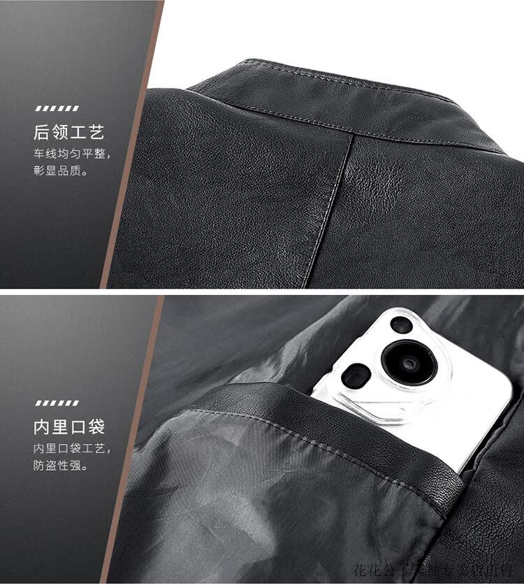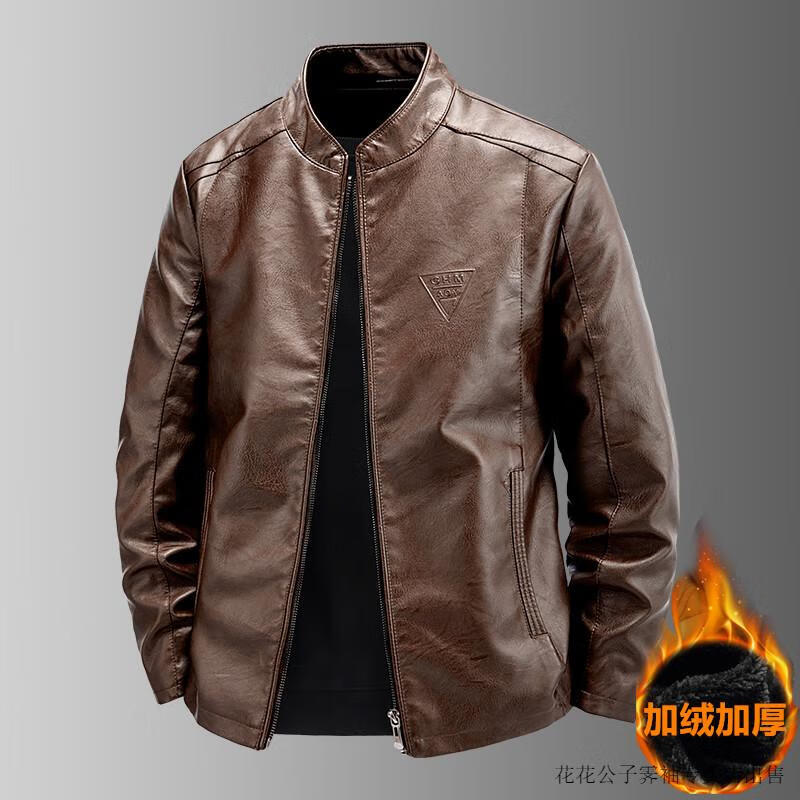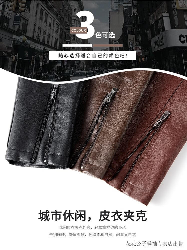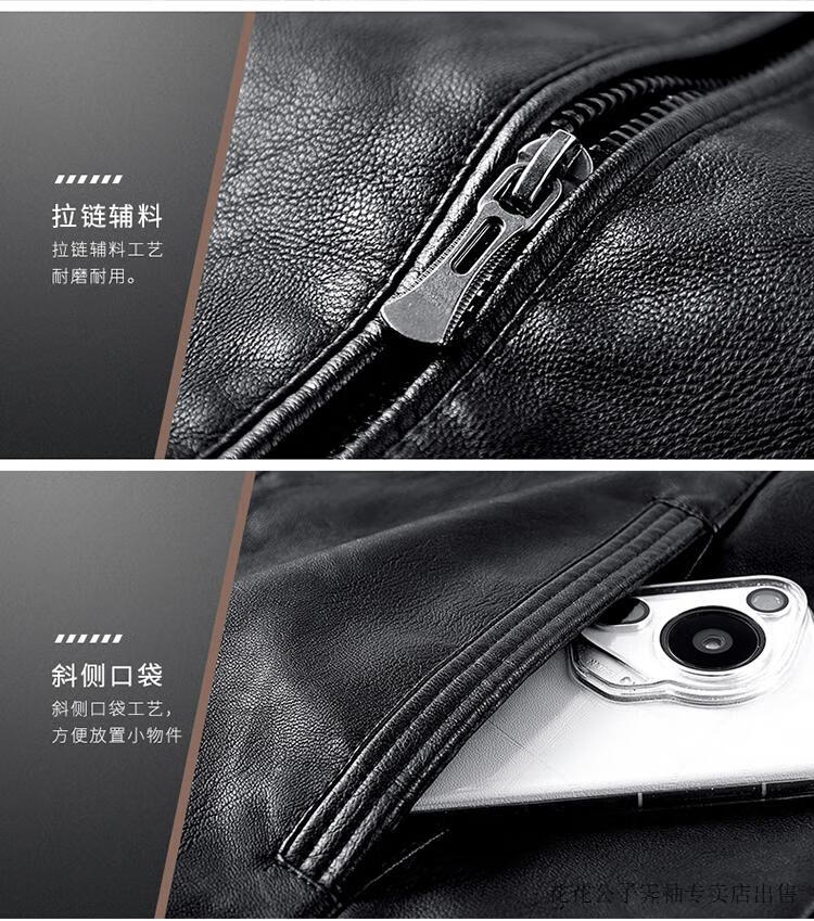 Playboy (PLAYBOY) high-end Haining leather jacket men's stand-up collar plus velvet thickening slim casual trendy handsome leather jacket motorcycle jacket black without velvet BJ6618 2XL