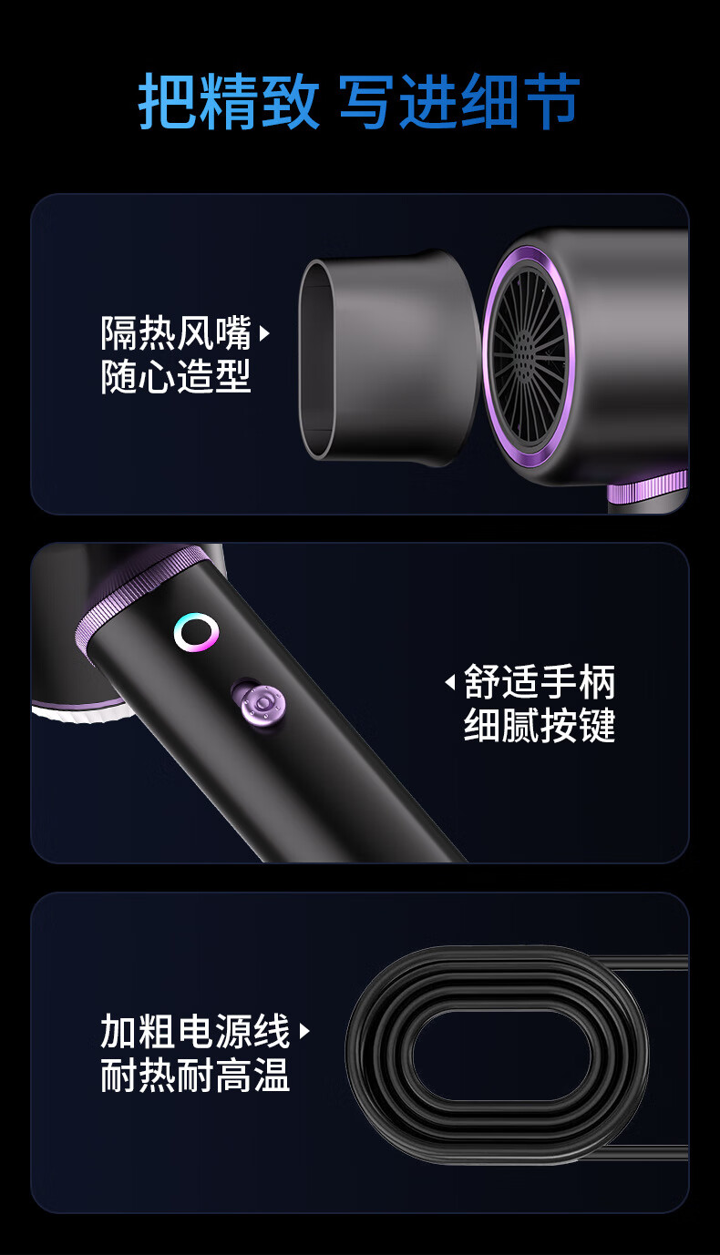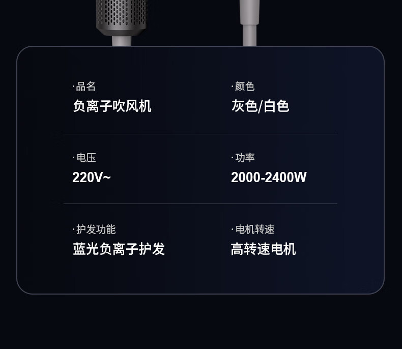 Xiaomi Baby Series Hair Dryer Home High Wind Negative Ion Hair Care Hair Dryer Barber Shop High Power Non-Hurting Electric Hair Dryer Gray 2400W + Ultra High Speed + Negative Ion Hair Care