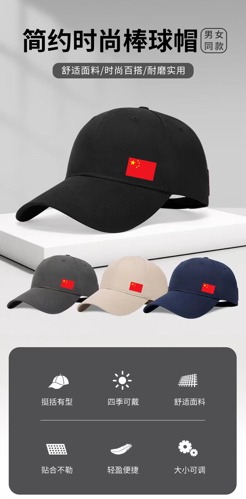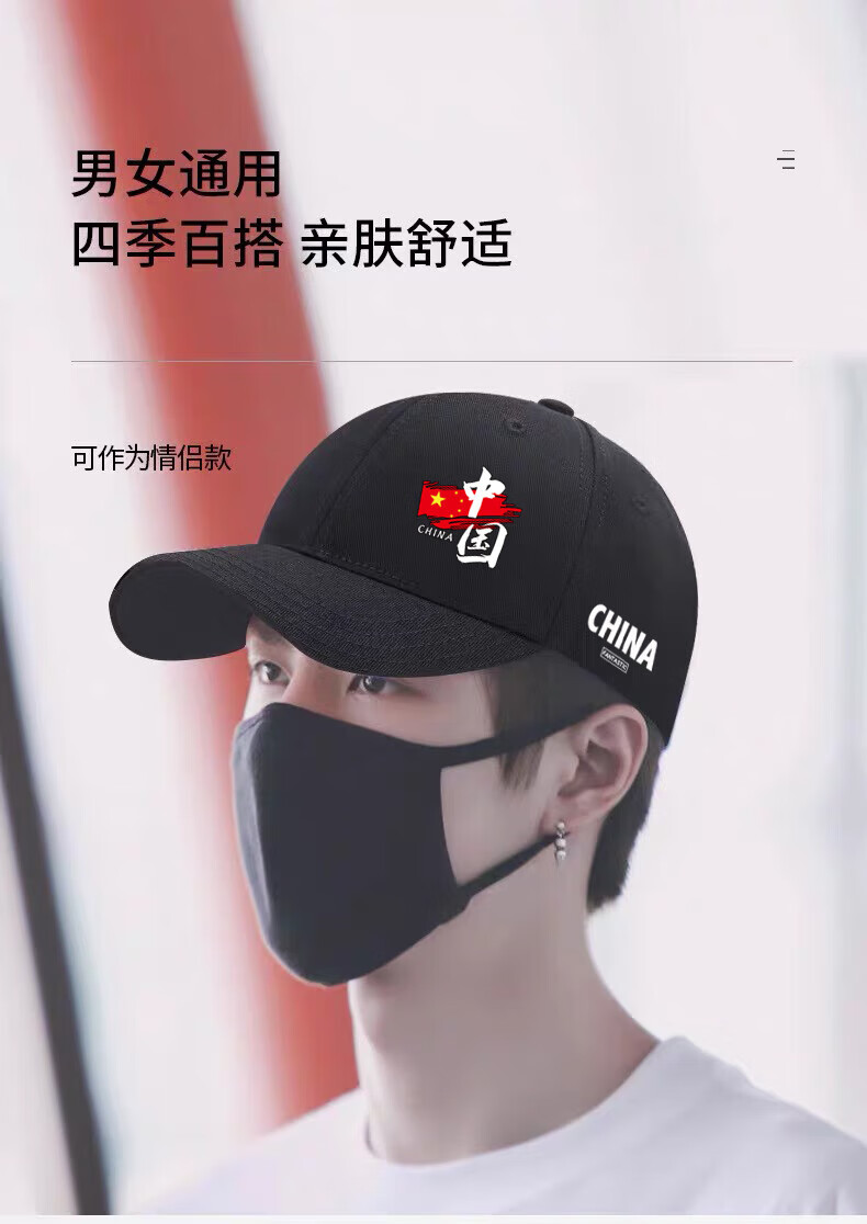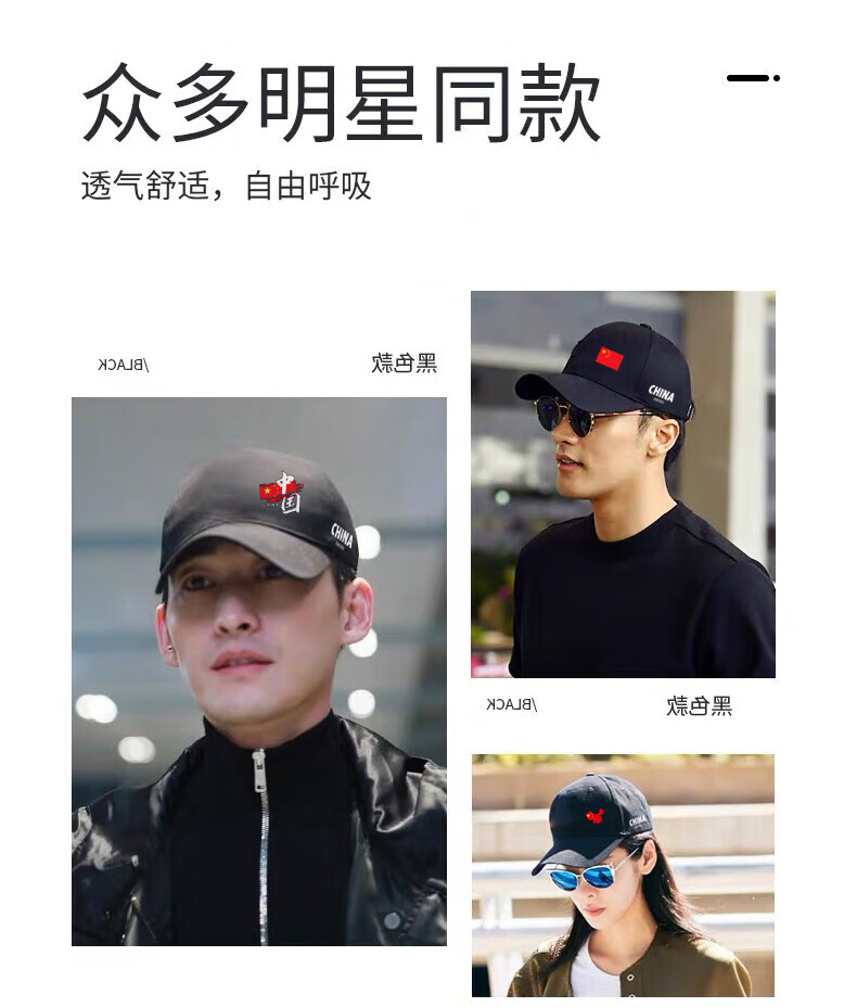 CHINA National Trendy Hat Men's Versatile New Face Revealing Small Spring Autumn and Winter Sun Hat Women's Outdoor Leisure Peaked Hat Black China CHINA One Size Adult Four Seasons Version Metal Buckle Adjustment 54-62cm