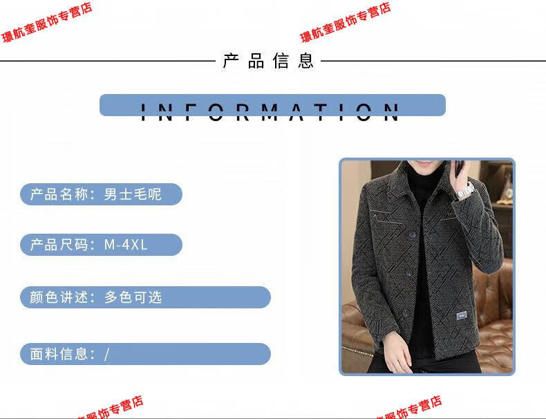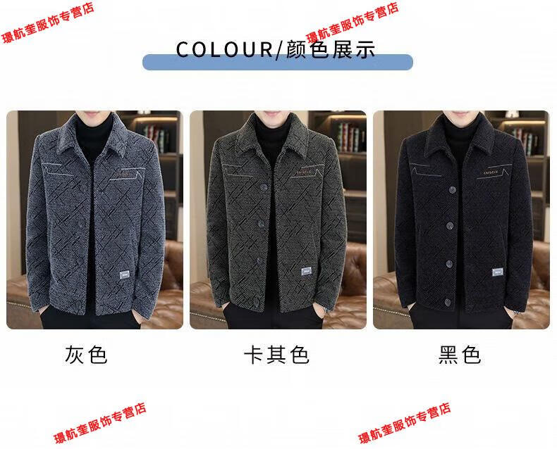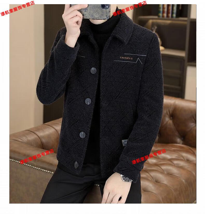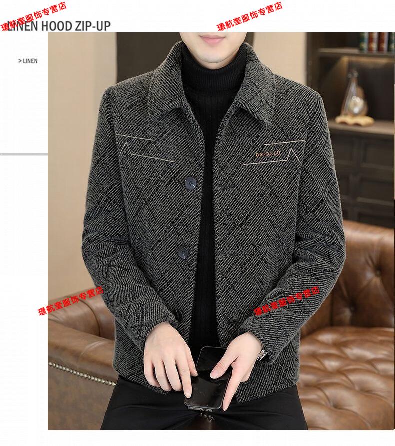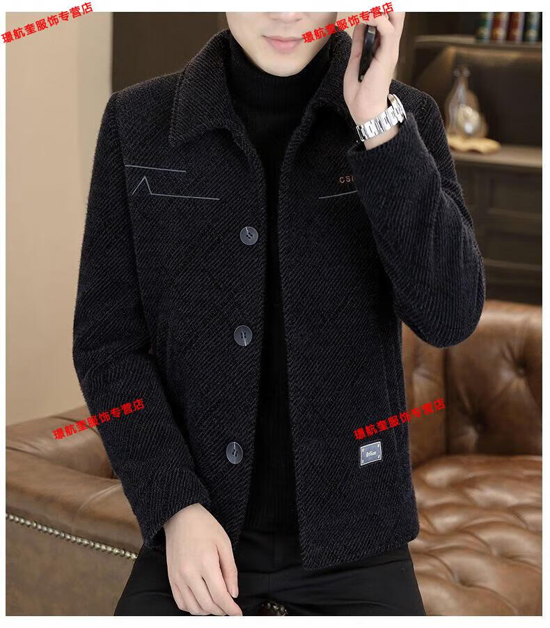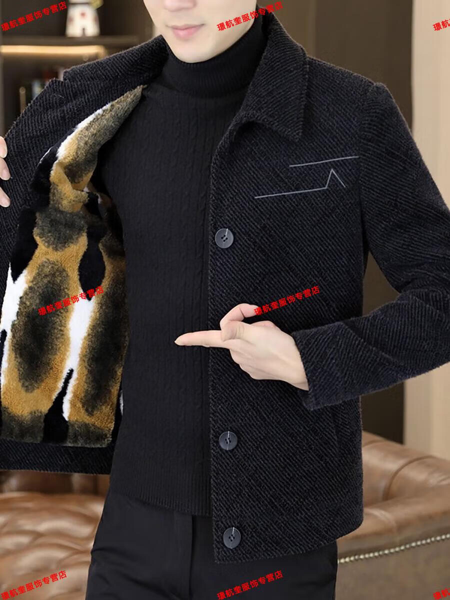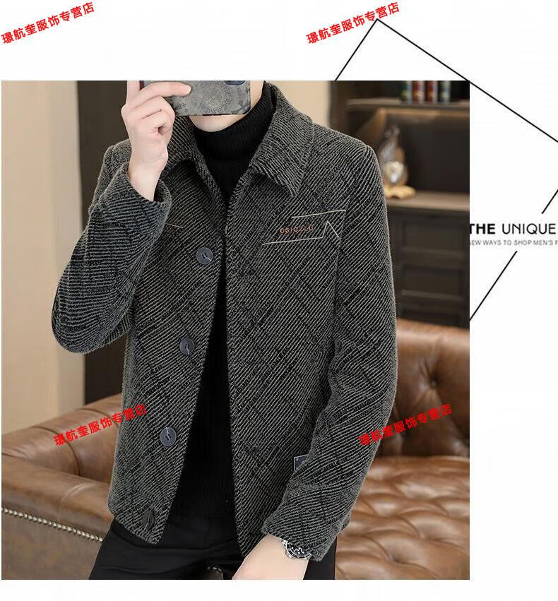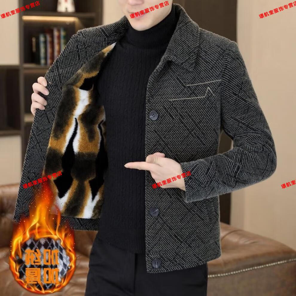 Playboy Winter Warm Plus Velvet Thick Woolen Jacket Men's Slim Casual Lapel Jacket Winter Short Woolen Coat Gray # Velvet L 110-130