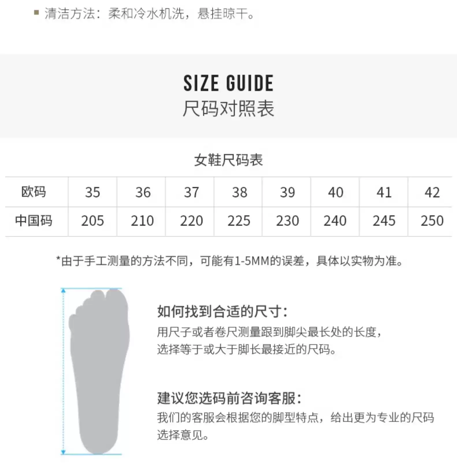 China (cm) 36 - 37 38 - 39 40 - 42 43 - 44 45 - 47