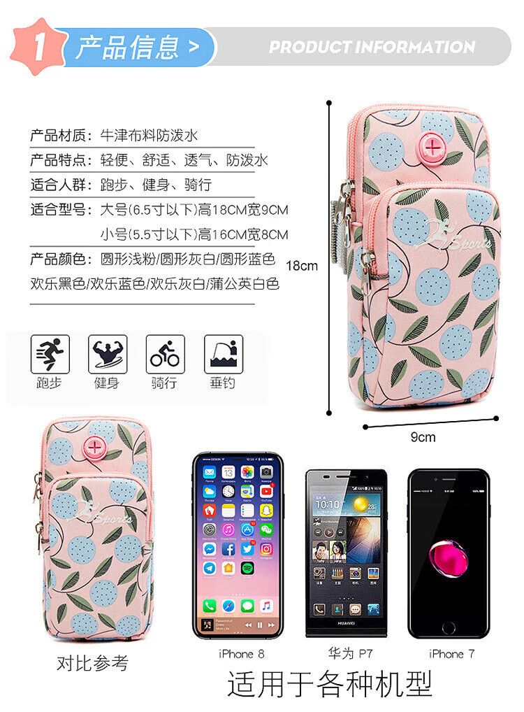 OEING running bag sports fitness outdoor mobile phone arm bag men and women mobile phone bag arm bag night running wrist arm bag B093 sunflower powder large size