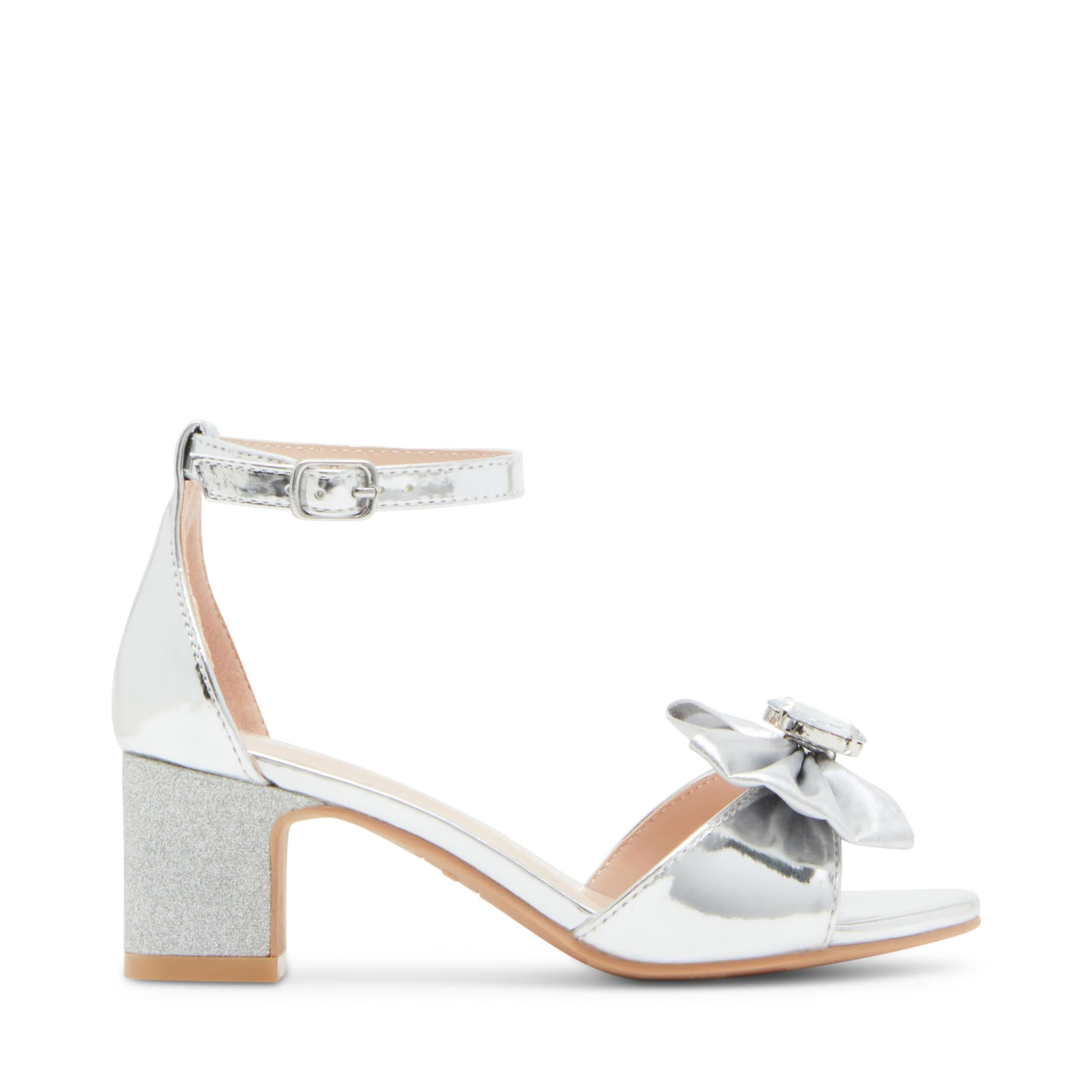 Steve Madden Girls Clair Heeled Sandal, Silver, 5 Olds Silver 5 Olds
