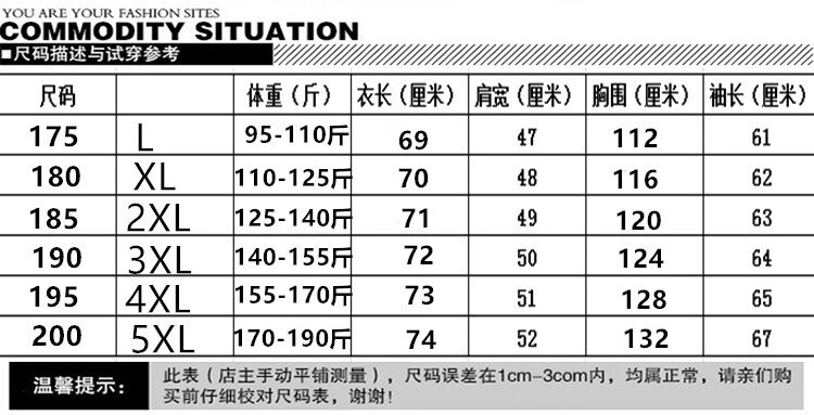 China (cm) 165 / 88-90 170 / 96-98 175 / 108-110 180 / 118-122 185 / 126-130
