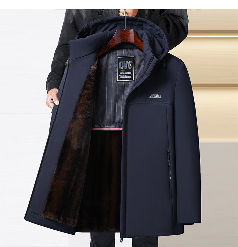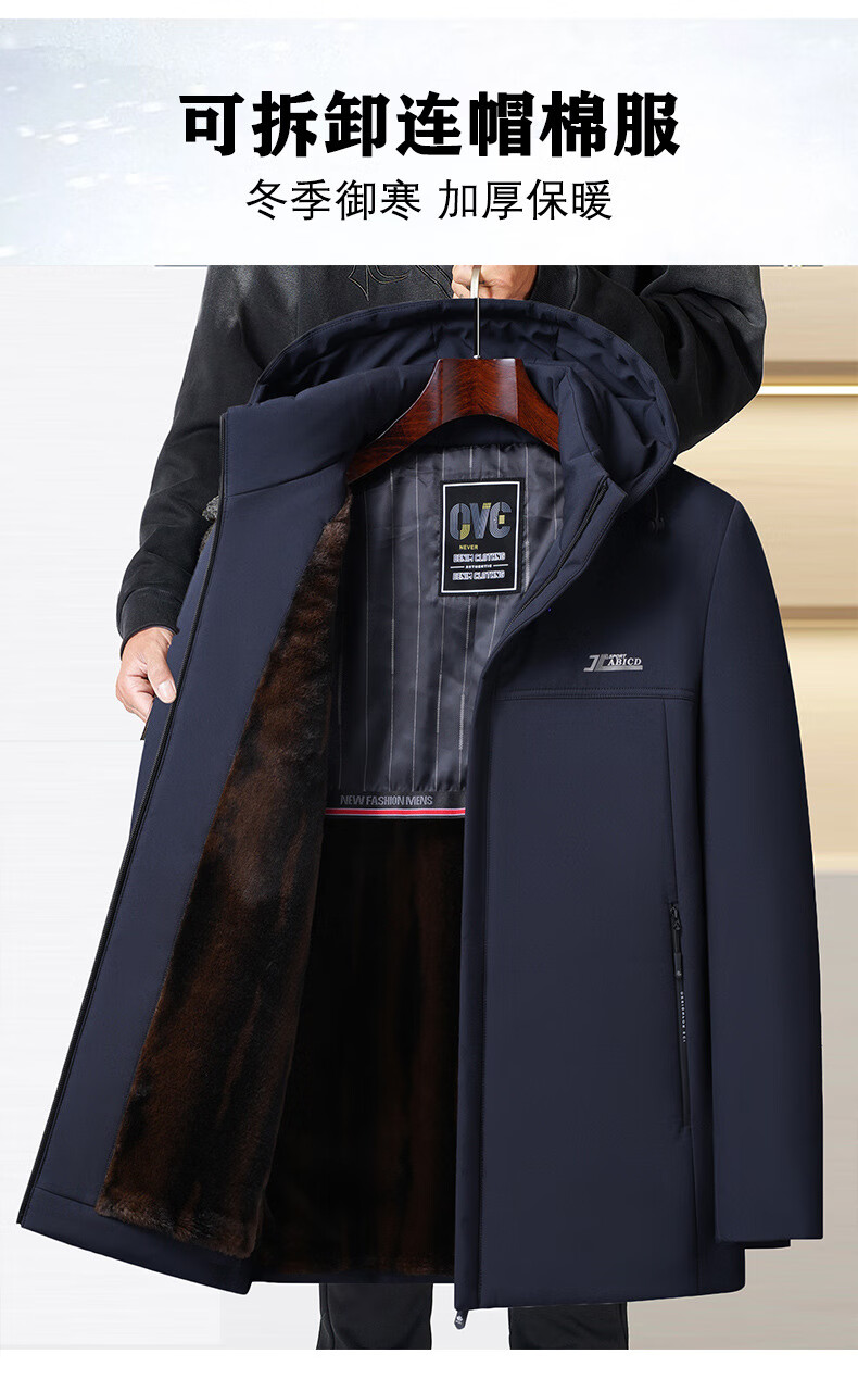 Classic car winter dad men's warm jacket cotton padded jacket for middle-aged and elderly people loose plus velvet thickened mid-length cotton coat black 3687 model L 175 (weight 95-110Jin Jin equals 0.5 kg)