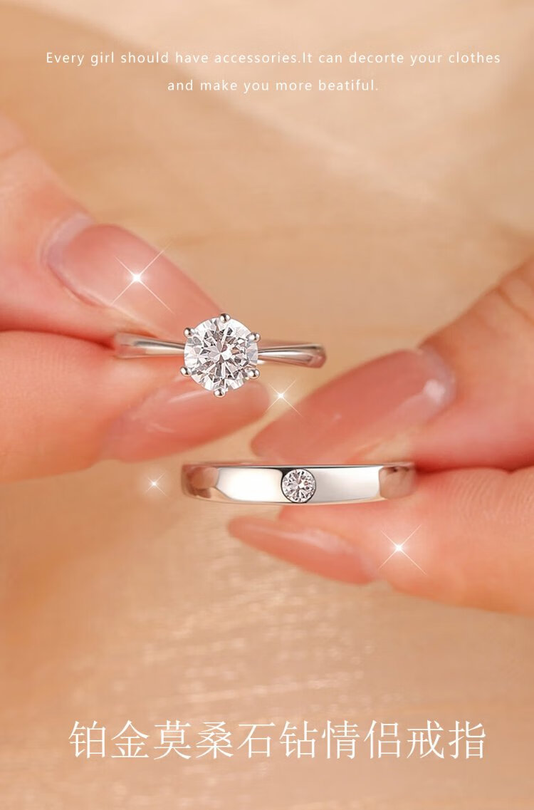 RHM platinum ring for women one carat moissanite PT950 platinum wedding couple ring birthday gift for girlfriend platinum couple ring pair + certificate + gift box
