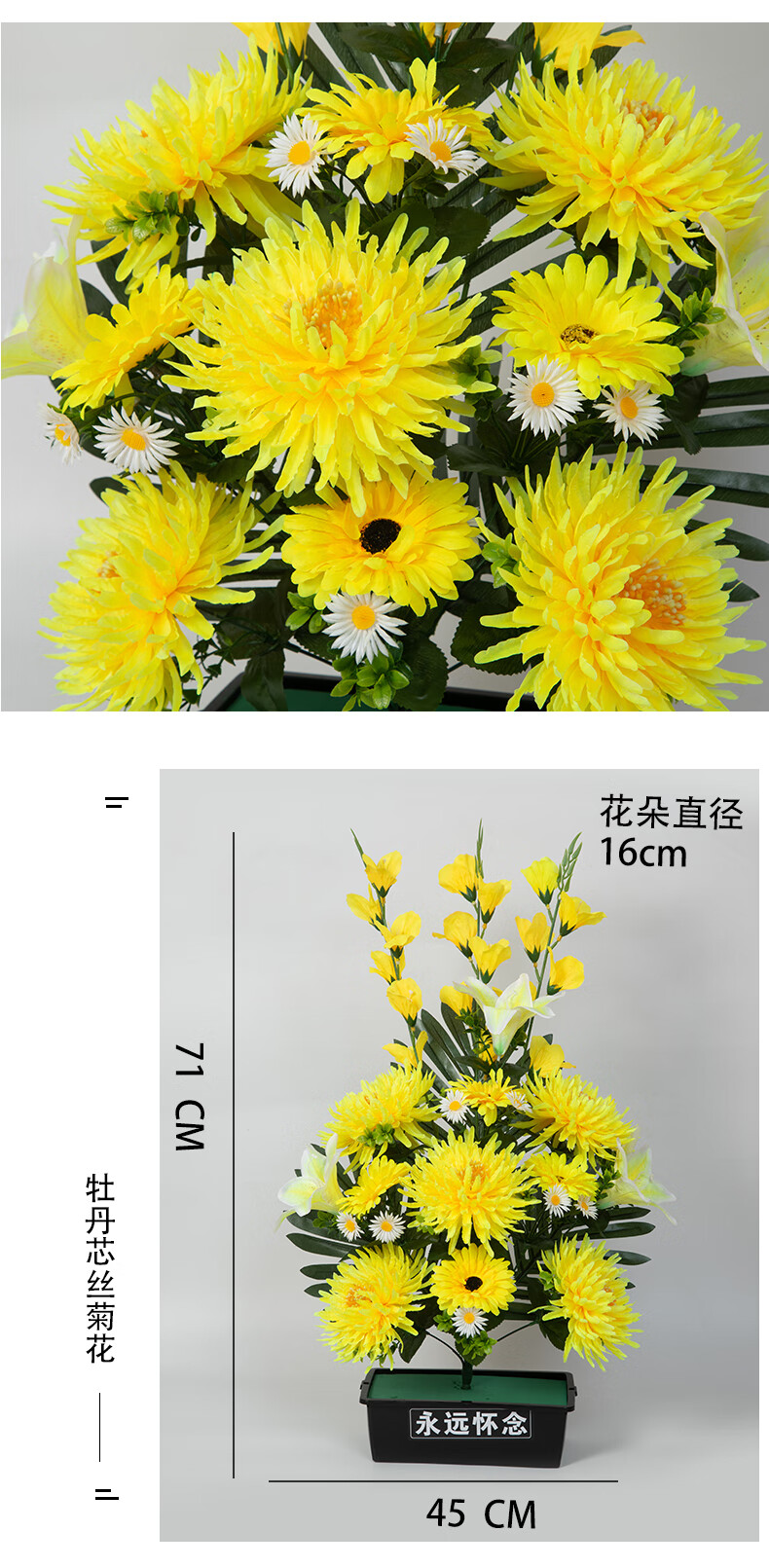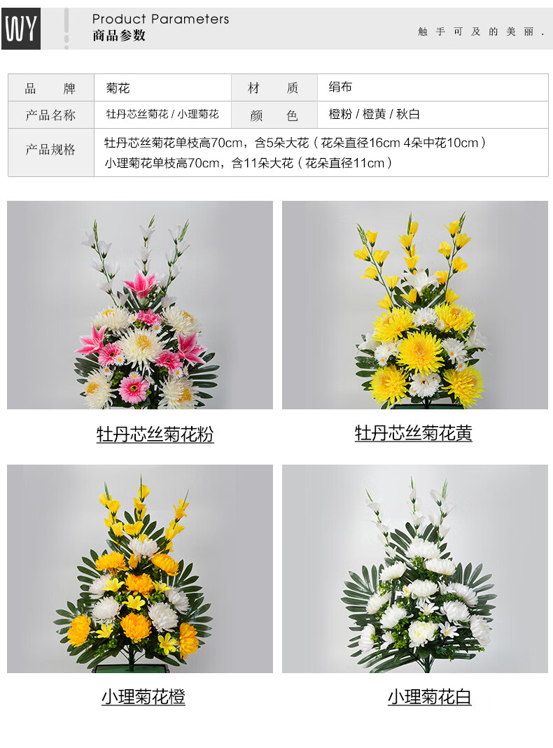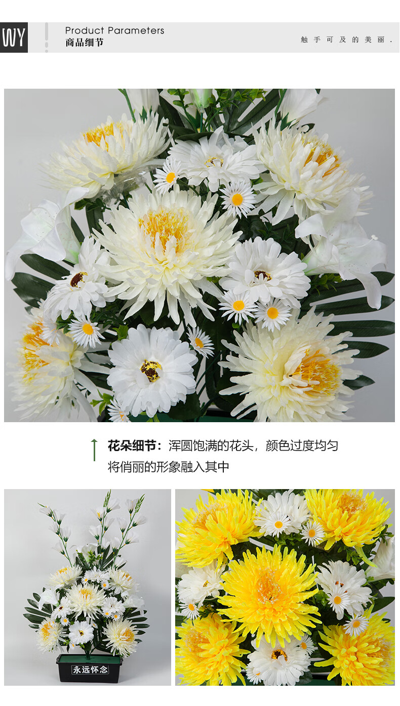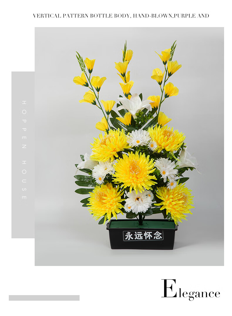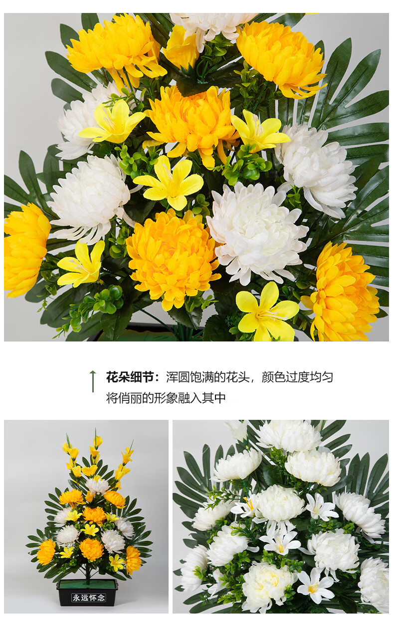 Jingga grave-sweeping fake flowers, silk flowers, fake flowers, Qingming Festival sacrificial flowers, plastic simulated chrysanthemum bouquets placed in front of graves, 19 Xiaoli chrysanthemums (yellow)