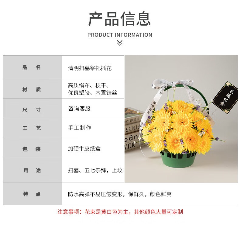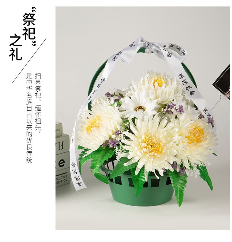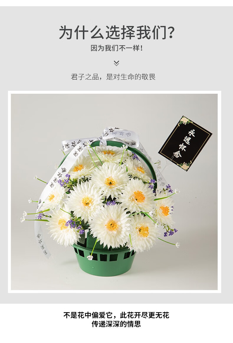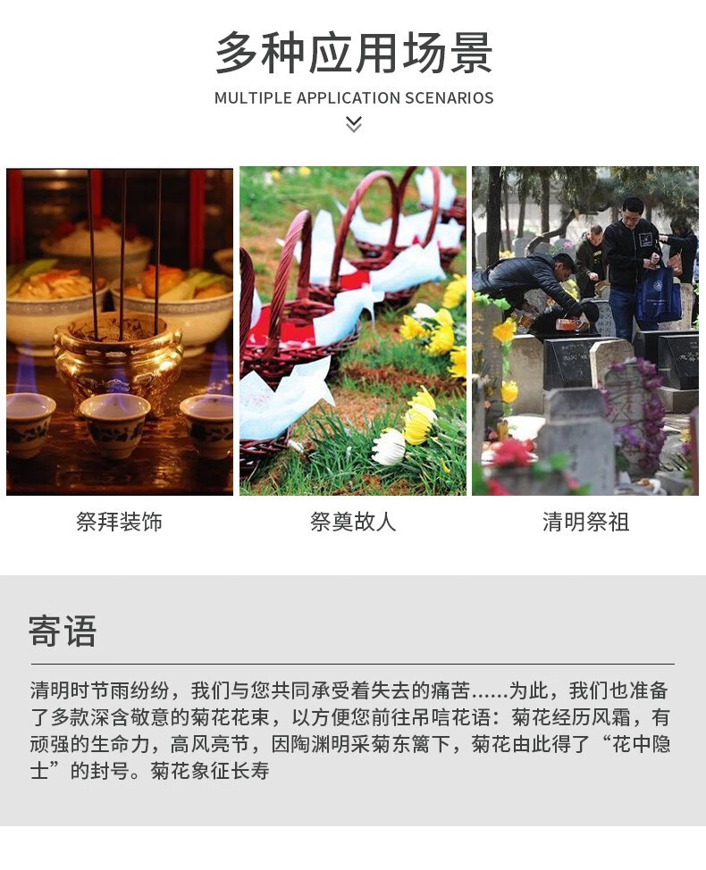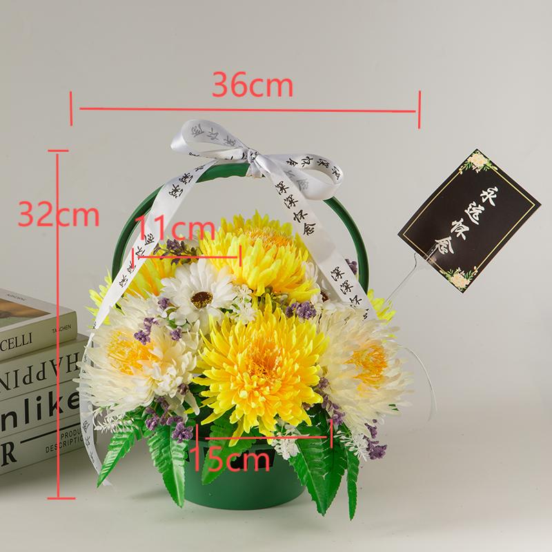Jingga grave-sweeping fake flowers, Qingming flowers, simulated flowers, tombstones, chrysanthemum baskets, grave-going sacrificial supplies, 18-head flat chrysanthemum combination, 10-head silk chrysanthemum, flat chrysanthemum combination, hand bouquet + flower basket, yellow and white