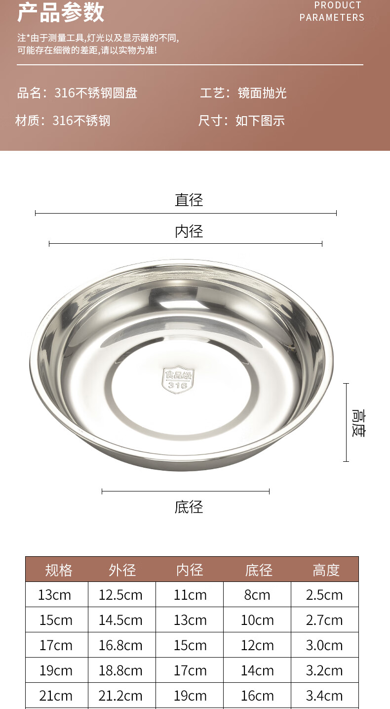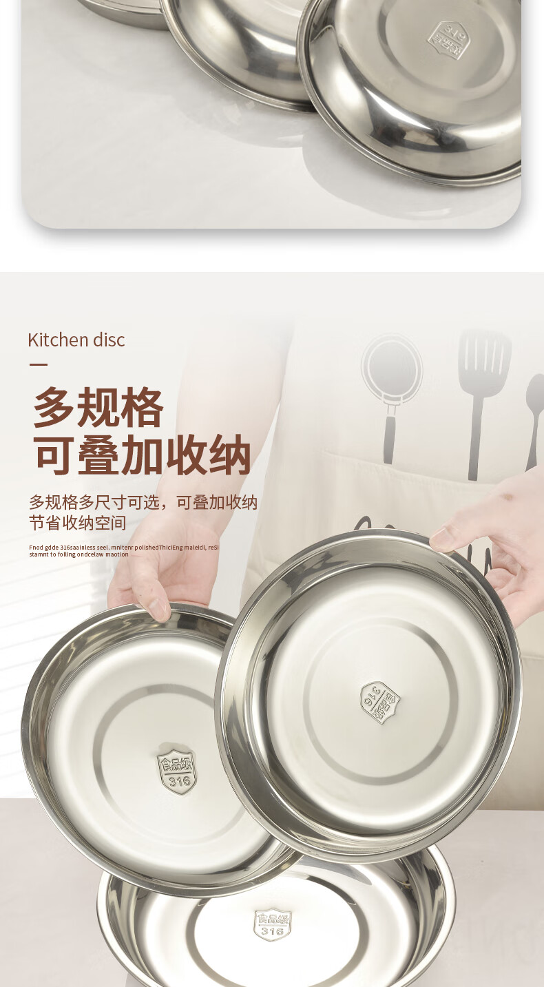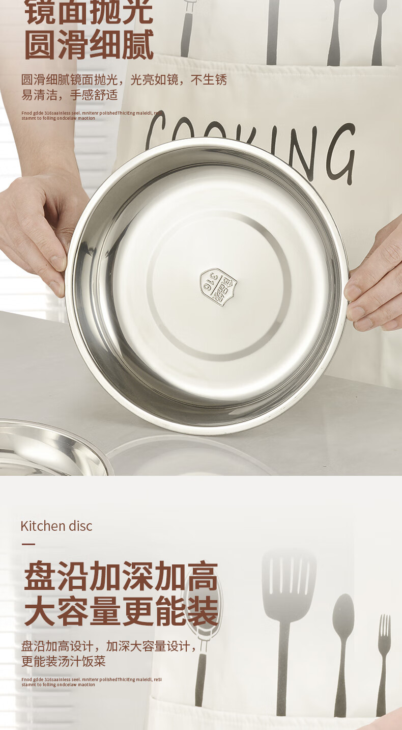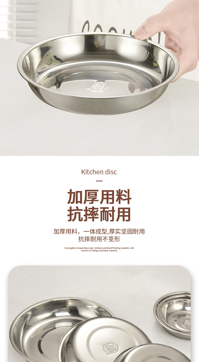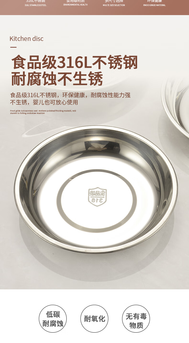 Zwilling German quality food-grade 316 stainless steel disc children's baby household flat-bottom preparation plate steaming dish meal thickened 316 stainless steel disc 12cm