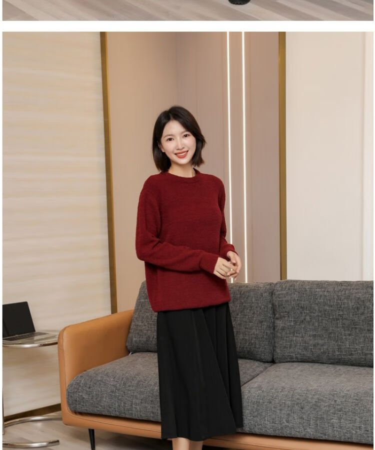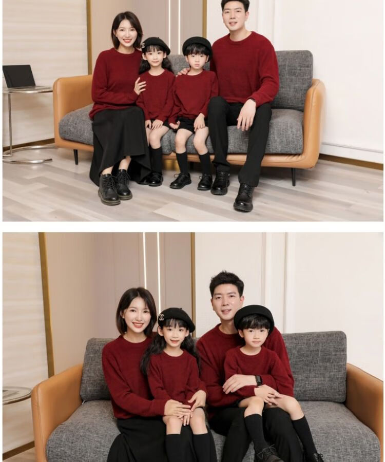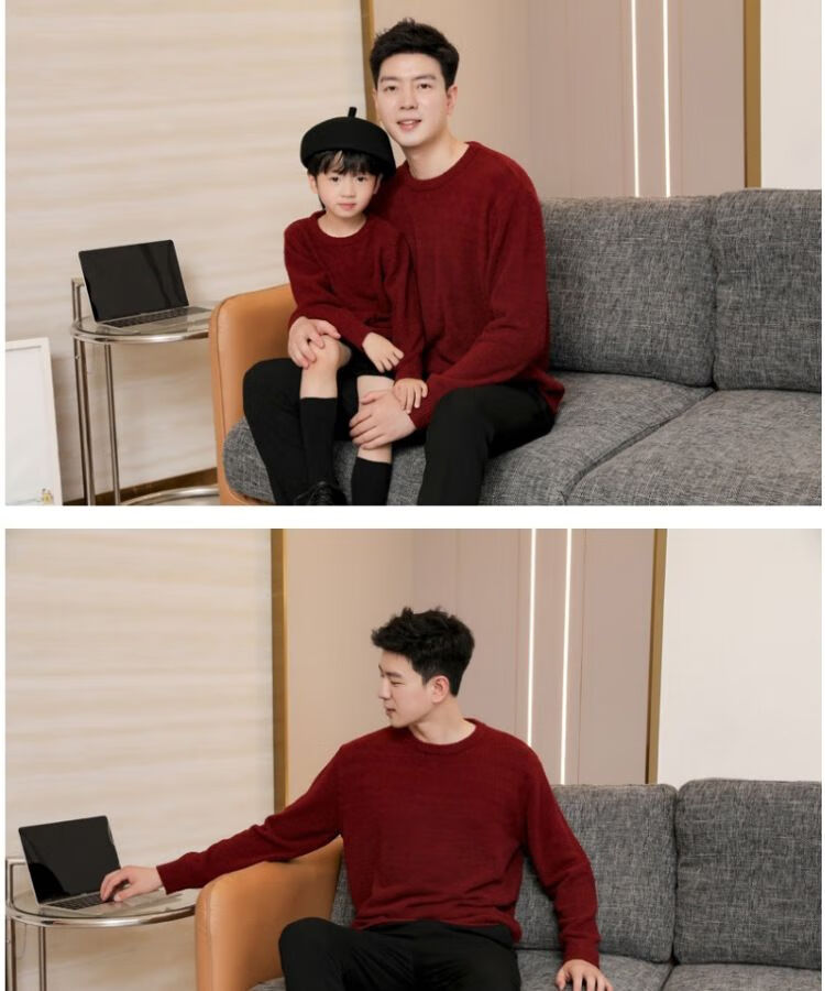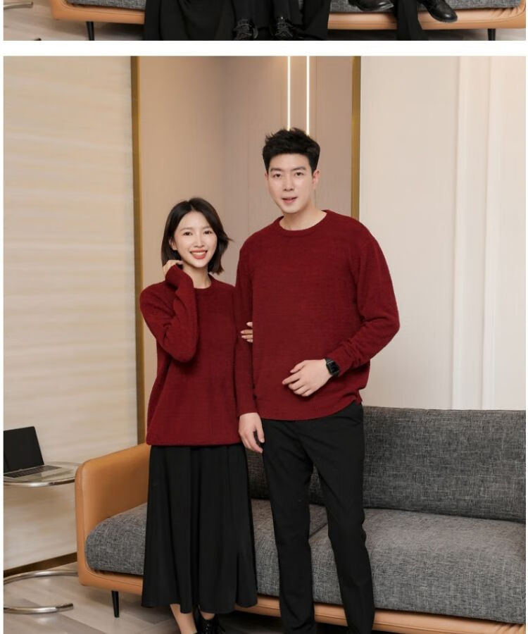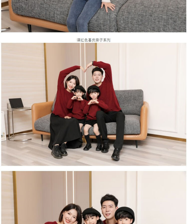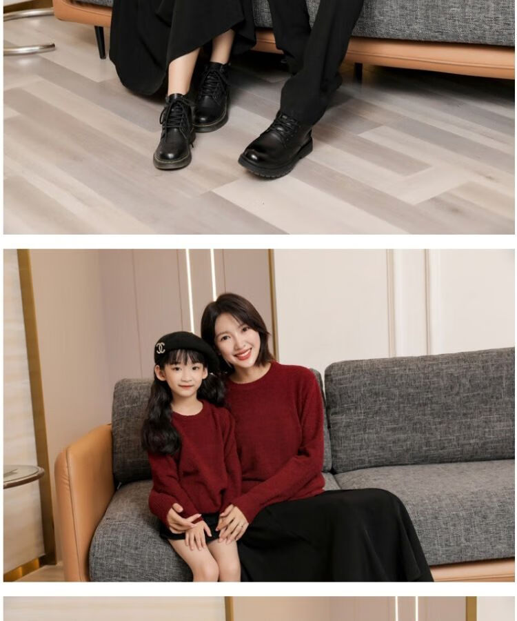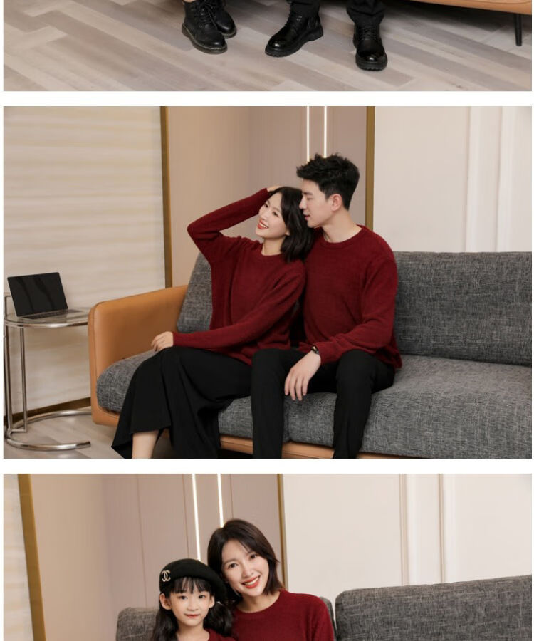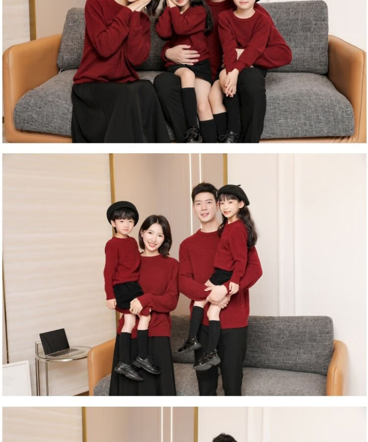 G.duck parent-child clothing for a family of three sweaters 2025 autumn and winter new family clothing Christmas and New Year red alpaca mother-daughter clothing burgundy thin section 170 adult M