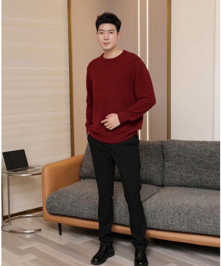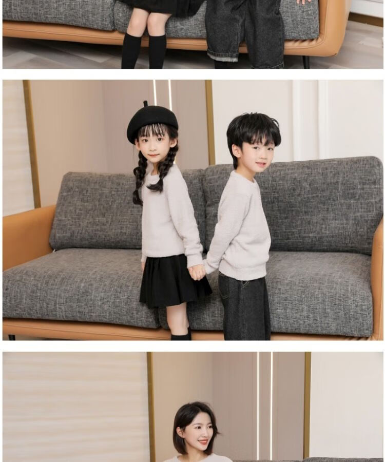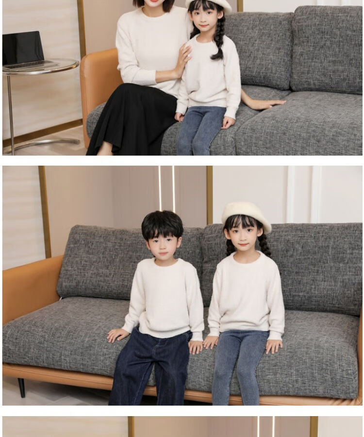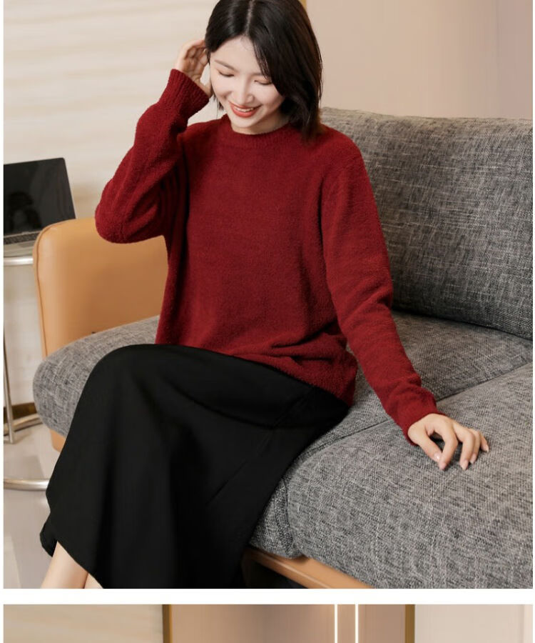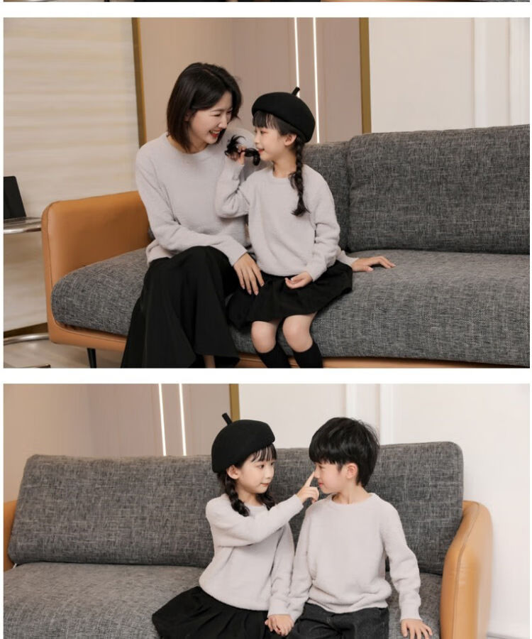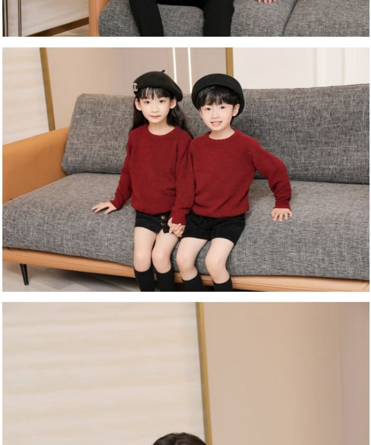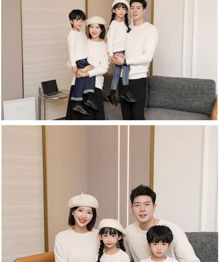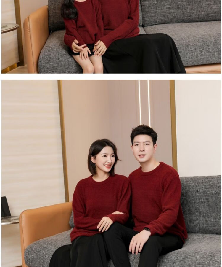 G.duck parent-child clothing for a family of three sweaters 2025 autumn and winter new family clothing Christmas and New Year red alpaca mother-daughter clothing burgundy thin section 170 adult M