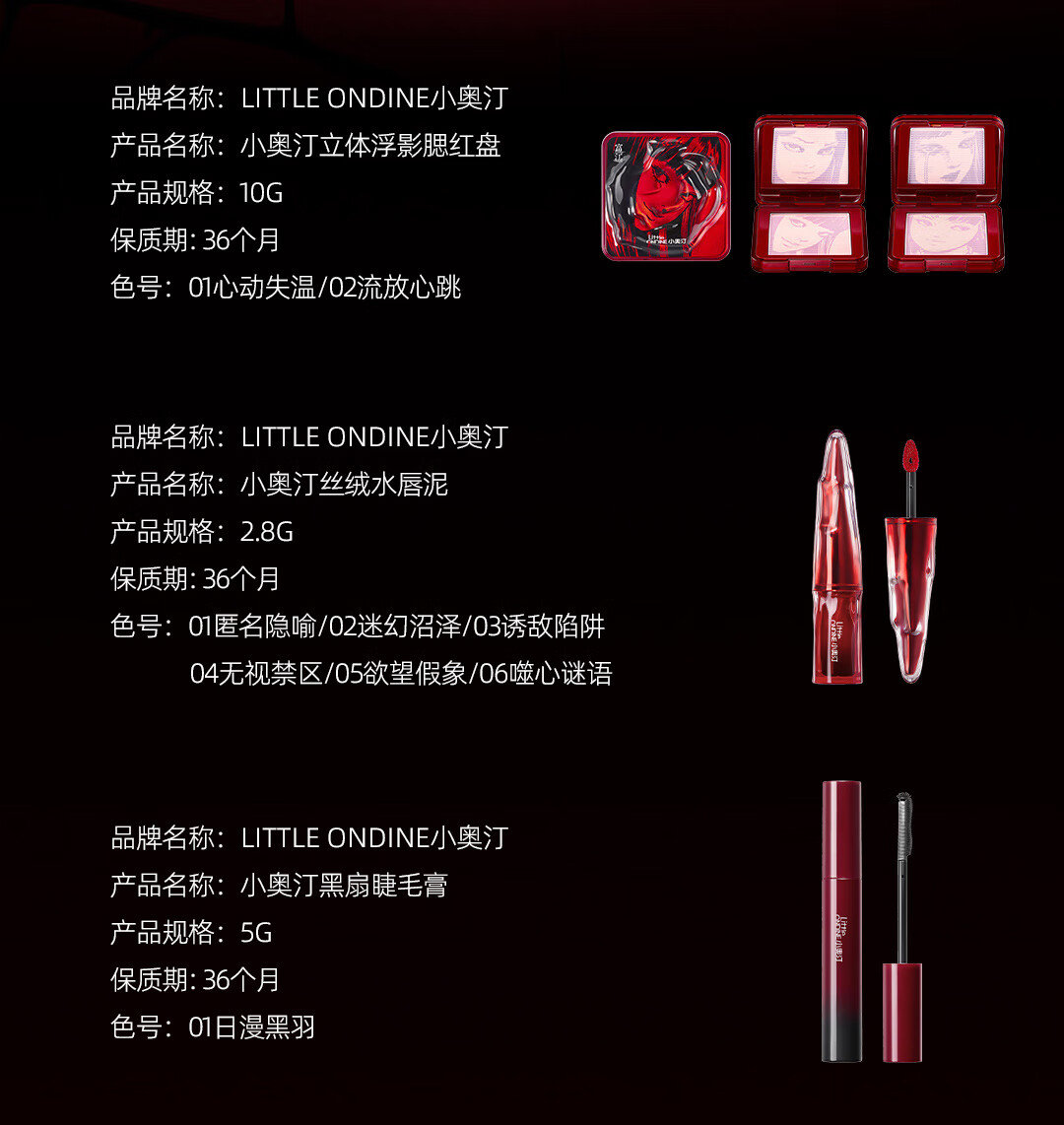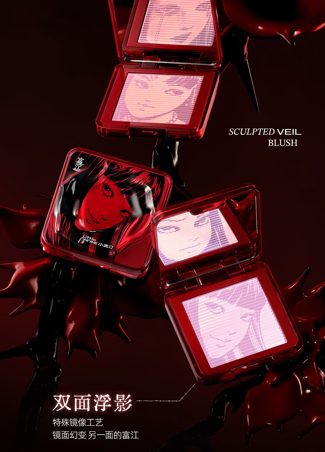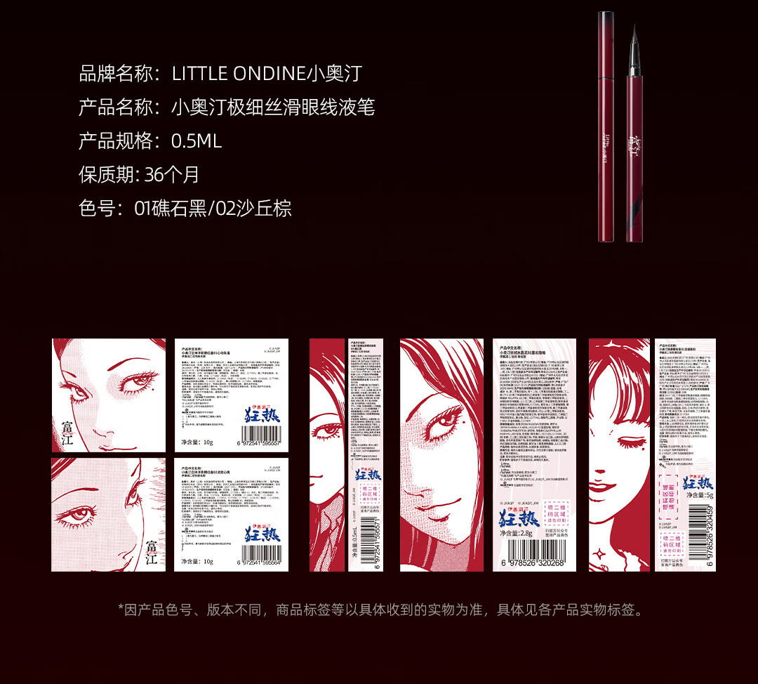 Little Ondine (littleondine) Ito Junji fanatical co-branded gift box blush lip glaze eyeliner girlfriend birthday gift Tomie series eyeliner pen 01 + lip glaze 01 + blush 01 free co-branded materials