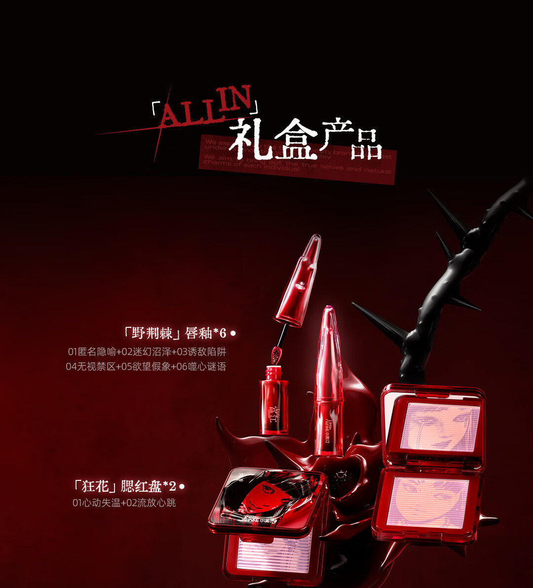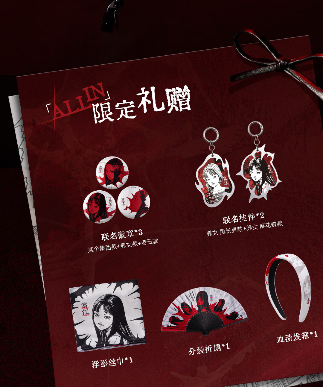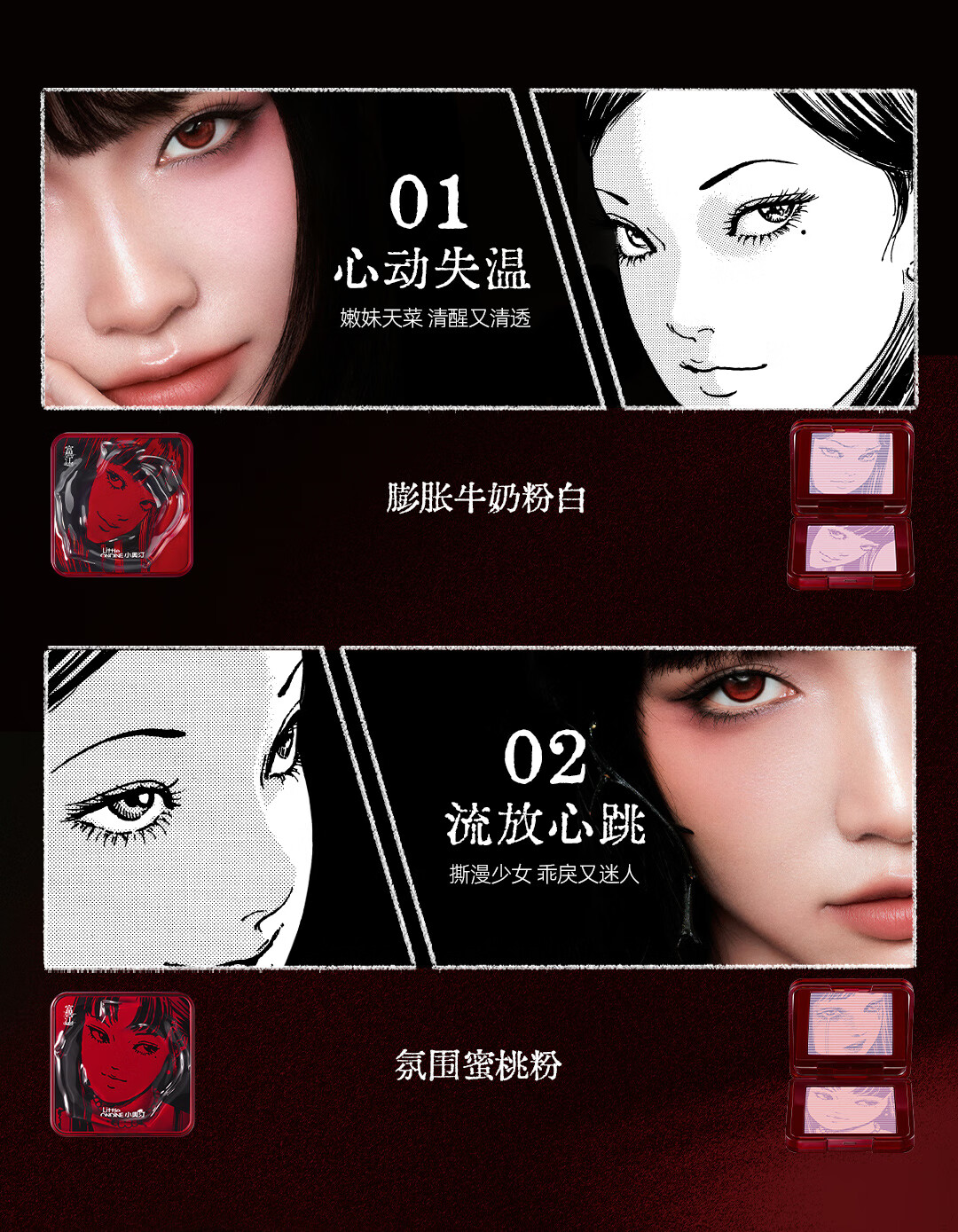 Little Ondine (littleondine) Ito Junji fanatical co-branded gift box blush lip glaze eyeliner girlfriend birthday gift Tomie series eyeliner pen 01 + lip glaze 01 + blush 01 free co-branded materials
