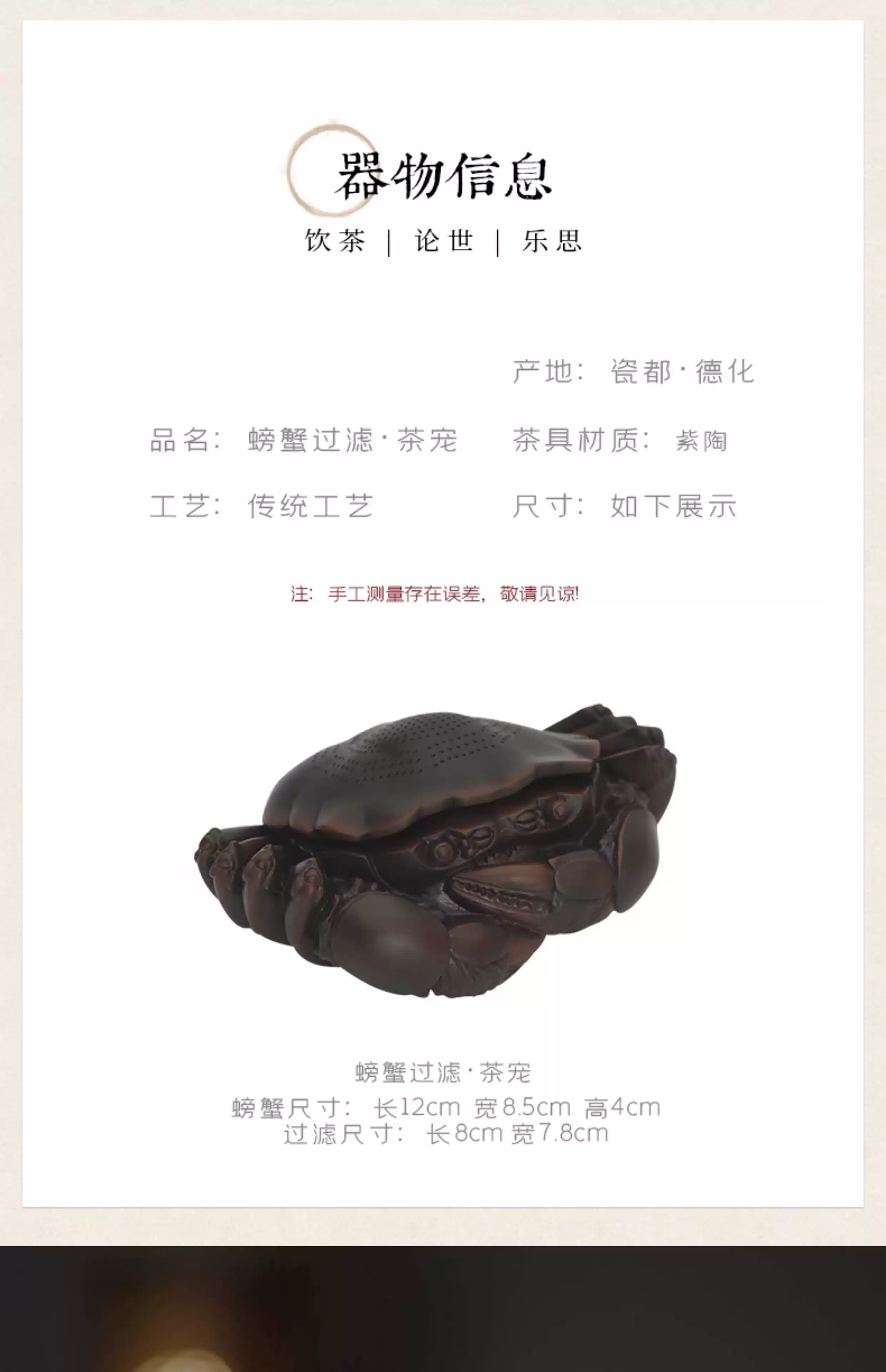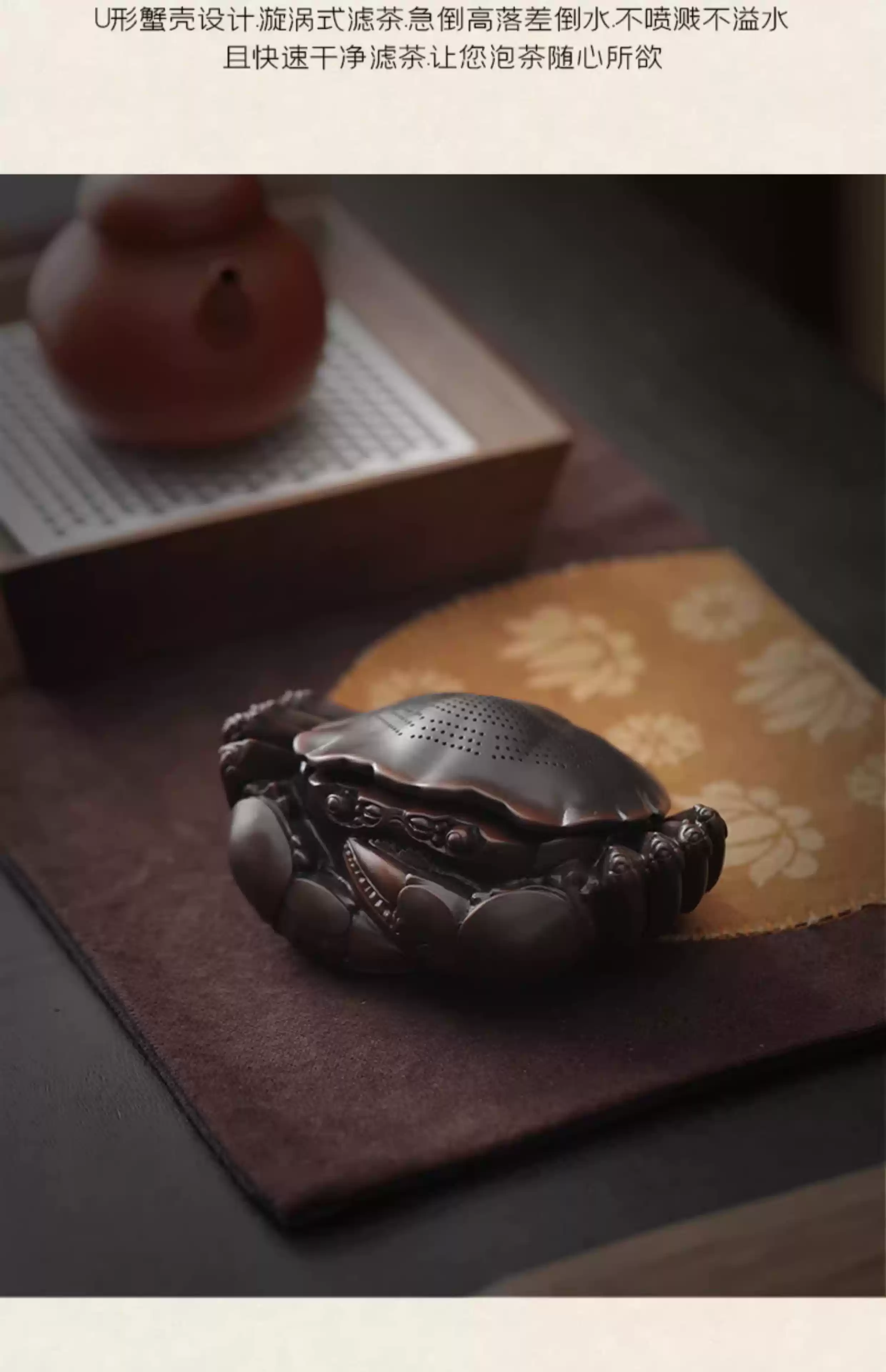 The middle shopkeeper's Purple Pottery Crab Windfall General Tea Pet Tea Strainer Purple Pottery One-piece Filter Set Can Raise Ornaments Household Tea Filter Crab Tea Strainer/Ornament-Purple Pottery