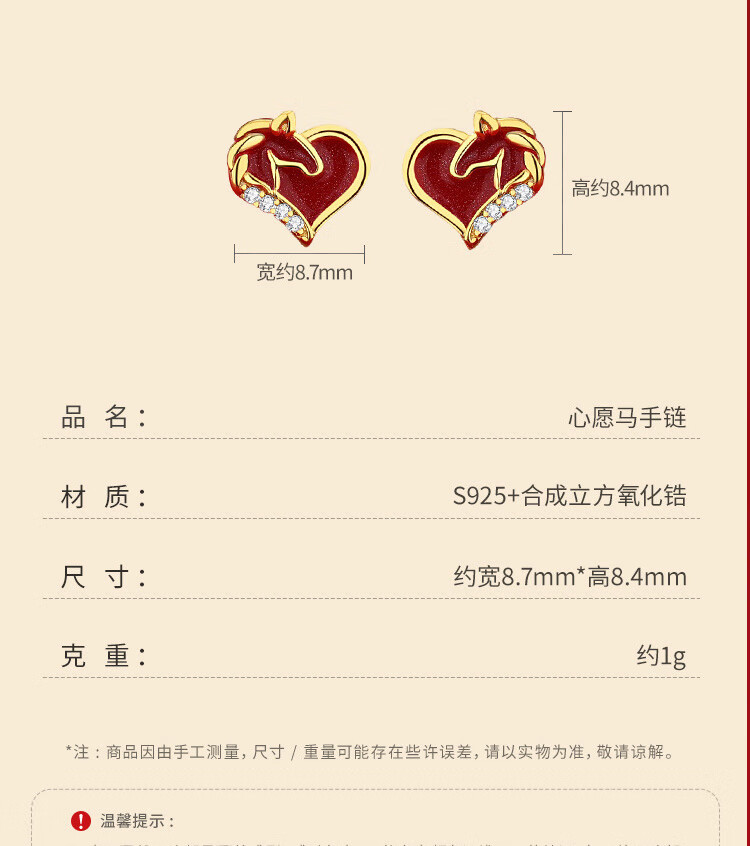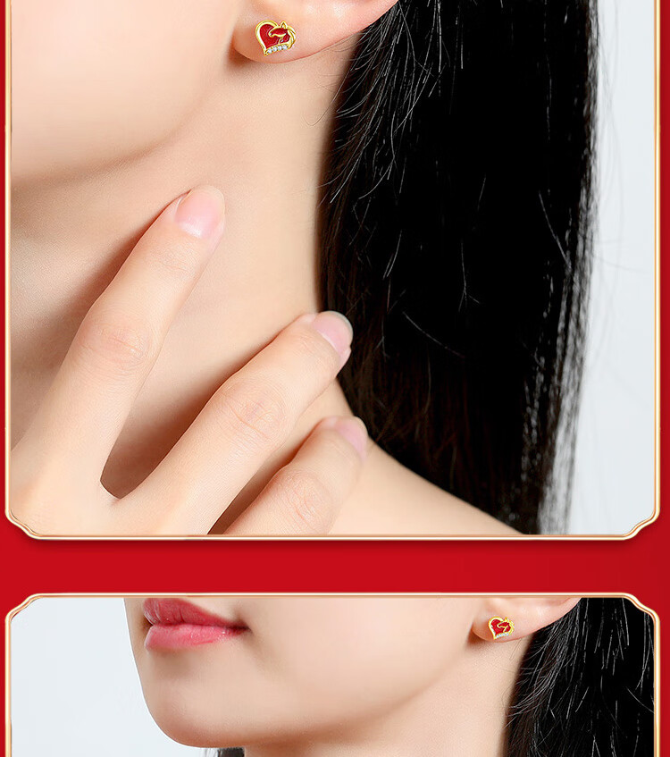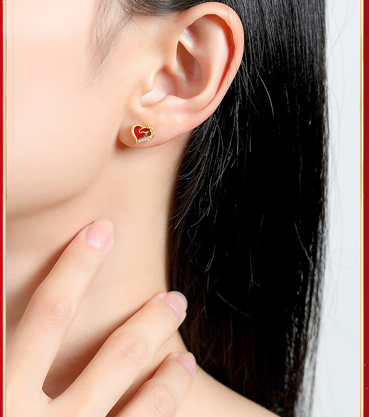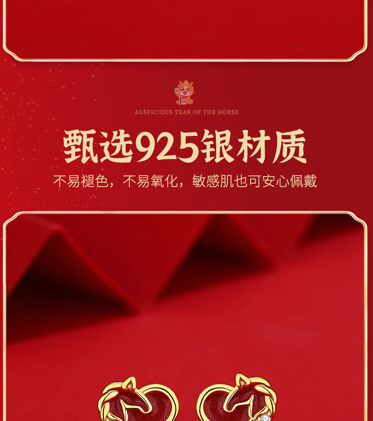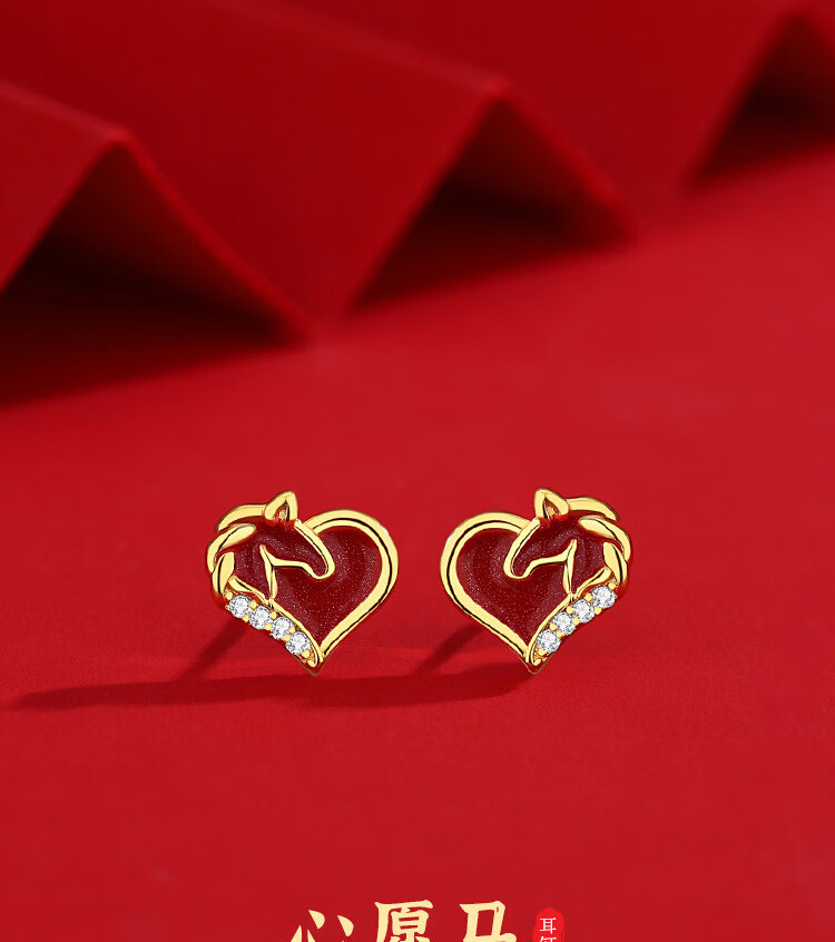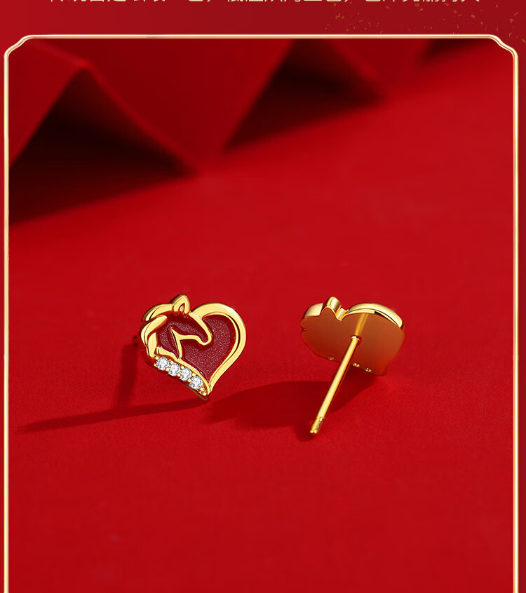 Mansheng S925 sterling silver natal year of the horse red earrings for women 2026 new zodiac year of the horse earrings high-end earrings S925 sterling silver love horse earrings exquisite gift box