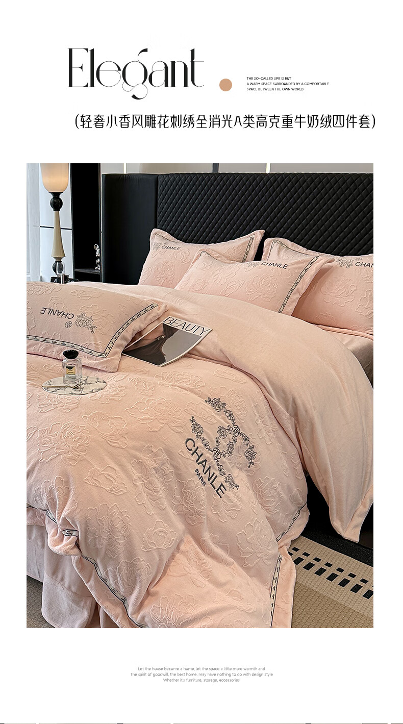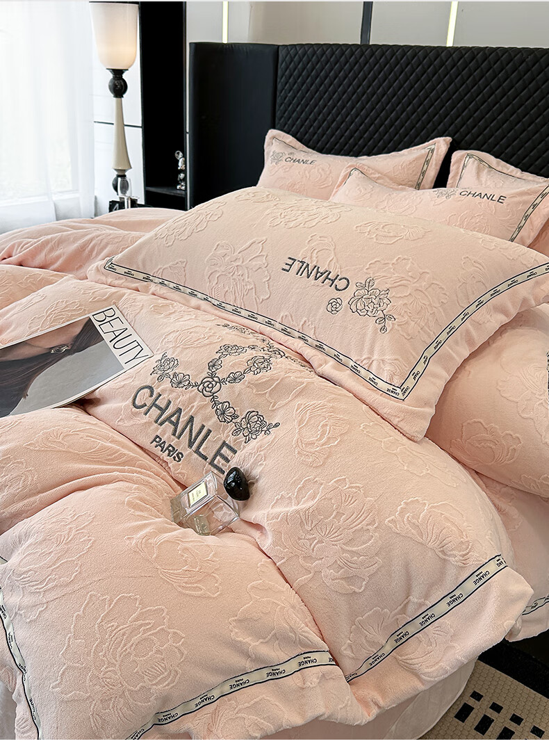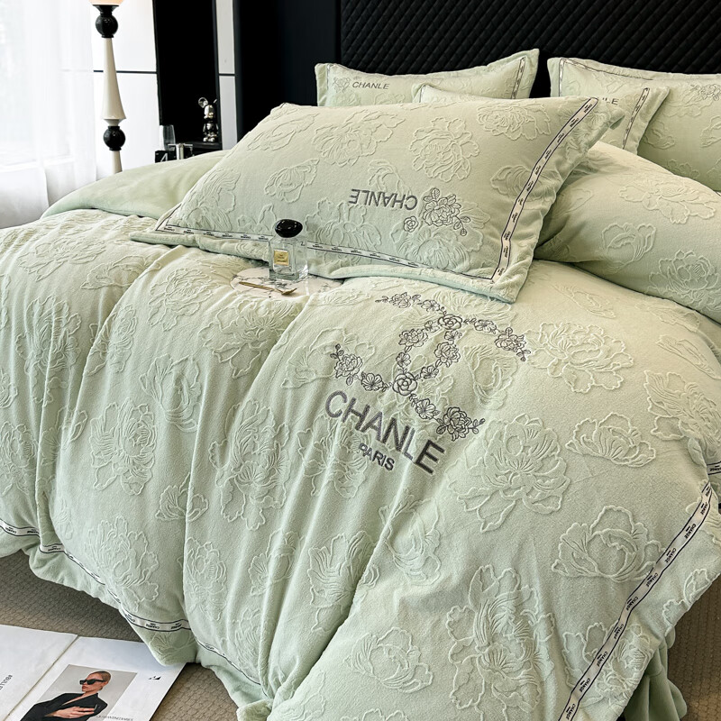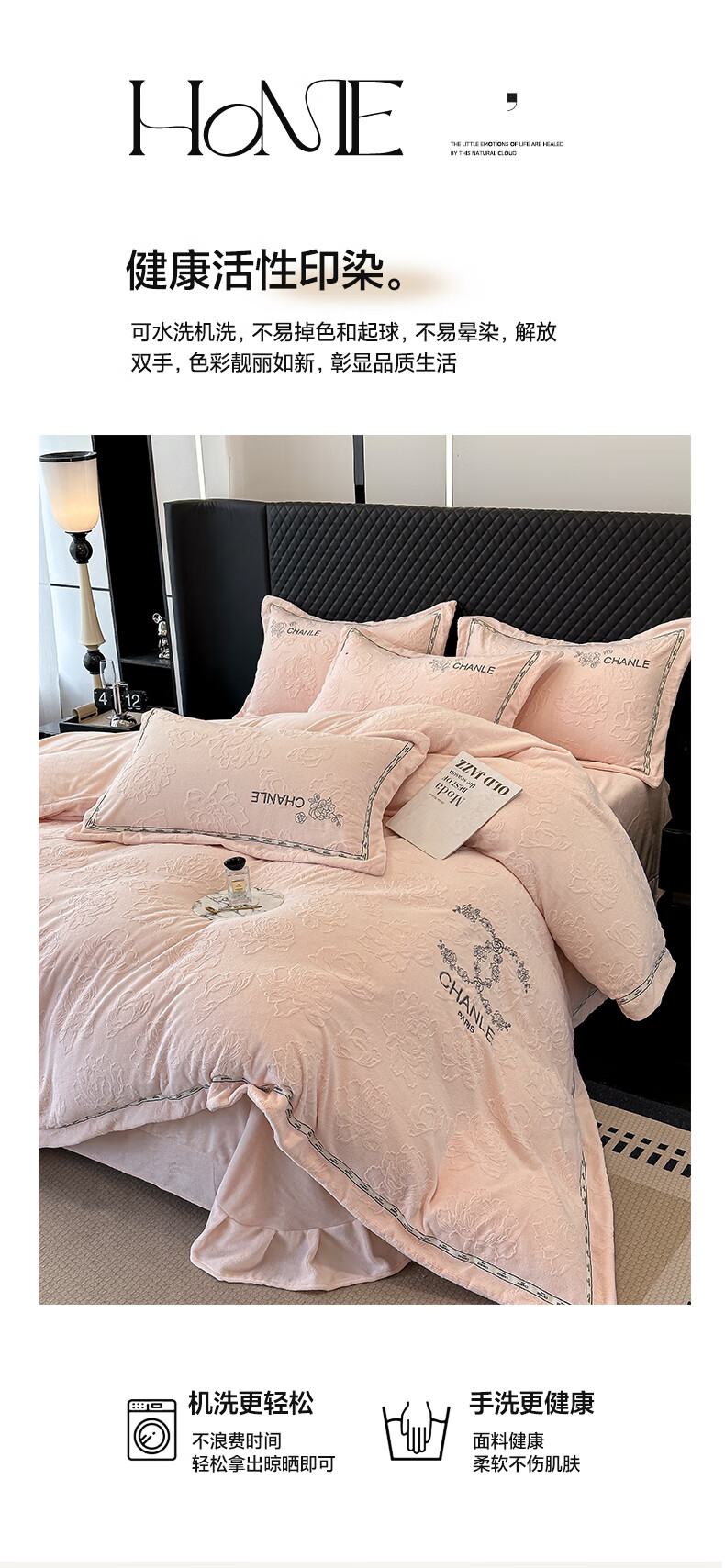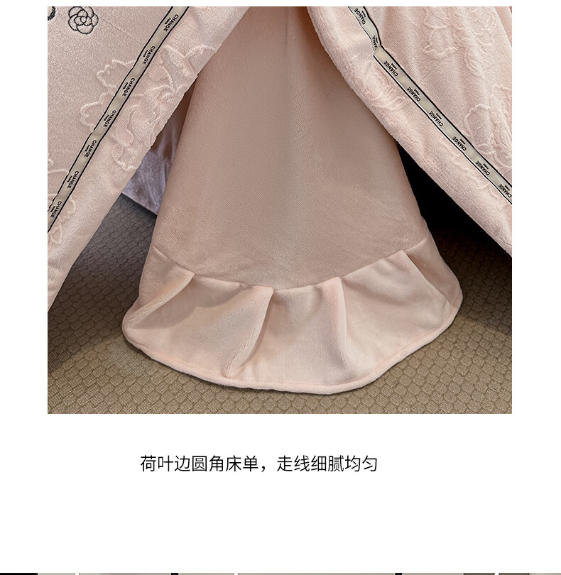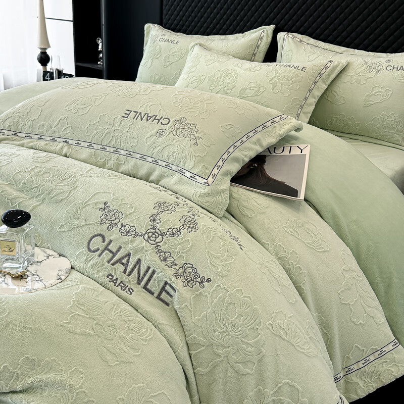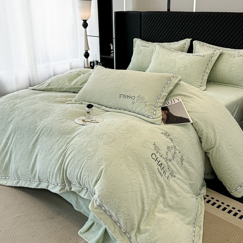 Mercury Series Home Textiles Category A Maternal and Infant Grade Full Matte Milk Velvet Four-piece Set Winter Thickened Small Fragrance Quilt Cover Baby Velvet Pink Bedding Small Fragrant Peony-Fruit Green Sheet Style 1.8m Four-piece Set/Quilt Cover 2.0x2.3m