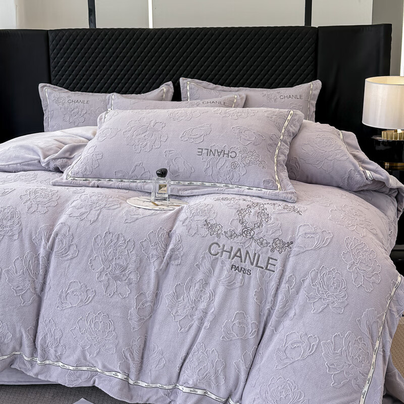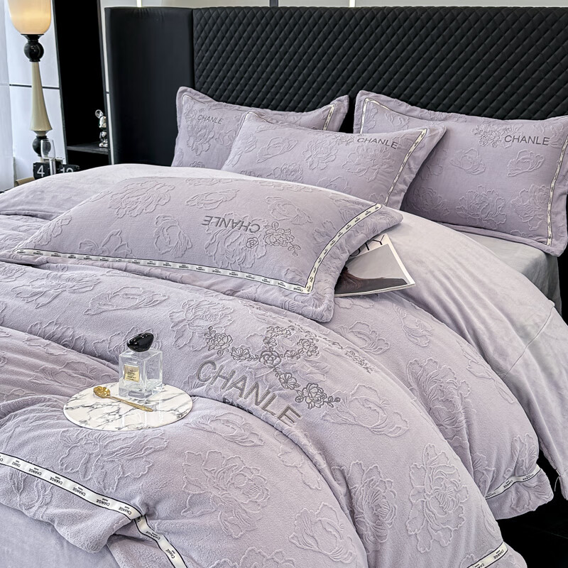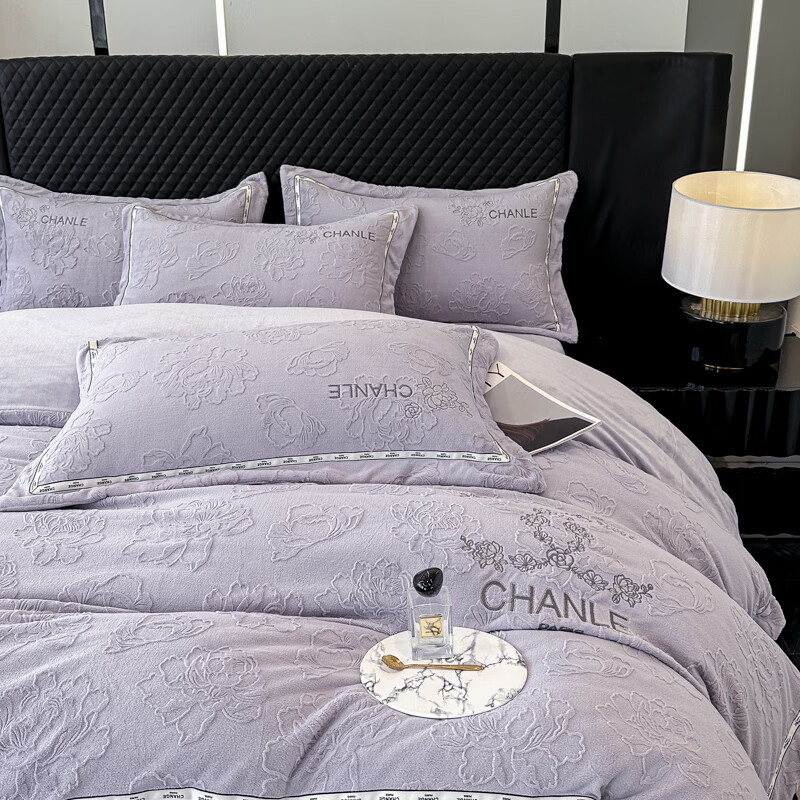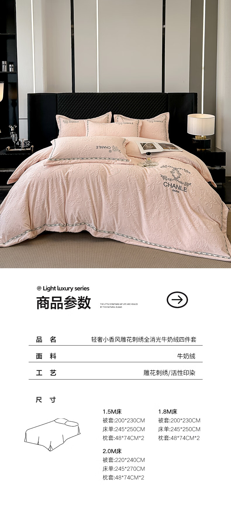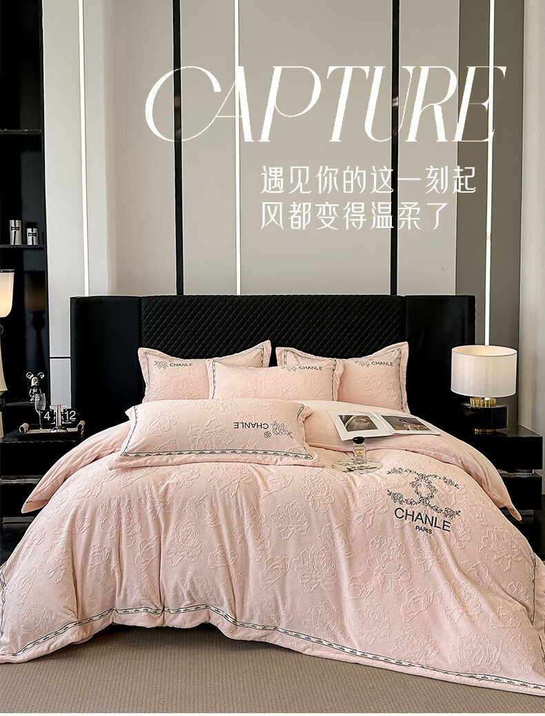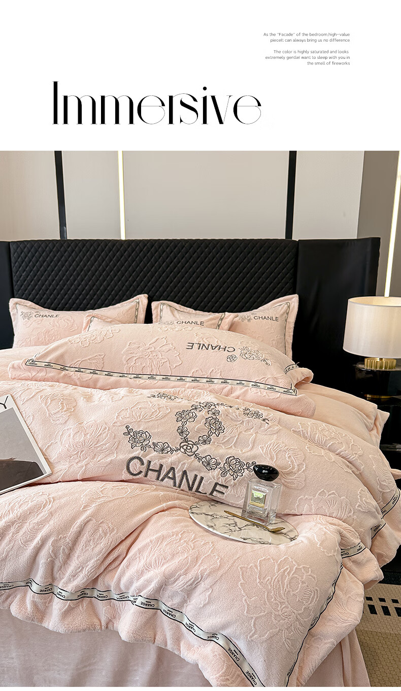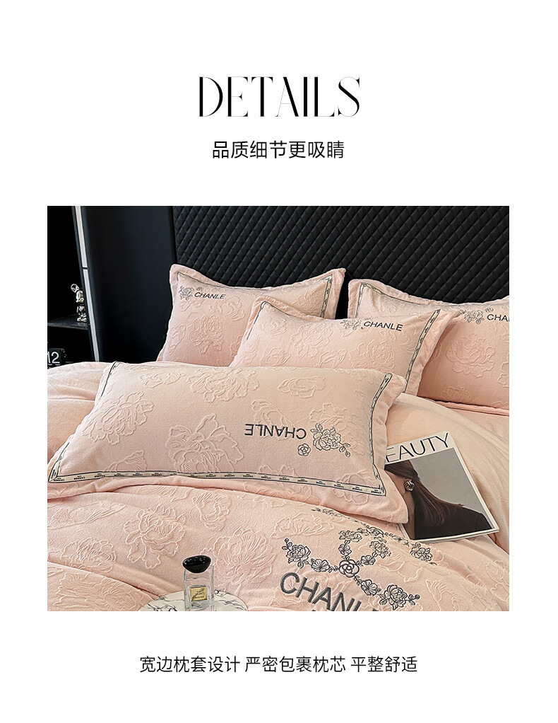 Mercury Series Home Textiles Category A Maternal and Infant Grade Full Matte Milk Velvet Four-piece Set Winter Thickened Small Fragrance Quilt Cover Baby Velvet Pink Bedding Small Fragrant Peony-Fruit Green Sheet Style 1.8m Four-piece Set/Quilt Cover 2.0x2.3m