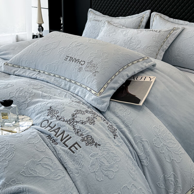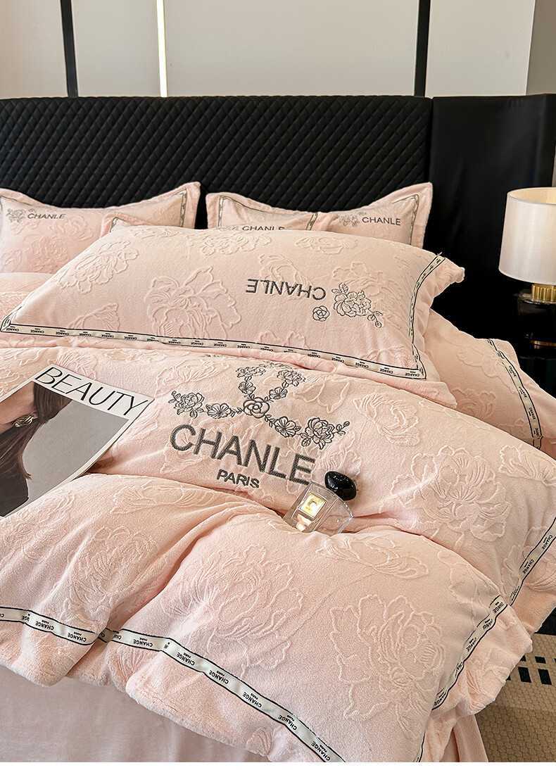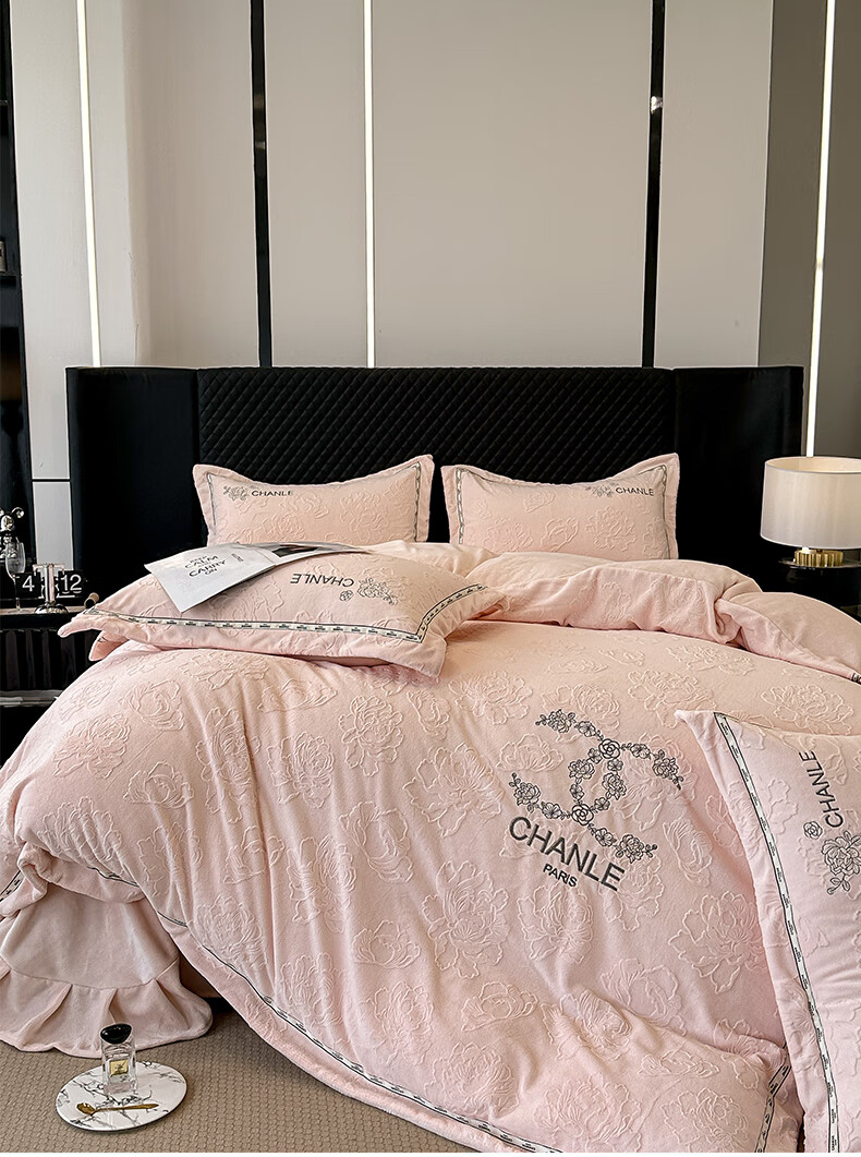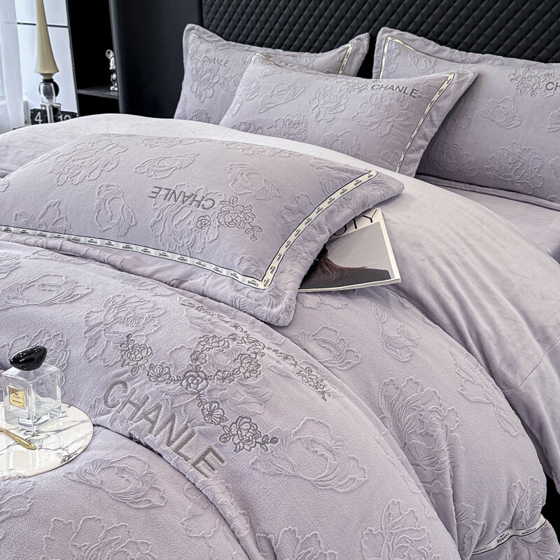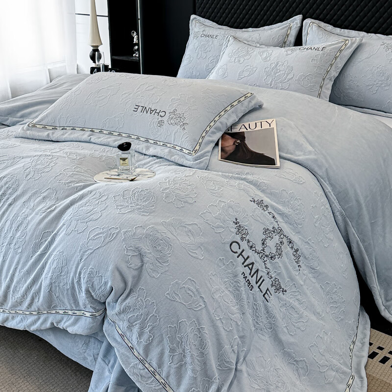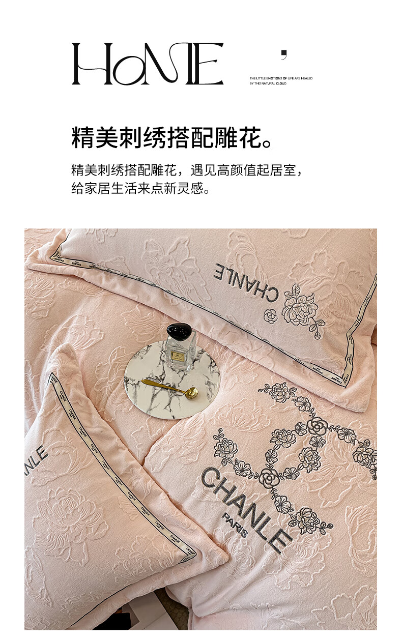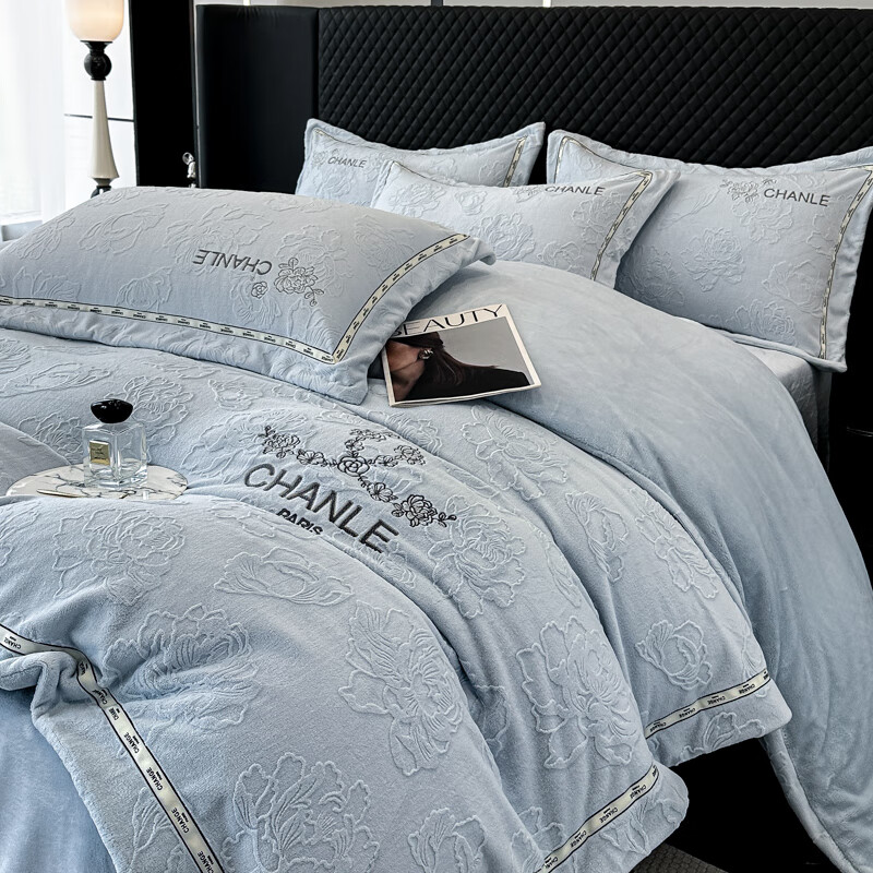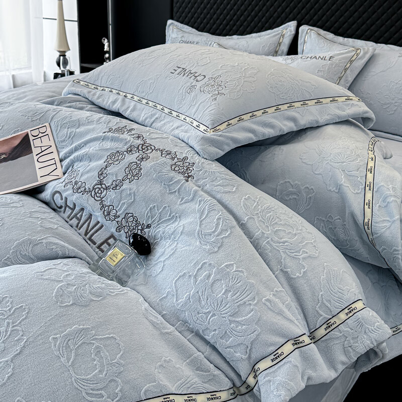 Mercury Series Home Textiles Category A Maternal and Infant Grade Full Matte Milk Velvet Four-piece Set Winter Thickened Small Fragrance Quilt Cover Baby Velvet Pink Bedding Small Fragrant Peony-Fruit Green Sheet Style 1.8m Four-piece Set/Quilt Cover 2.0x2.3m