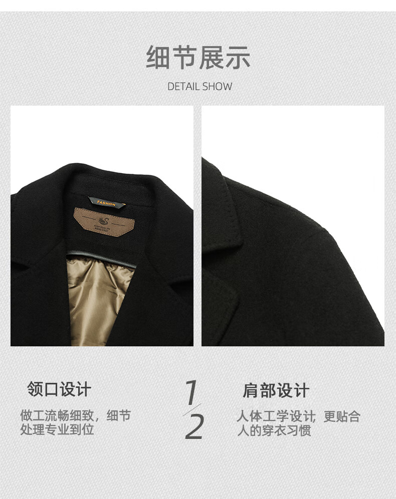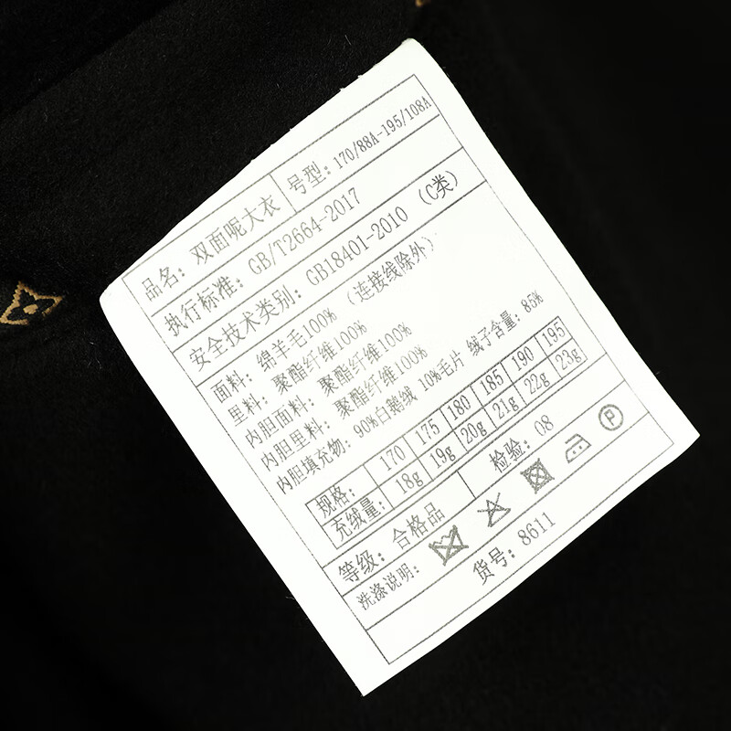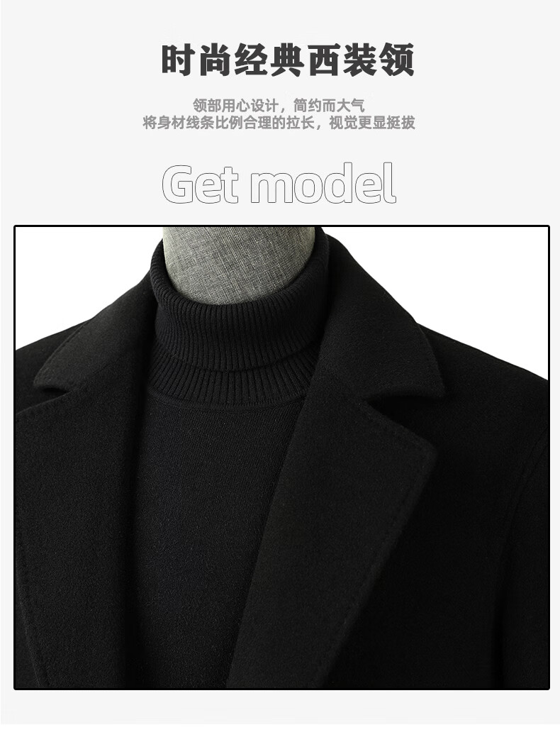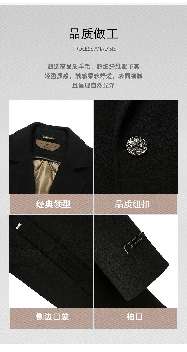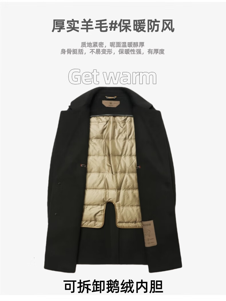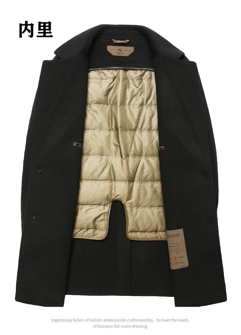 Fazeya Hengyuanxiang Group's high-end 100% wool double-sided woolen coat men's mid-length business casual goose down liner black M (170) (recommended 110-130 Jin Jin equals 0.5 kg)