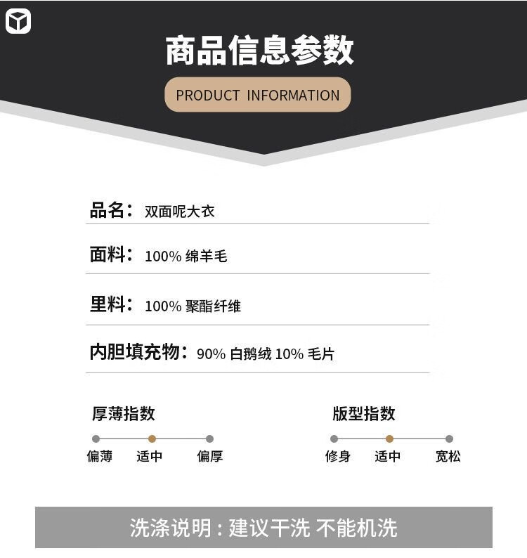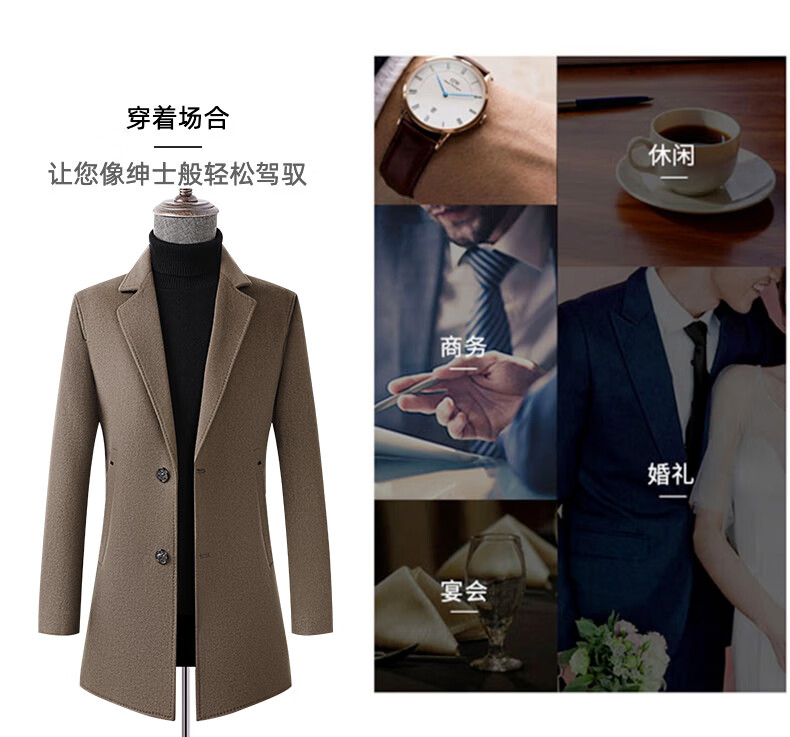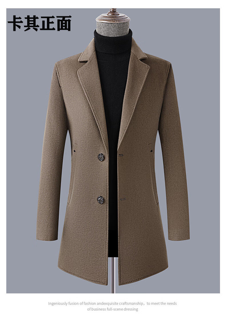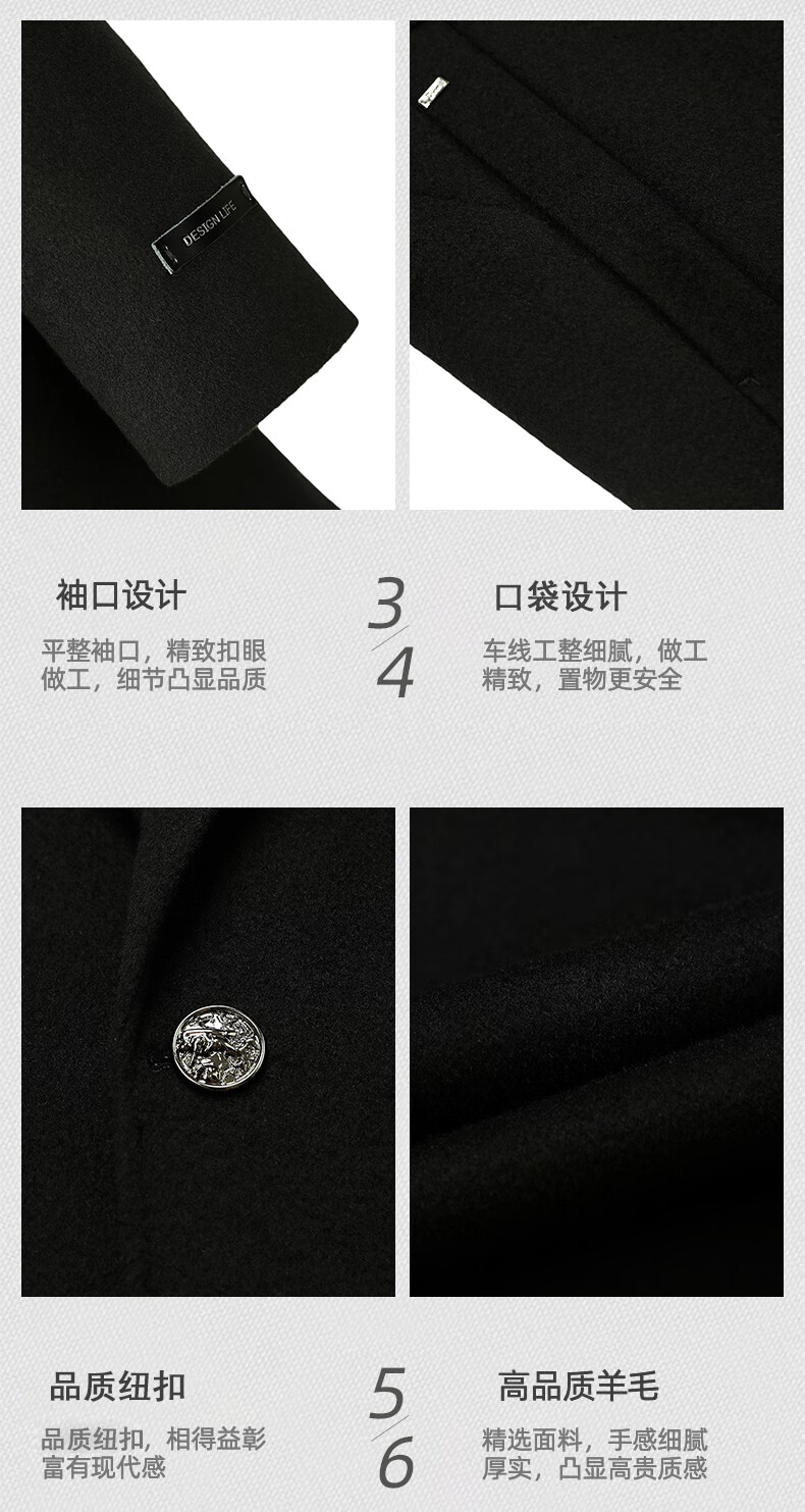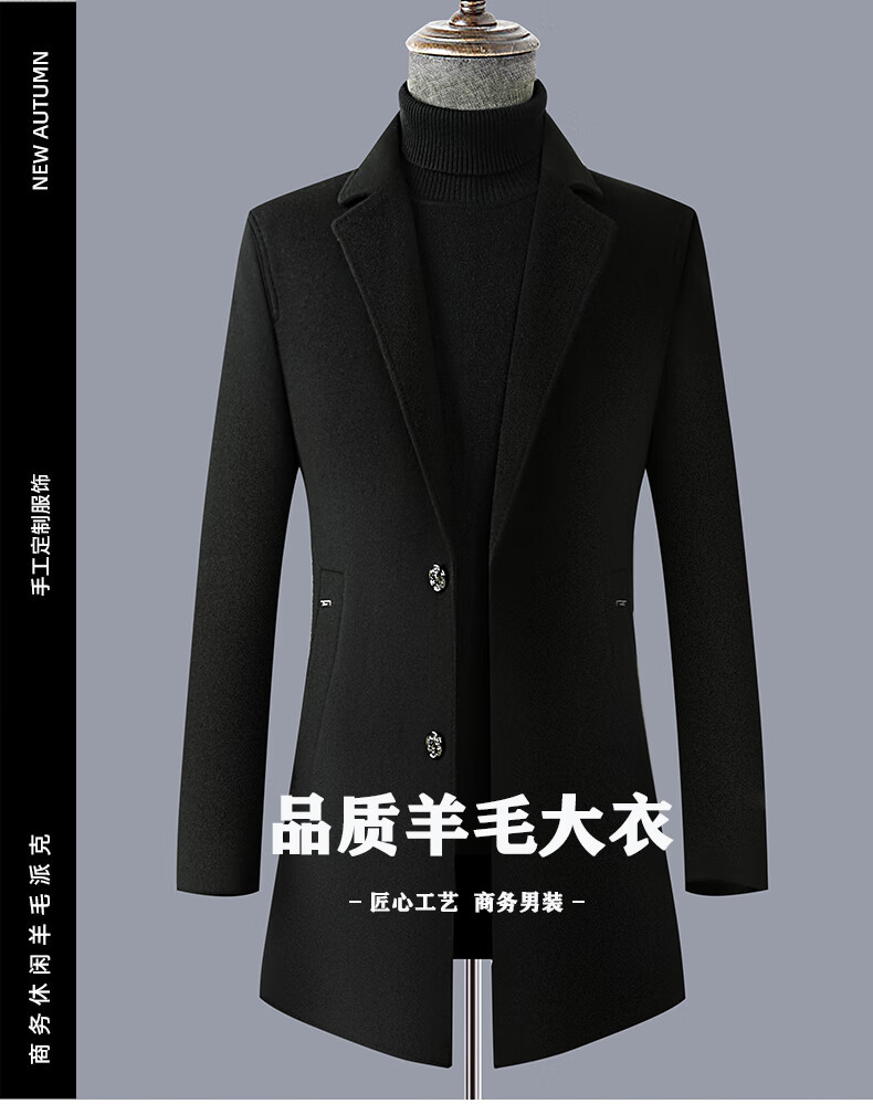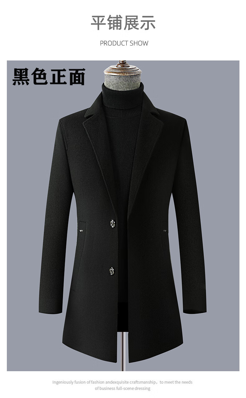 Fazeya Hengyuanxiang Group's high-end 100% wool double-sided woolen coat men's mid-length business casual goose down liner black M (170) (recommended 110-130 Jin Jin equals 0.5 kg)