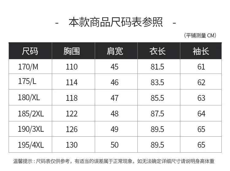 China (cm) 165 / 88-90 170 / 96-98 175 / 108-110 180 / 118-122 185 / 126-130