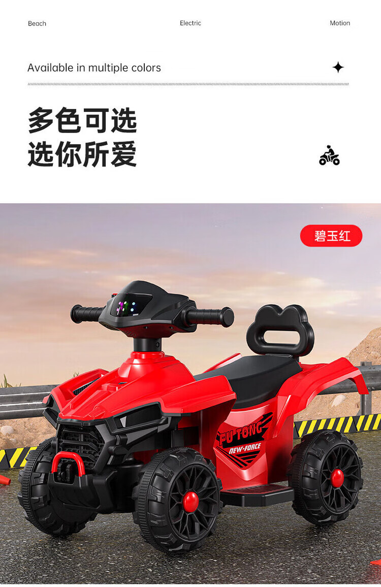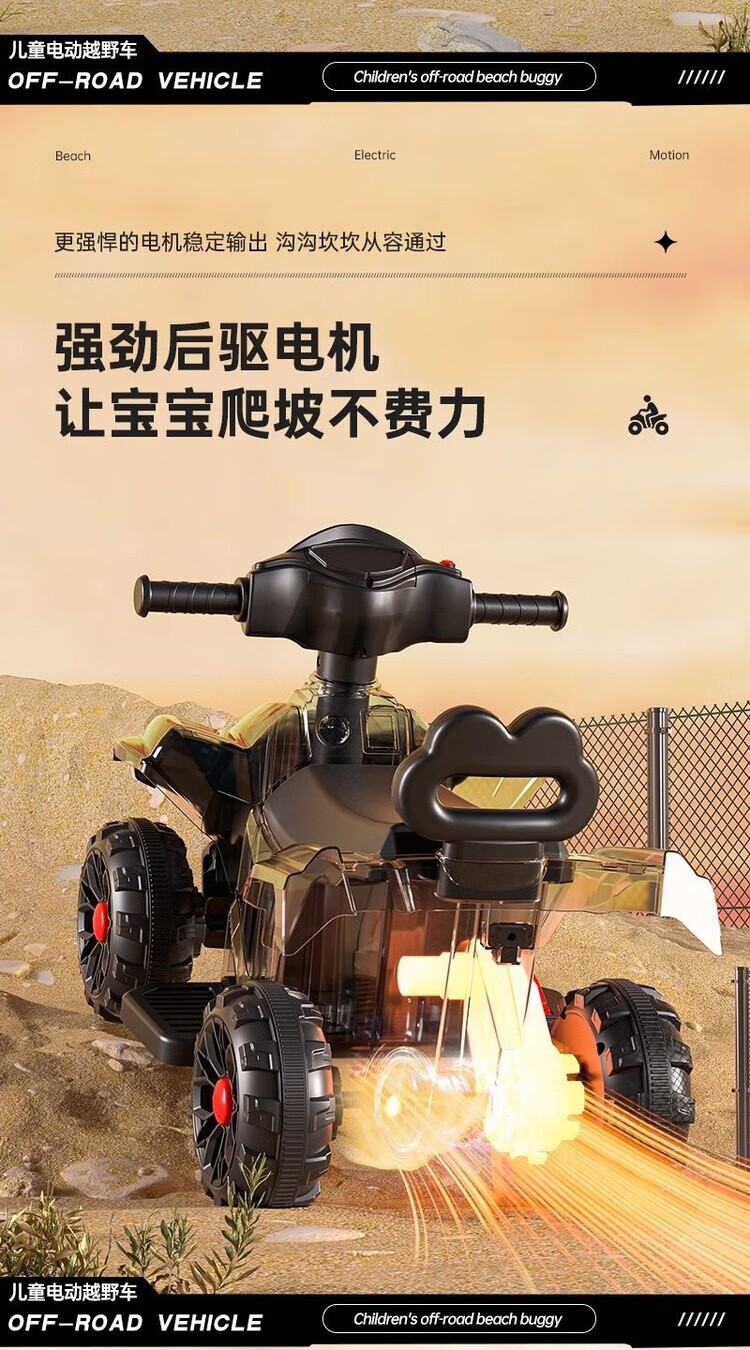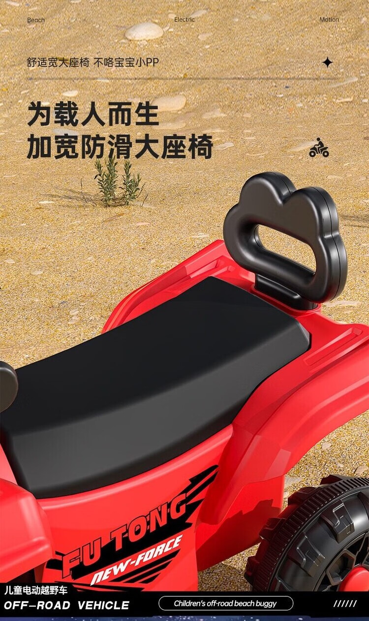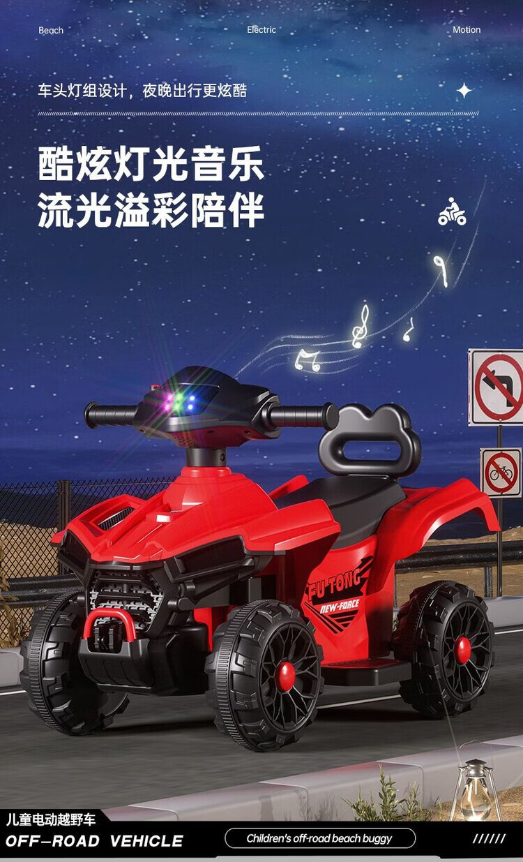Bonas children's electric ATV, motorcycle, four-wheel off-road vehicle, boys and girls, baby can sit and slide, rechargeable toy car, cloisonne, light and music, basic sliding model + backrest