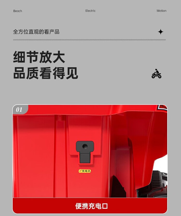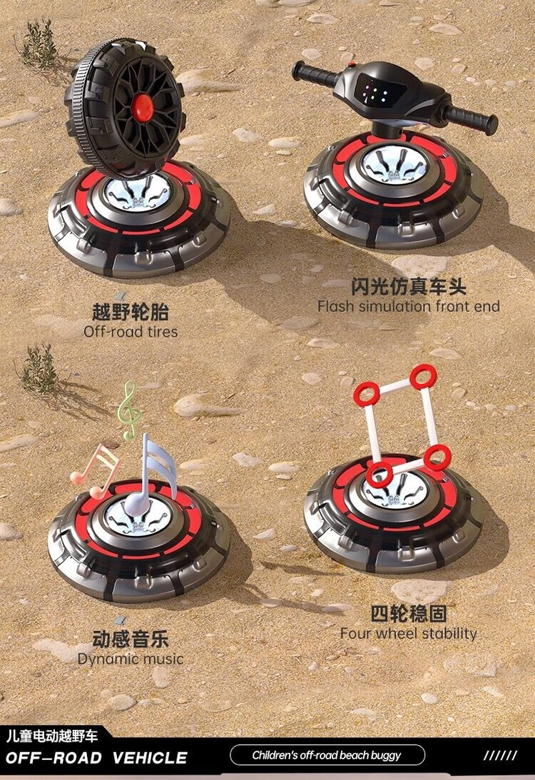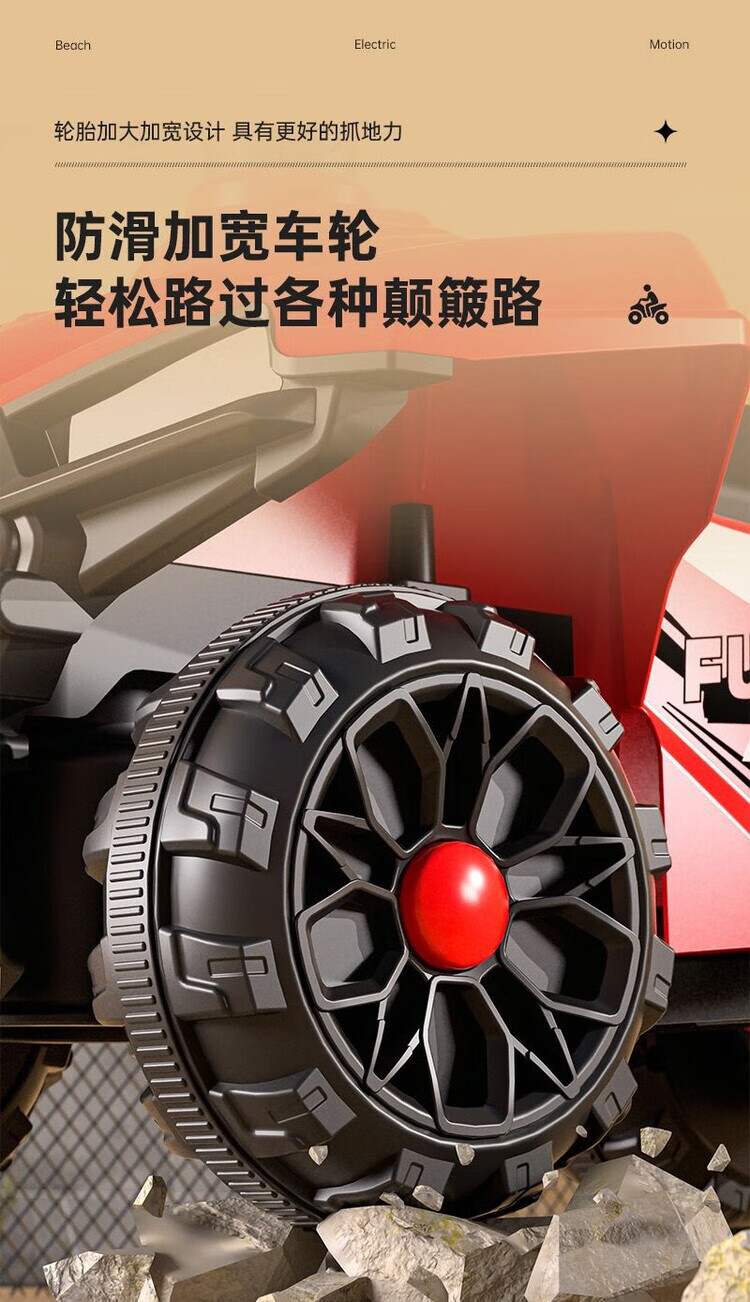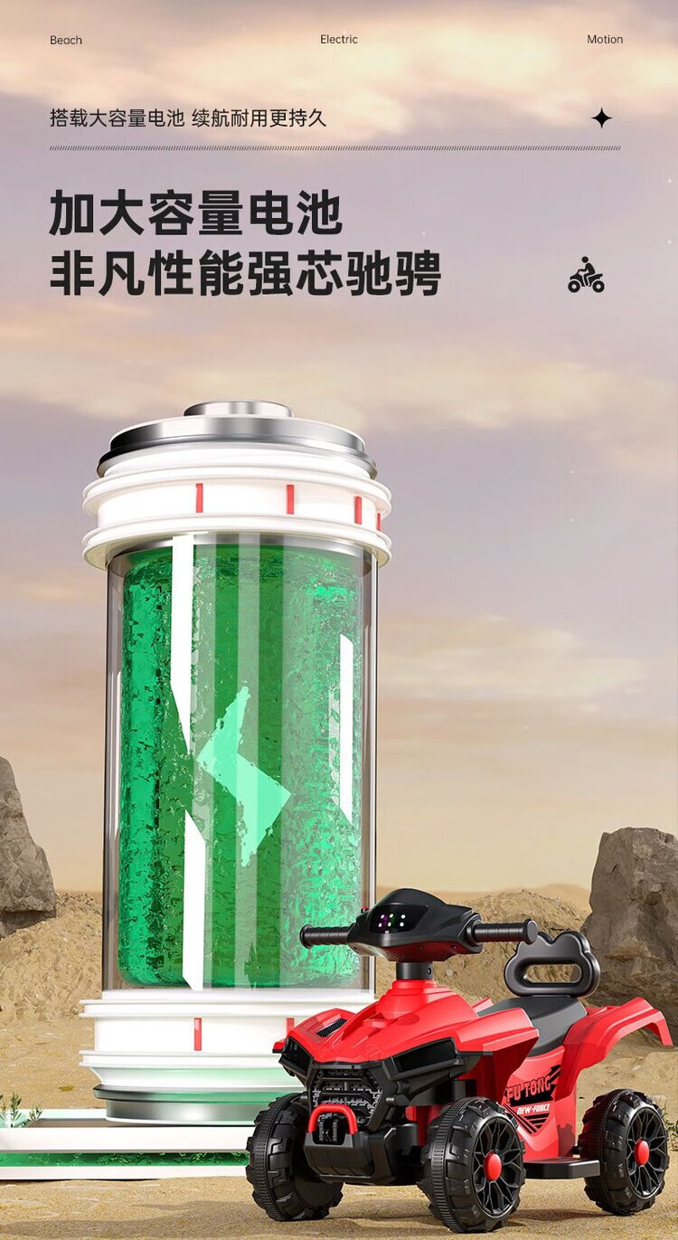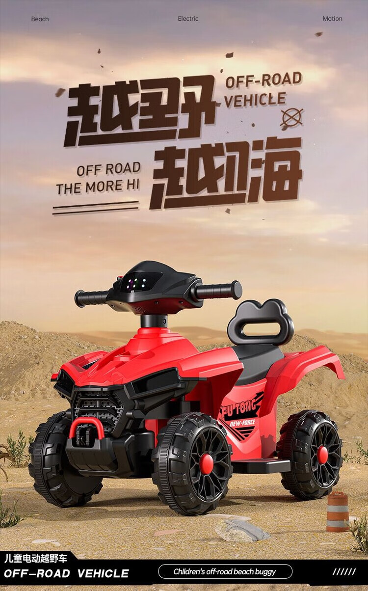 Bonas children's electric ATV, motorcycle, four-wheel off-road vehicle, boys and girls, baby can sit and slide, rechargeable toy car, cloisonne, light and music, basic sliding model + backrest