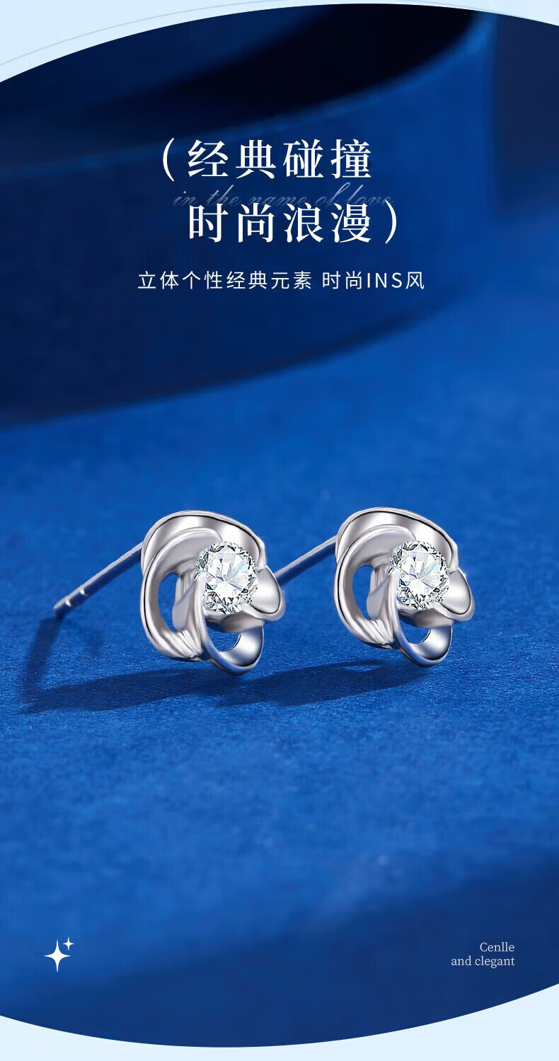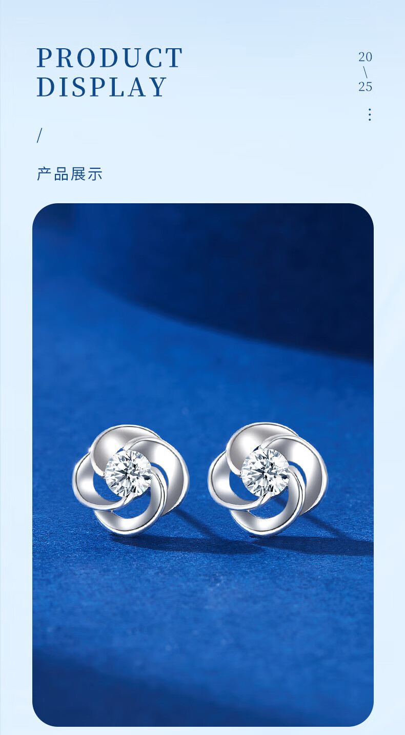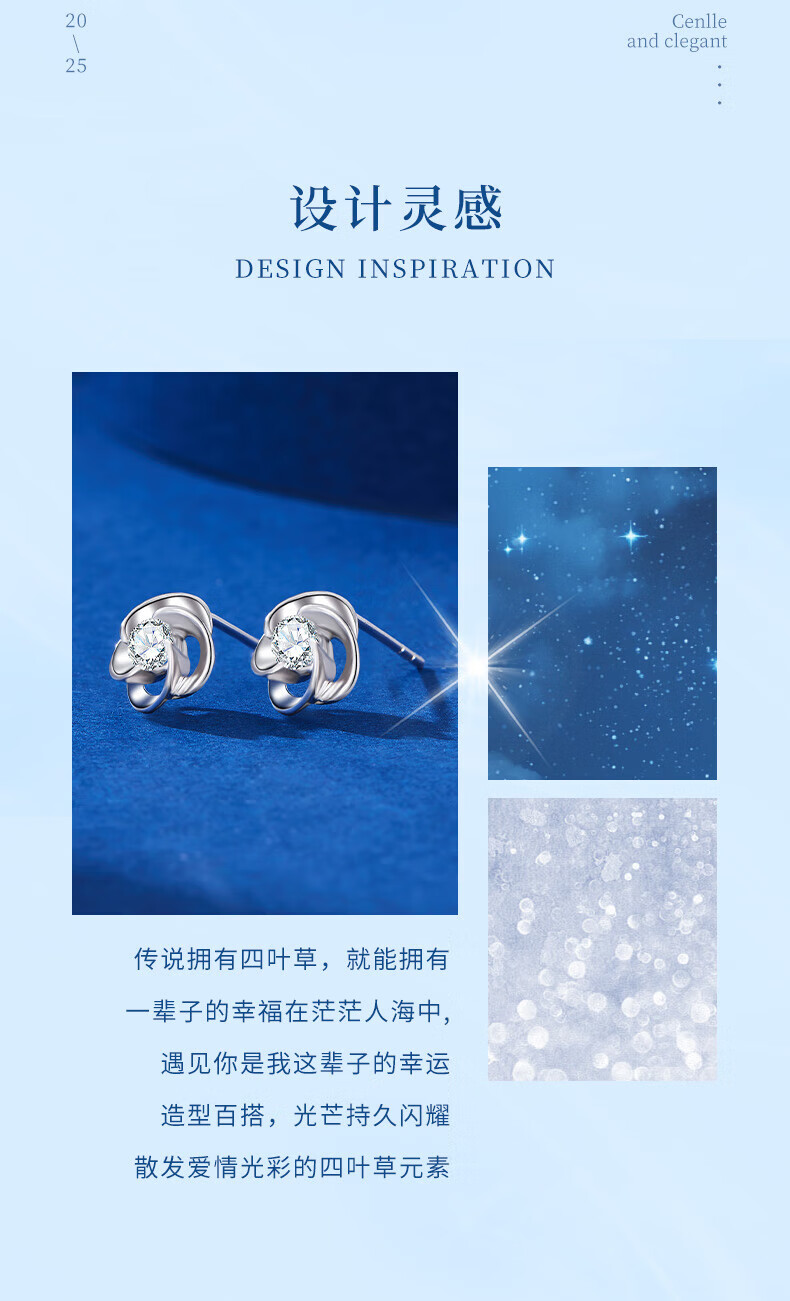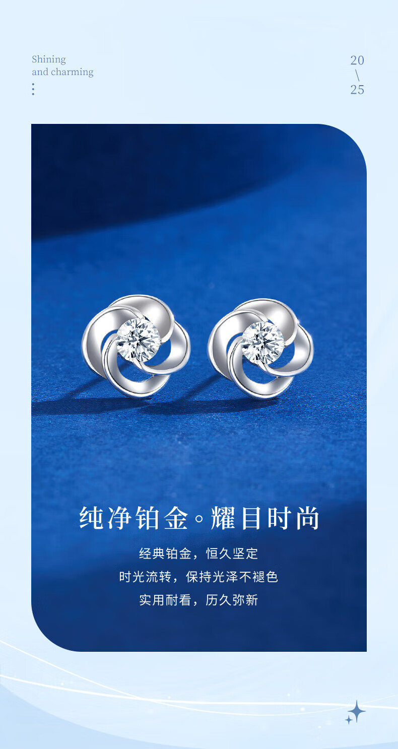 Lao Fengxiang PT950 platinum shiny four-leaf clover earrings for women, high-end earrings, Valentine's Day birthday gift for girlfriend and wife, platinum shiny four-leaf clover earrings, about 1.5g