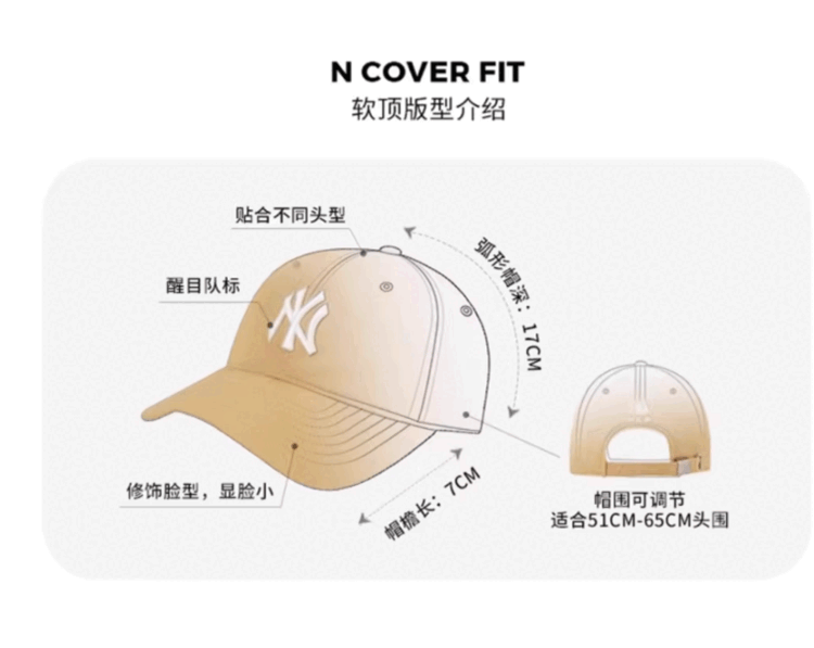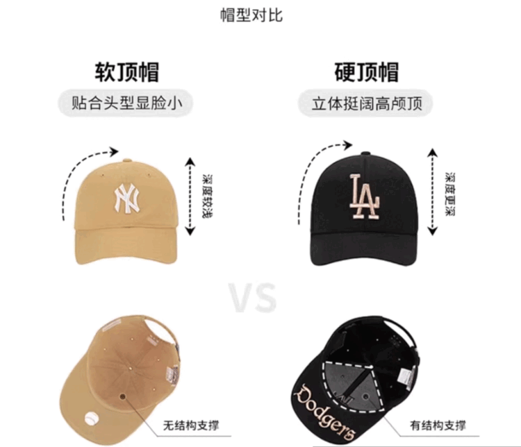 MLB Hat Trendy Baseball Cap Men's and Women's Hard Top Sunshade Sun Protection Yankees Casual Peaked Cap Travel Cap Gift New Phnom Penh NY (Hard Top)