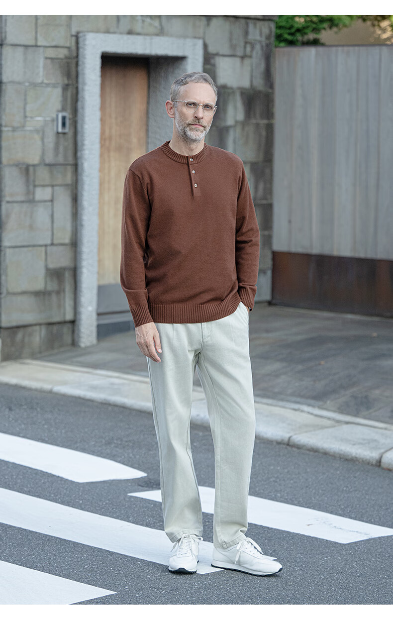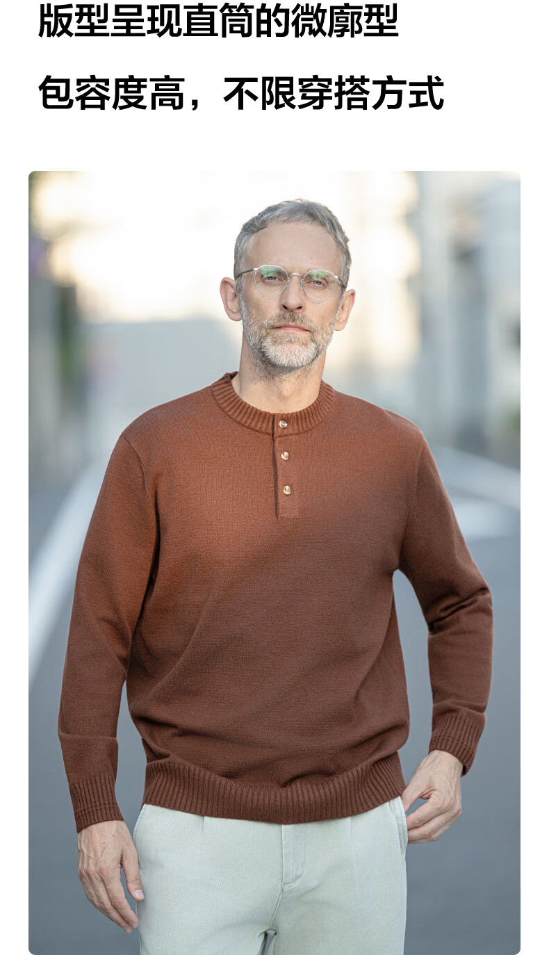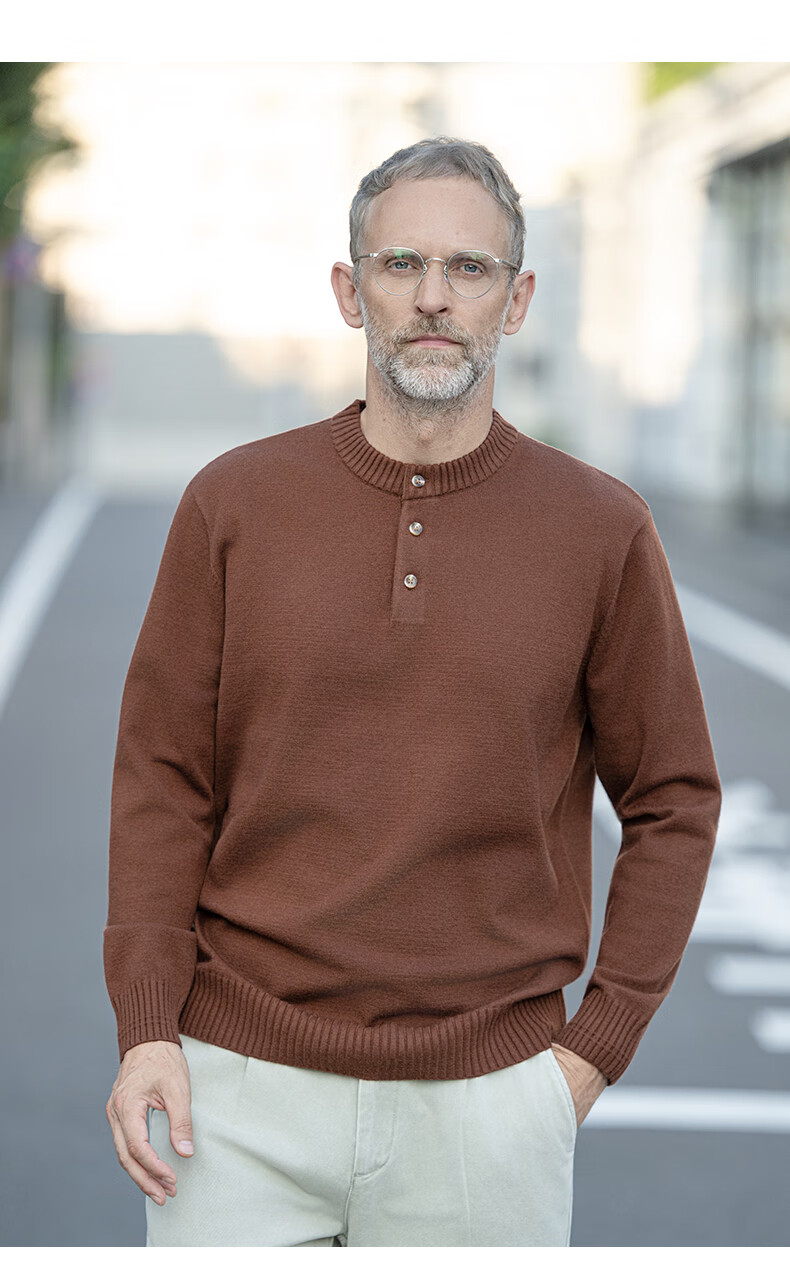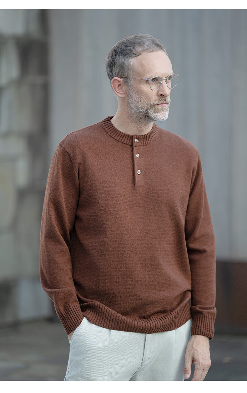 EDOT Henry Collar Old Money Style Simple Sweater Men's Casual Wool Autumn and Winter Sweater Half-cardigan Inside Acorn Brown M Recommended Weight 100-120 Jin Jin equals 0.5 kg