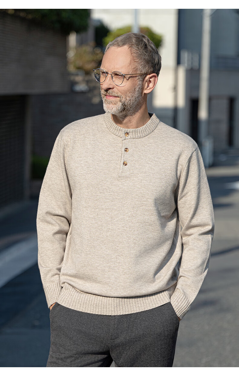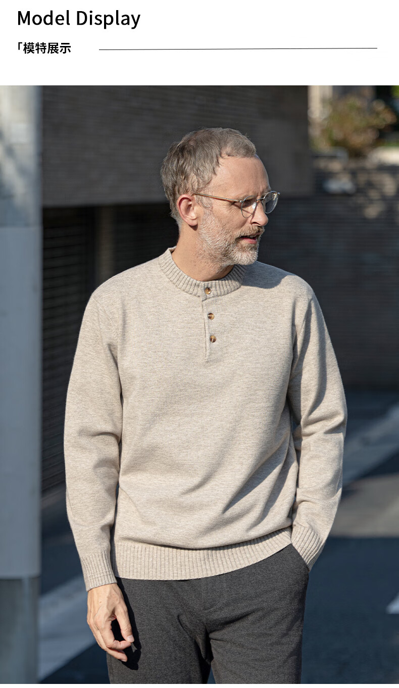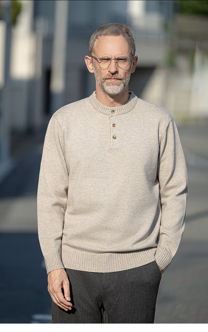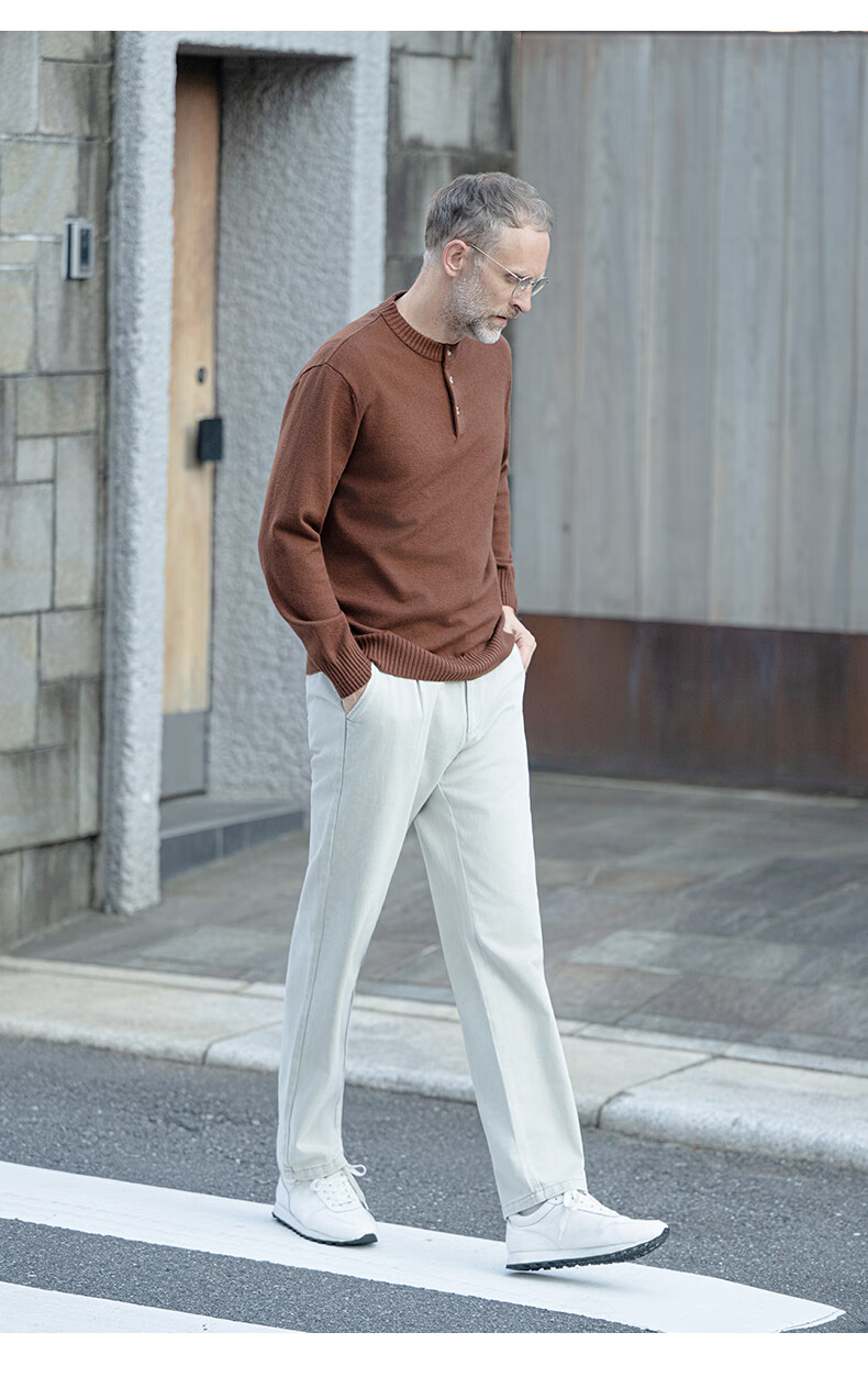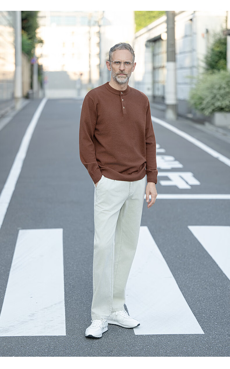 EDOT Henry Collar Old Money Style Simple Sweater Men's Casual Wool Autumn and Winter Sweater Half-cardigan Inside Acorn Brown M Recommended Weight 100-120 Jin Jin equals 0.5 kg