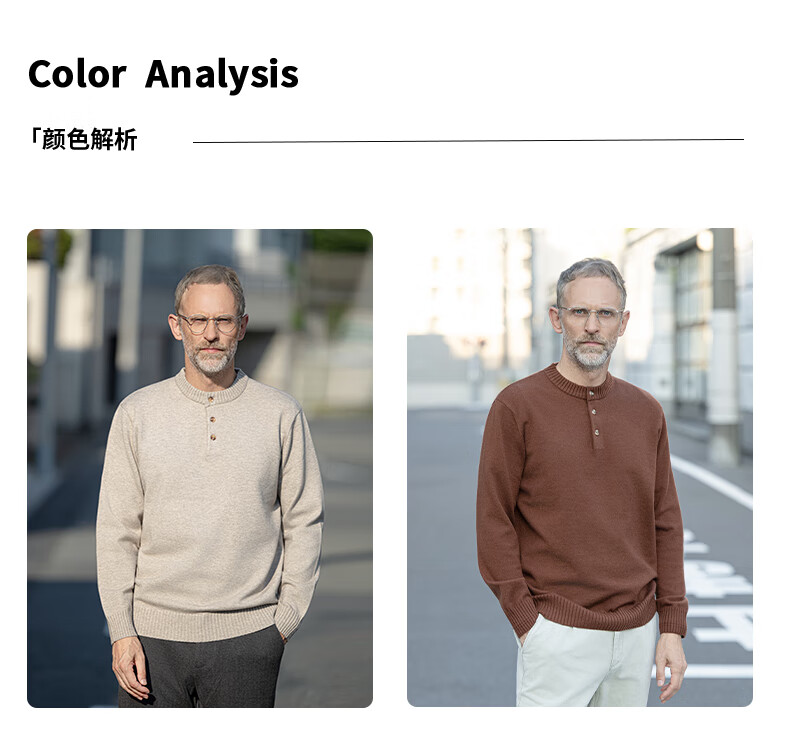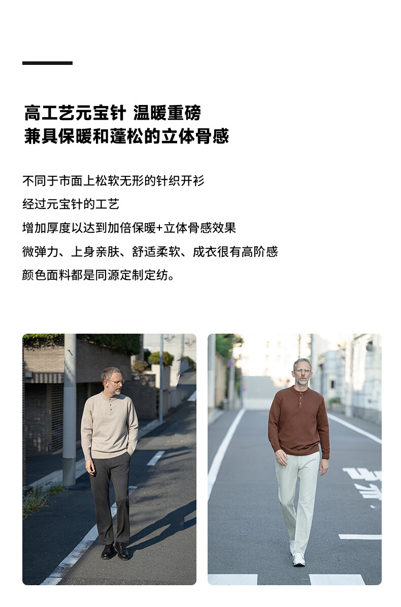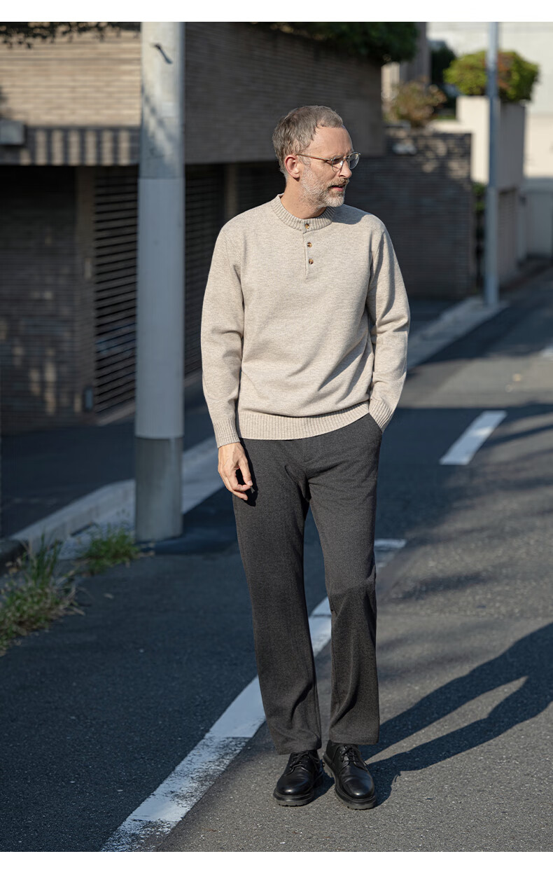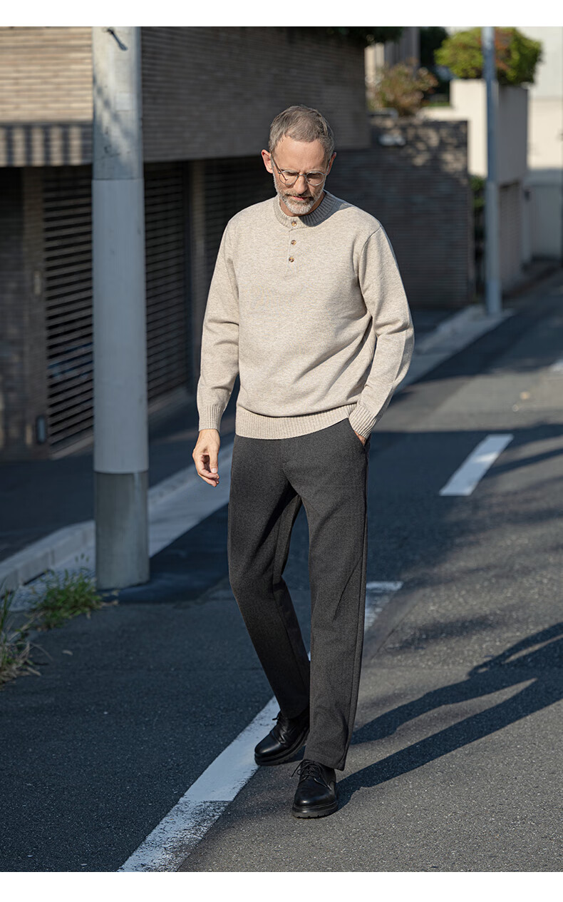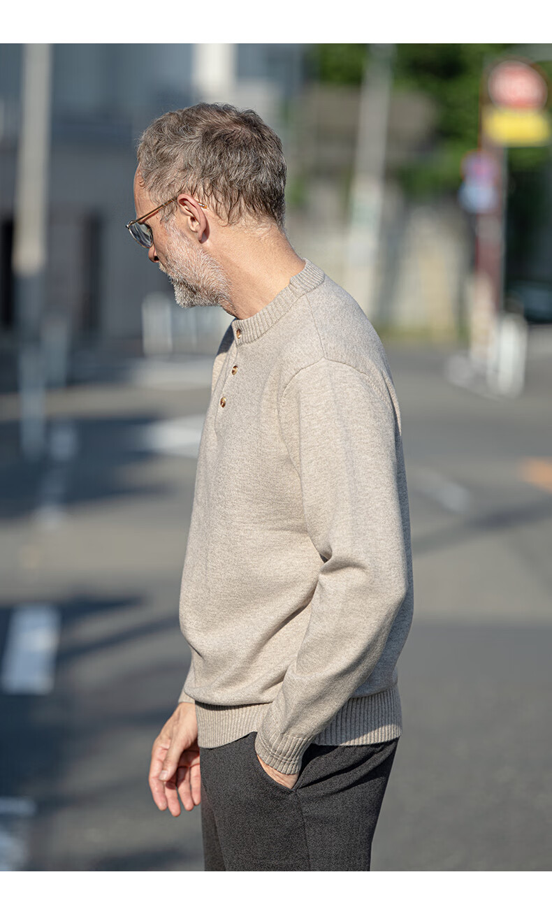 EDOT Henry Collar Old Money Style Simple Sweater Men's Casual Wool Autumn and Winter Sweater Half-cardigan Inside Acorn Brown M Recommended Weight 100-120 Jin Jin equals 0.5 kg