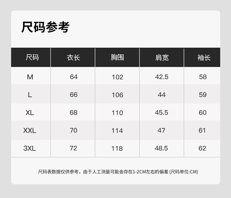 Size (cm) 42 44 46 48 50