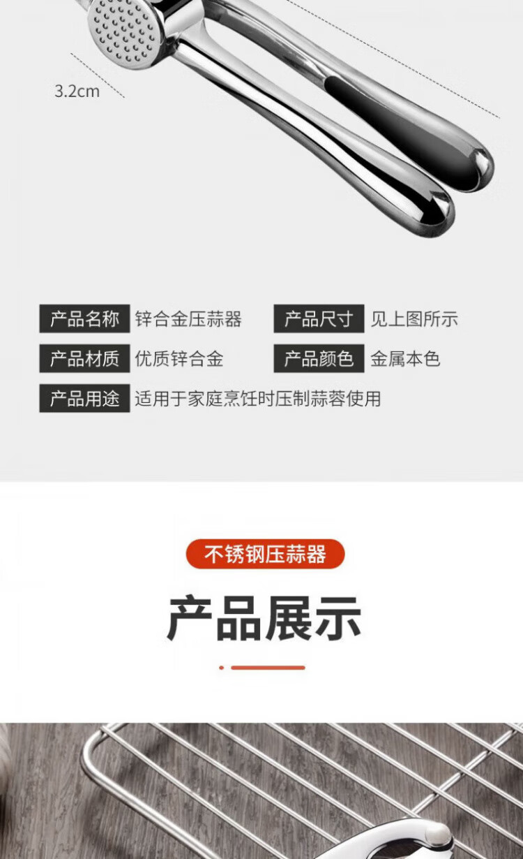 OEMG high-end new garlic press garlic artifact household thickened manual garlic pinch kitchen garlic press hand-pressed zinc alloy garlic press