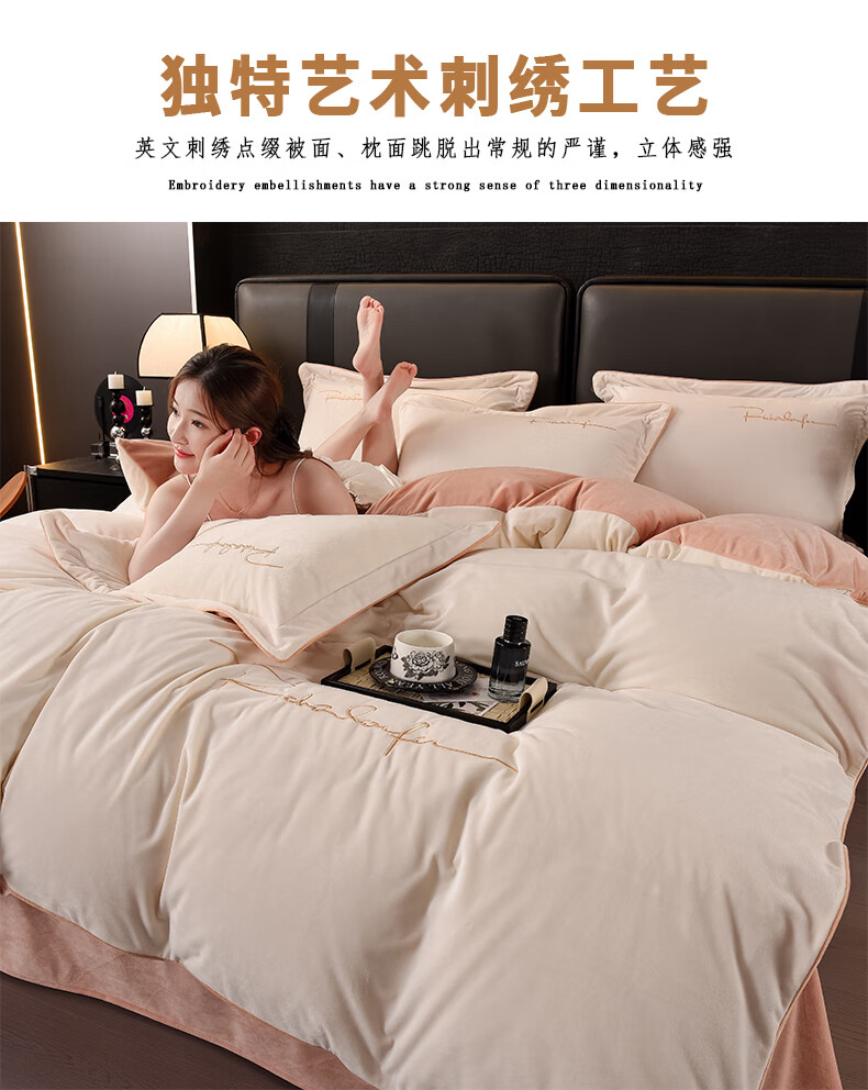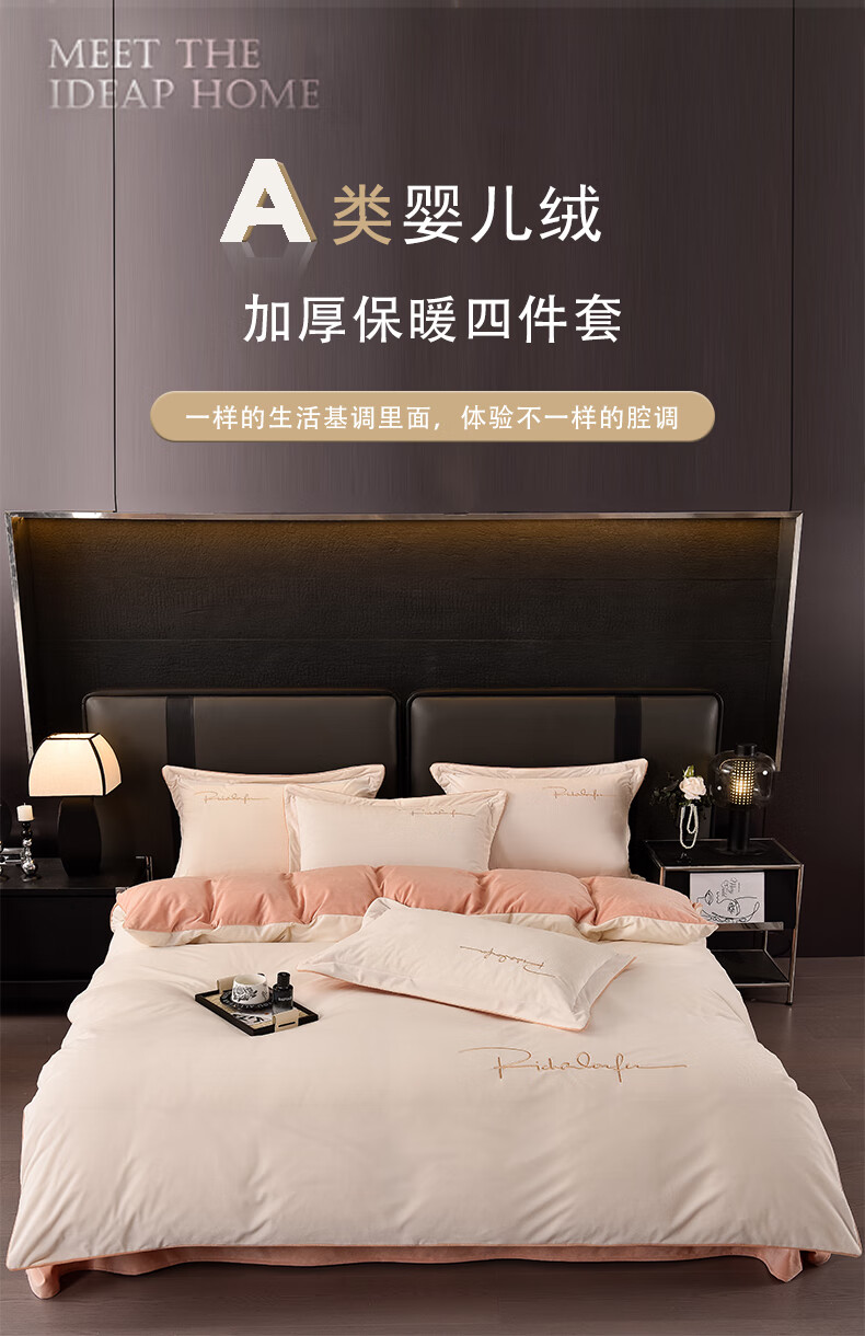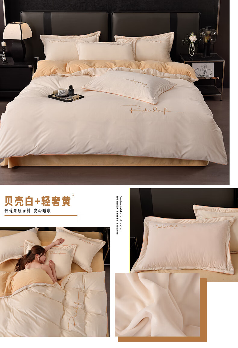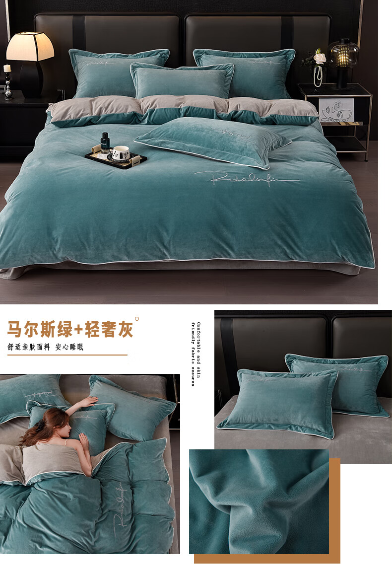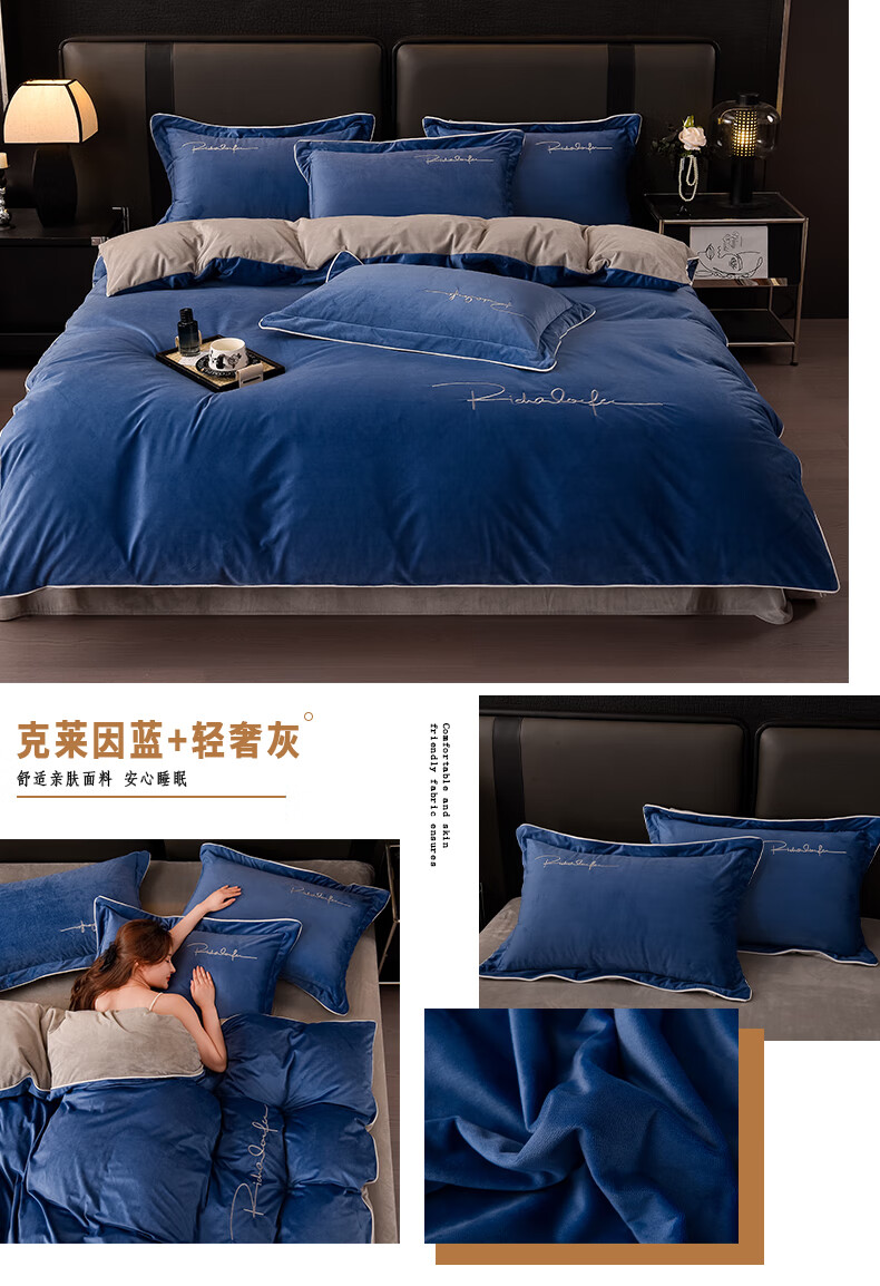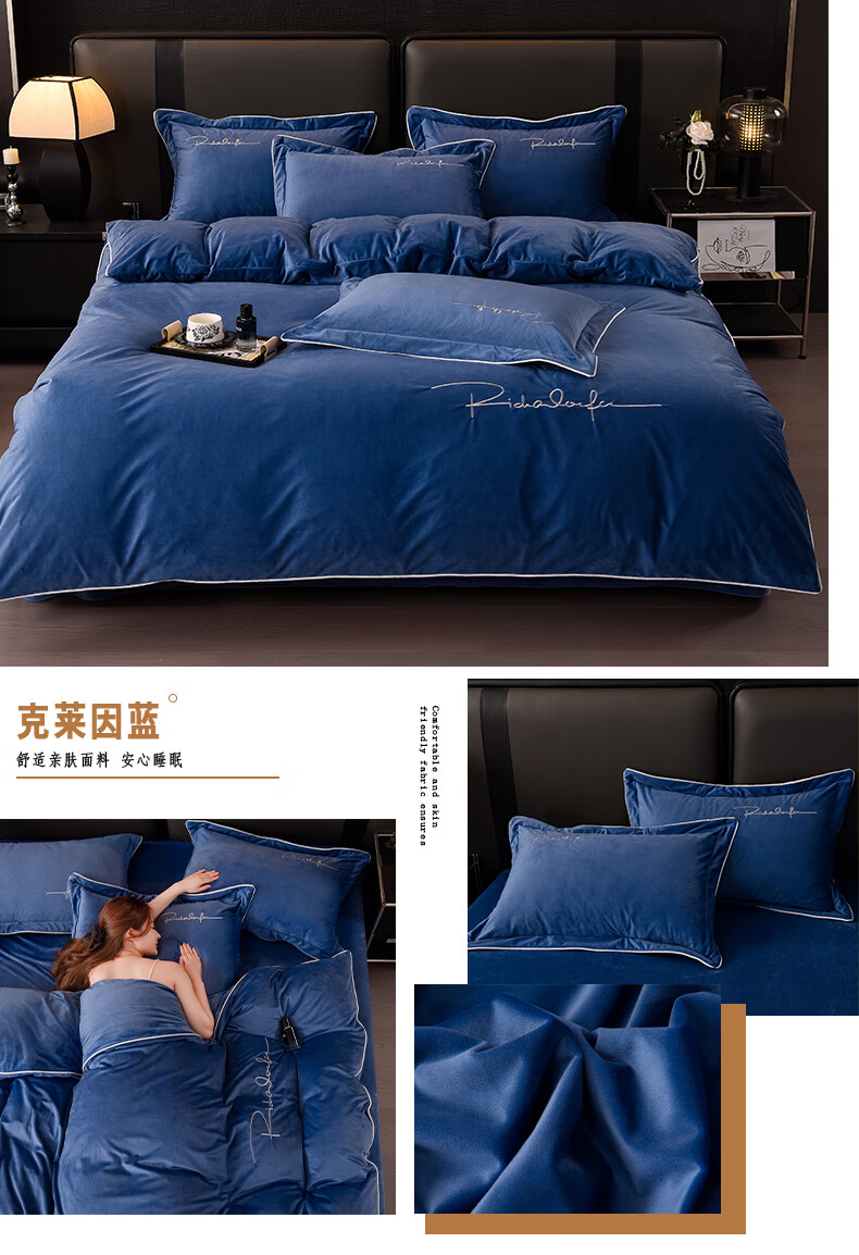 LUOLAI Luolai produces 2025 new thickened and warm baby velvet four-piece set, Klein blue bed sheet style, 1.5m four-piece set