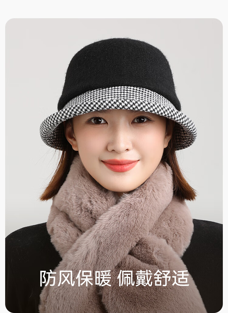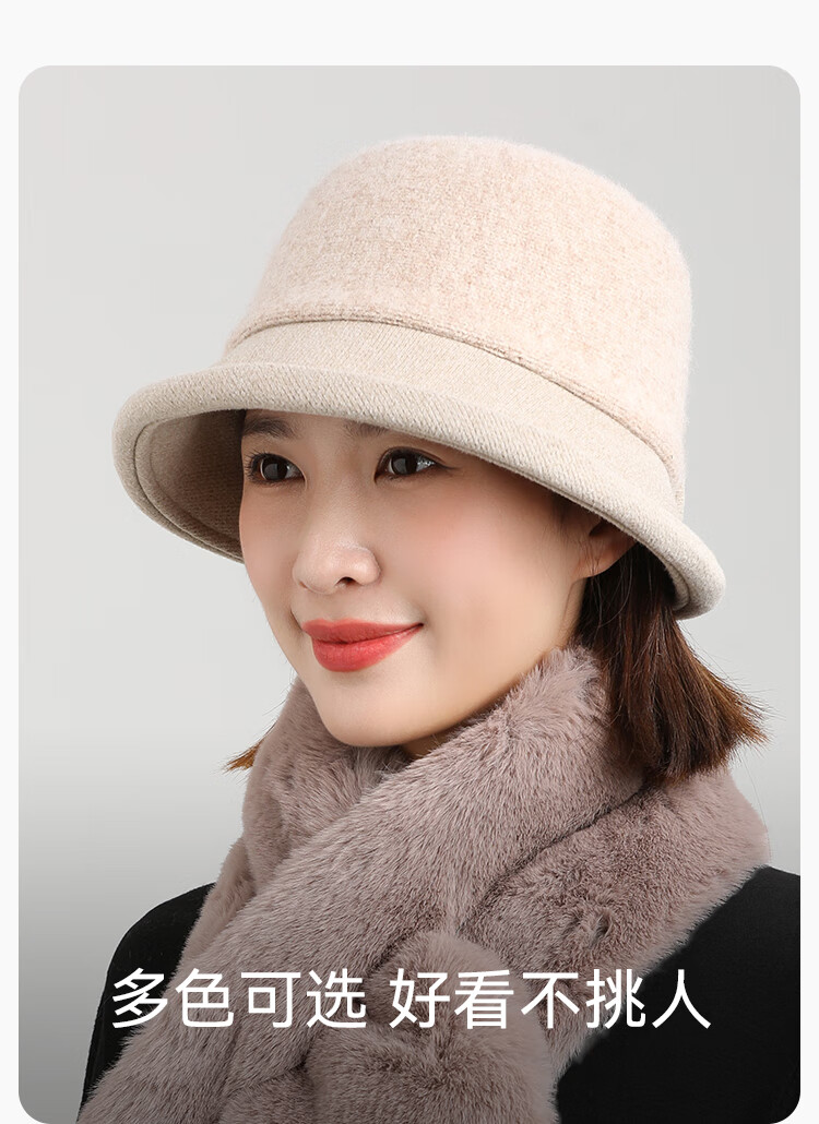 Shanghai Story 2025 New Hat Wool Fisherman Hat Warm Basin Hat Women's Ear Protection Thickened Retro Gift Box Dance Shirt Singing Fan - Off-white Adjustable (53-57CM)