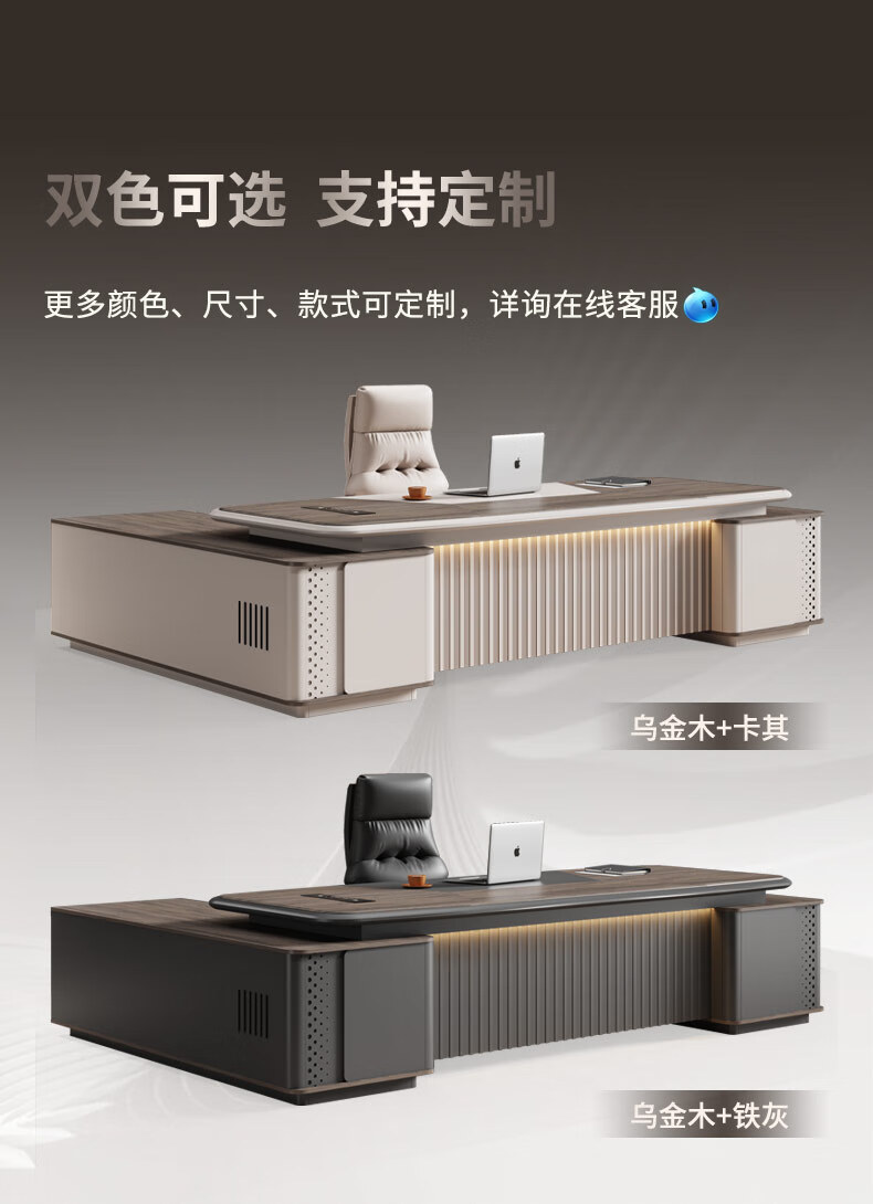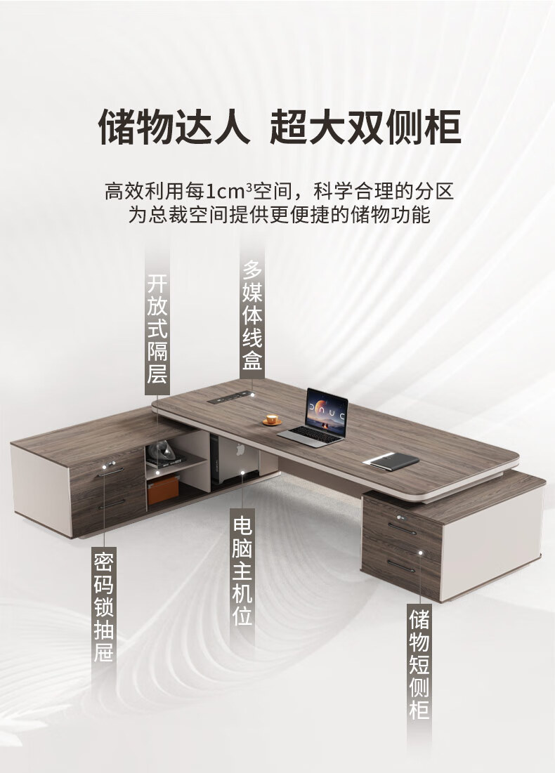 Guiqiu boss desk office desk and chair combination simple modern executive desk single desk manager desk office furniture 1.8m boss table (single side cabinet includes light strip + boss chair + 2.0m bookcase)