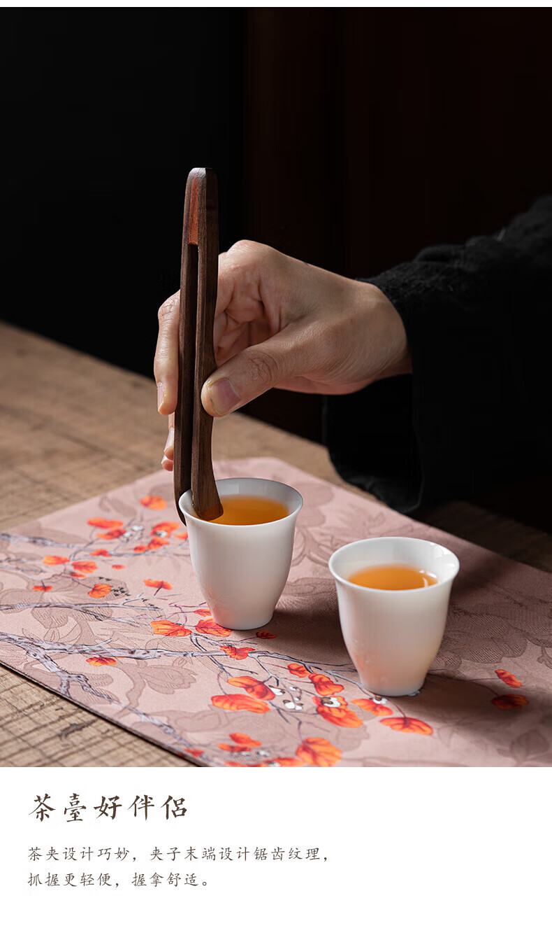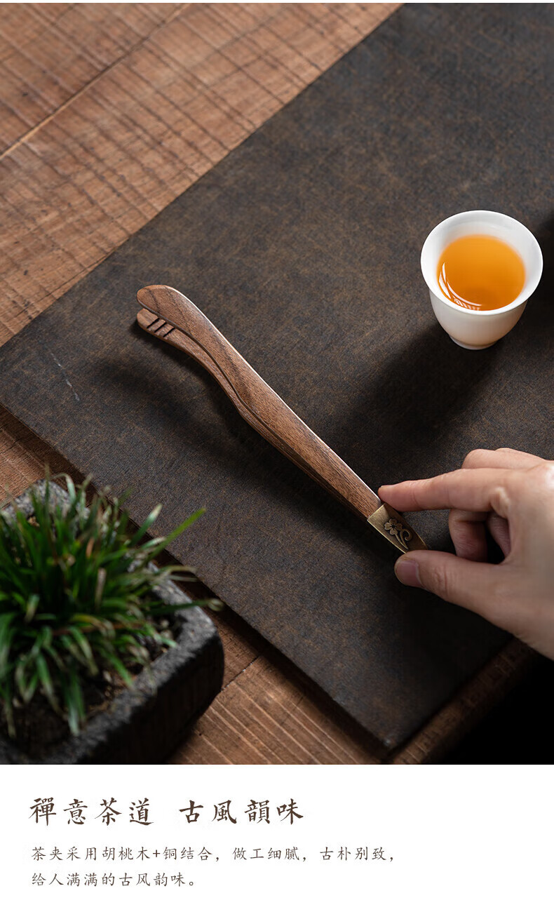 Xiyuanji walnut tea clip anti-scalding copper decorated Kung Fu tea set walnut tea clip-copper wood curved clip