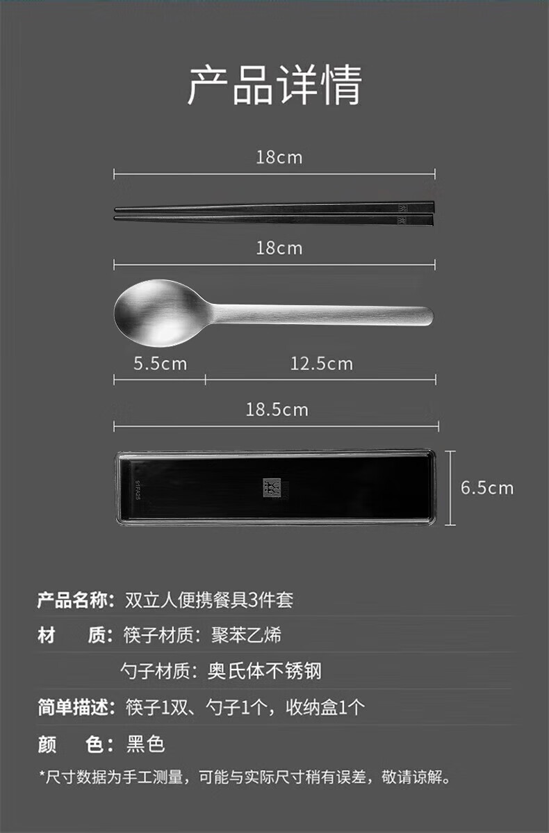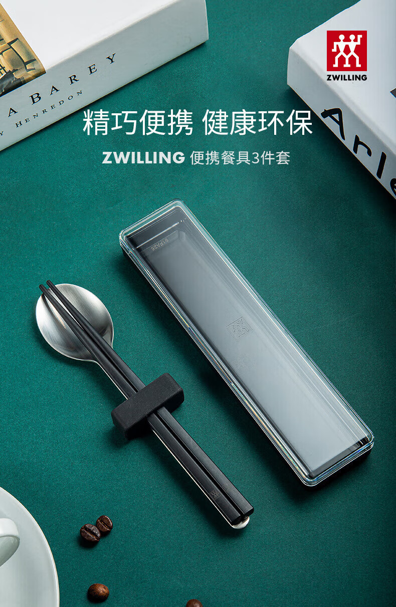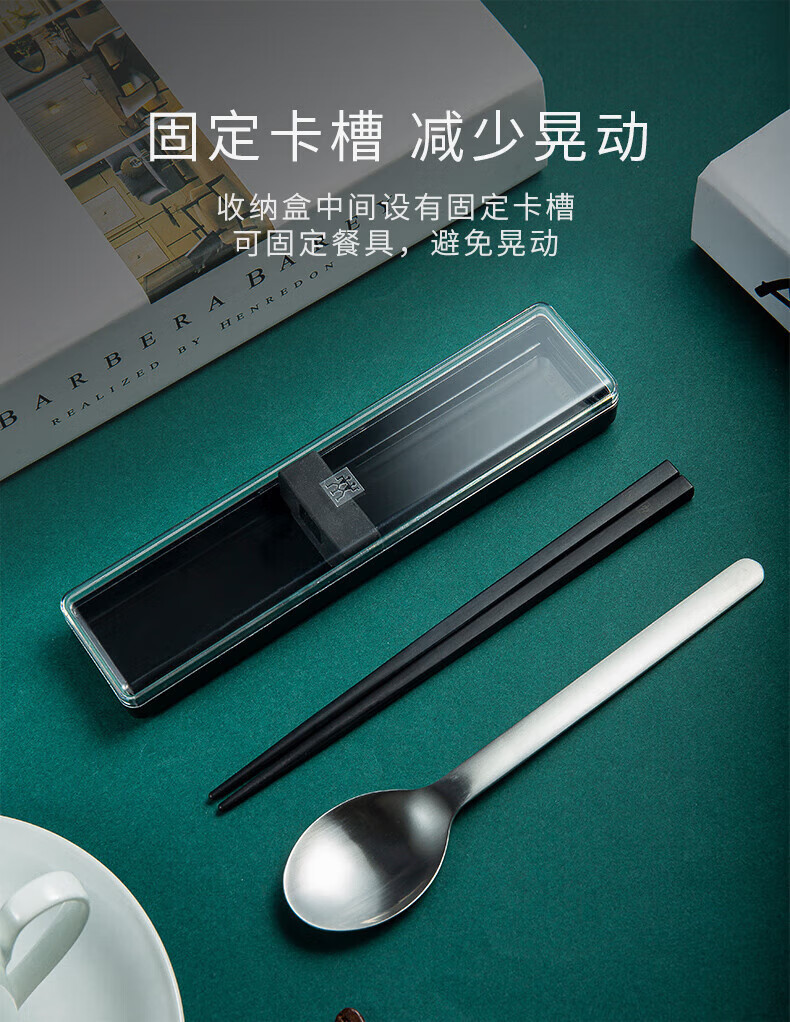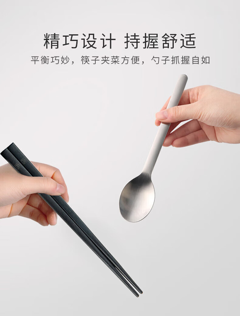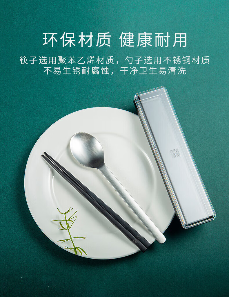ZWILLING Chopsticks and Spoon Set Storage Box Portable Tableware Cutlery Set for One Person Office Worker and Student Chopsticks and Spoon 3-piece Set
