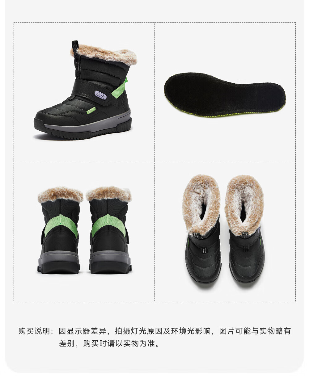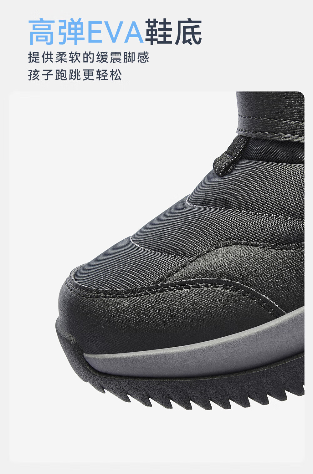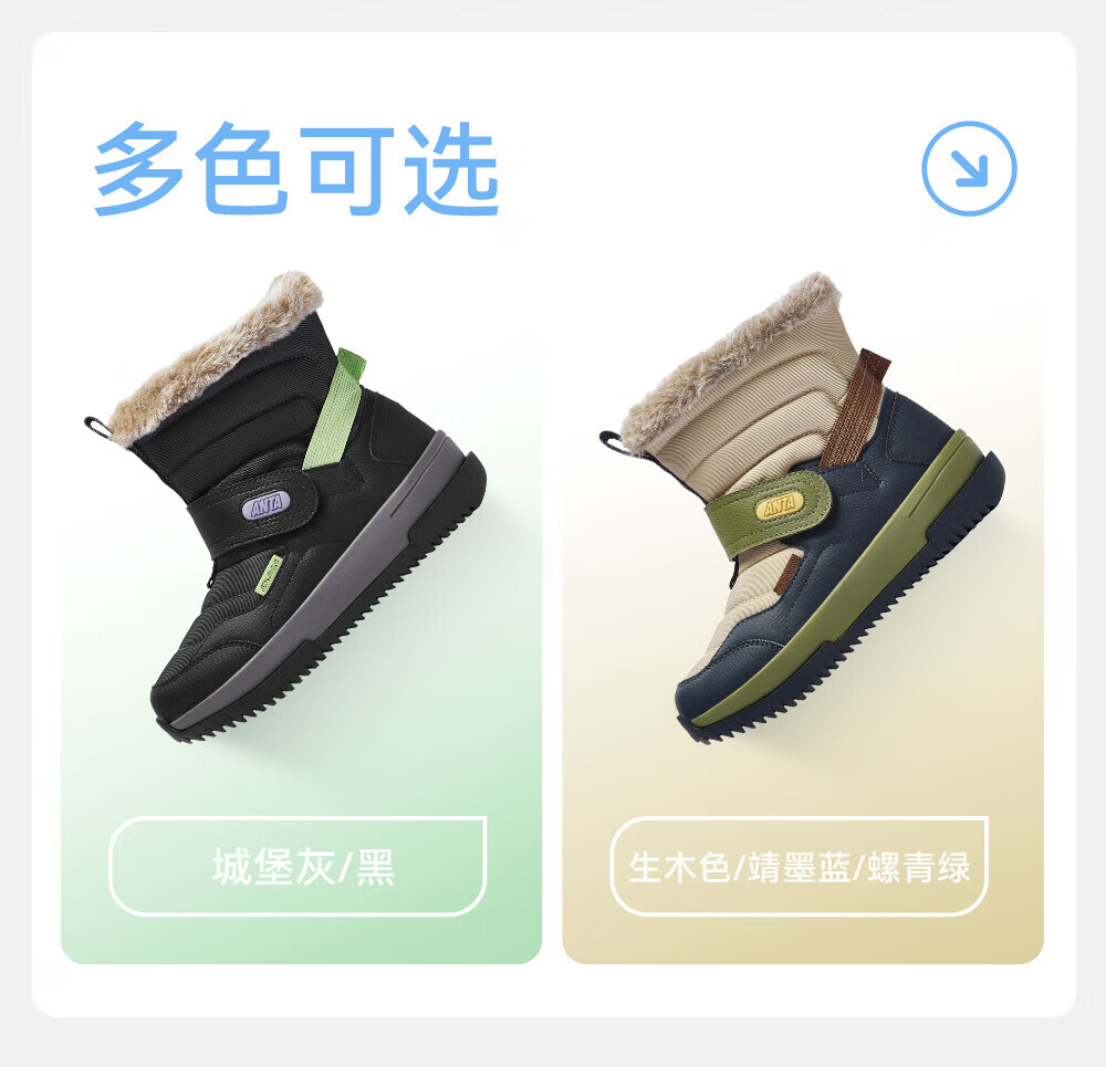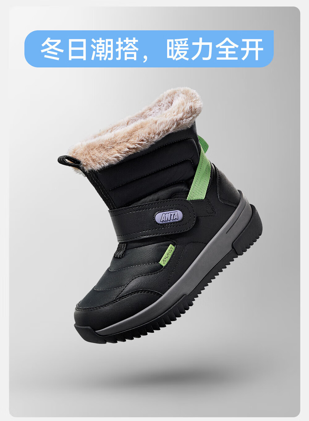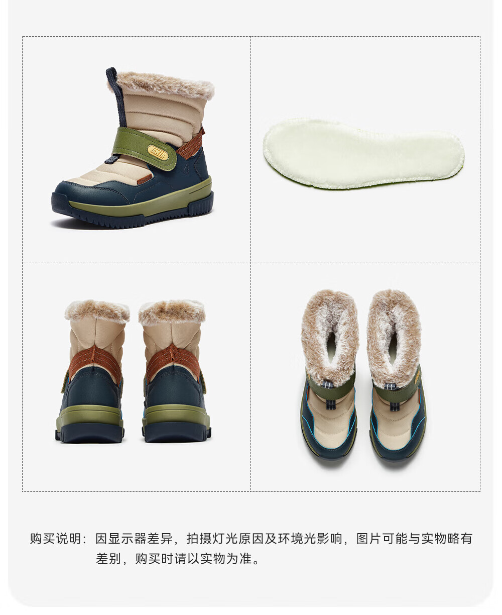ANTA children's cotton shoes for boys 2025 autumn and winter plus velvet to keep warm, non-slip and wear-resistant outdoor high-top long snow boots Castle Gray/Black-1 33 Inner length 20.5cm