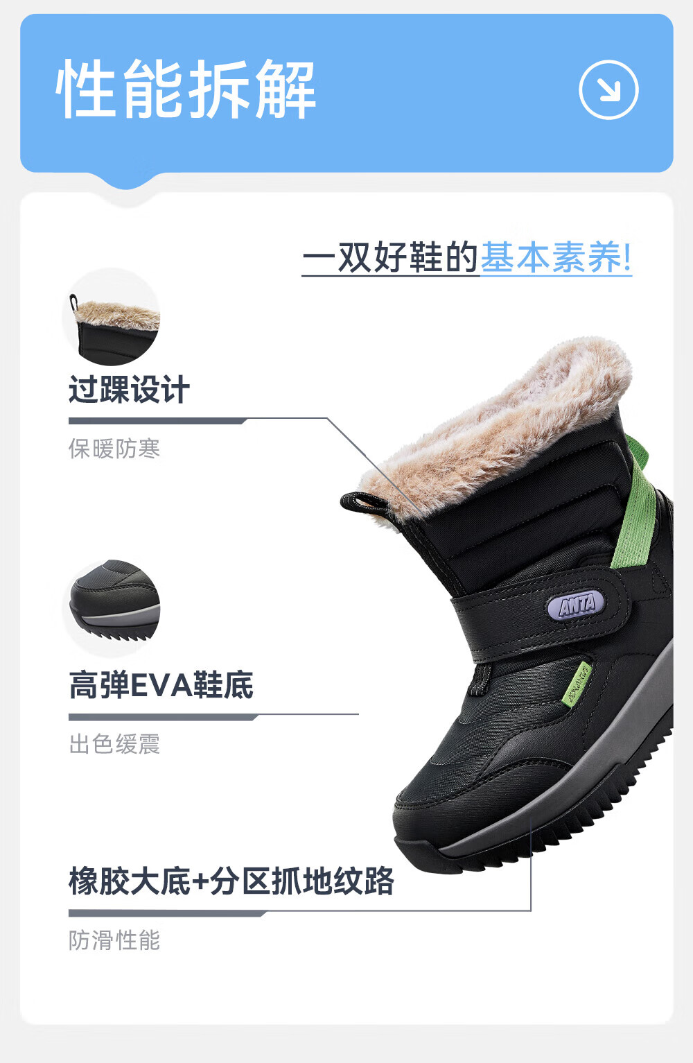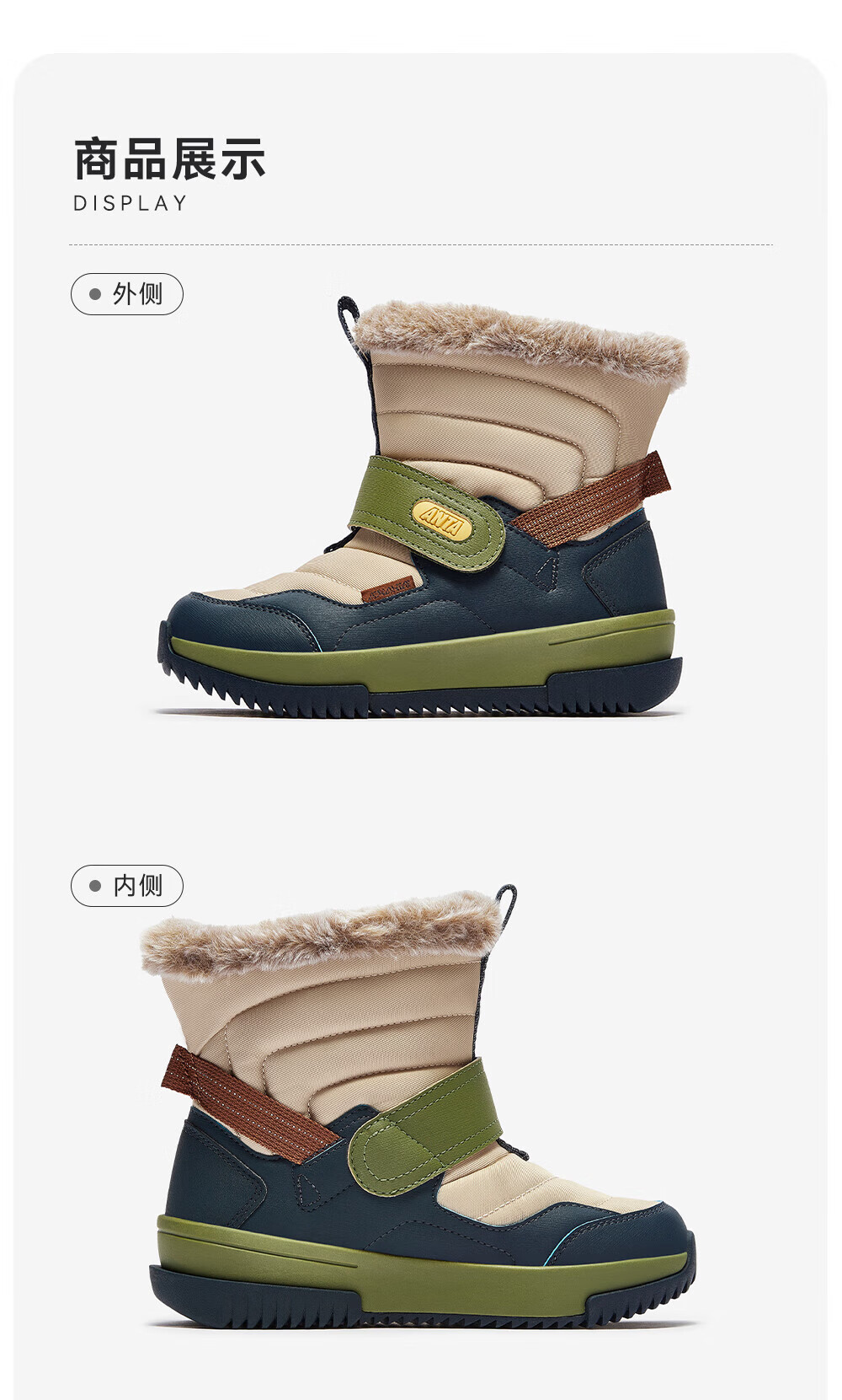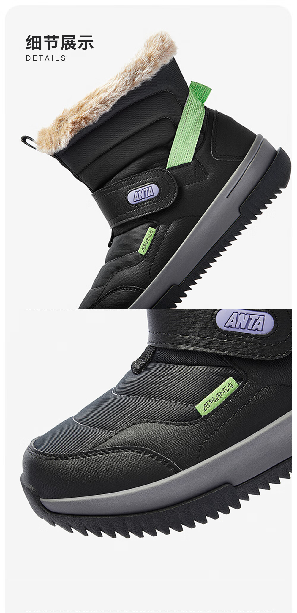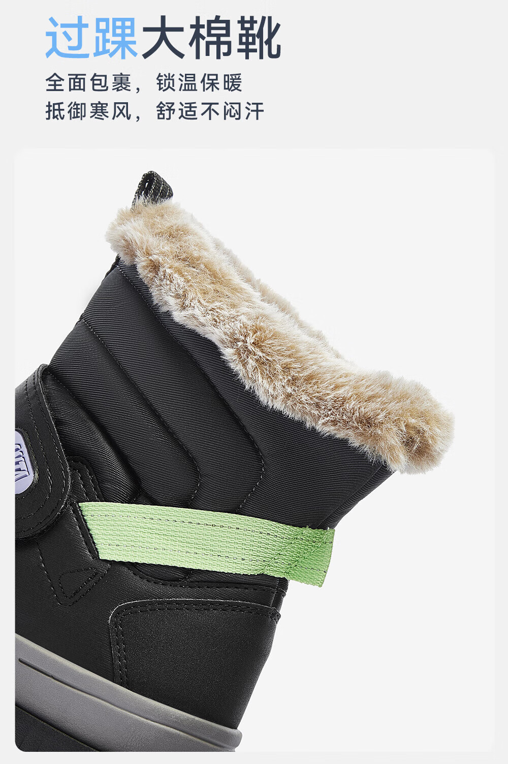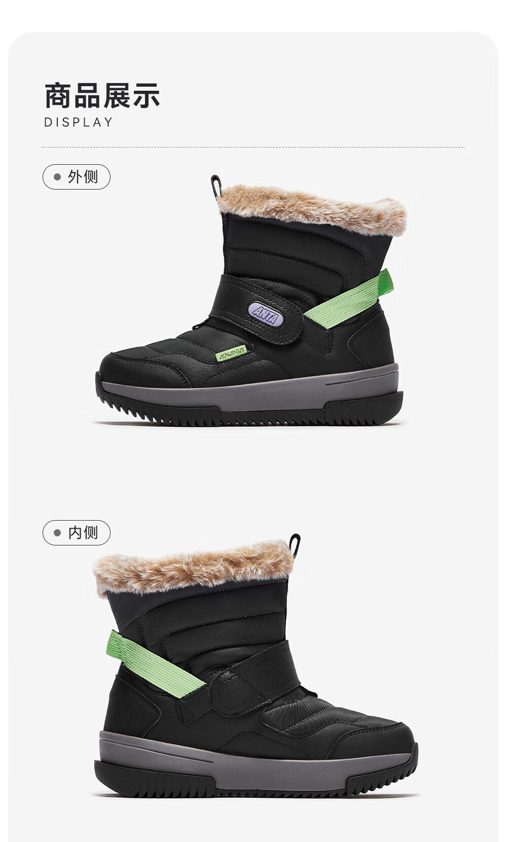 ANTA children's cotton shoes for boys 2025 autumn and winter plus velvet to keep warm, non-slip and wear-resistant outdoor high-top long snow boots Castle Gray/Black-1 33 Inner length 20.5cm