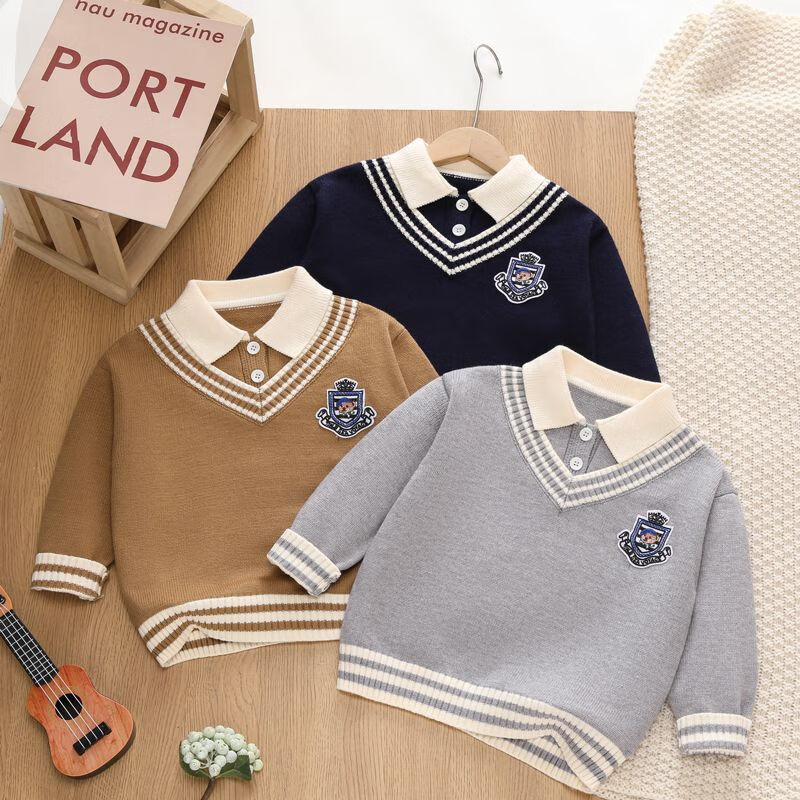 G.duck college style sweater for boys and girls in autumn and winter new style children's style children's fake two-piece sweater spring and autumn top shirt royal blue 140