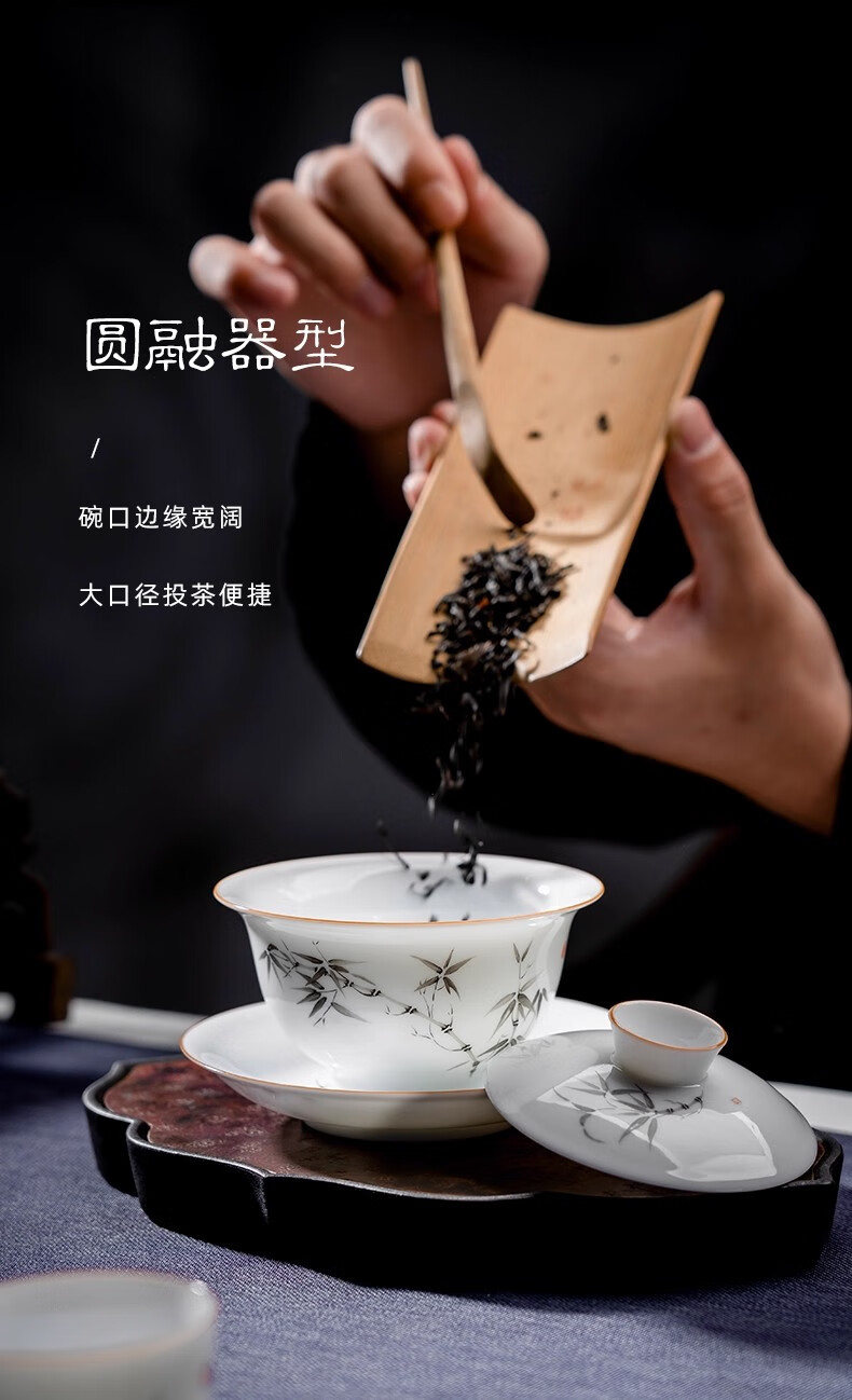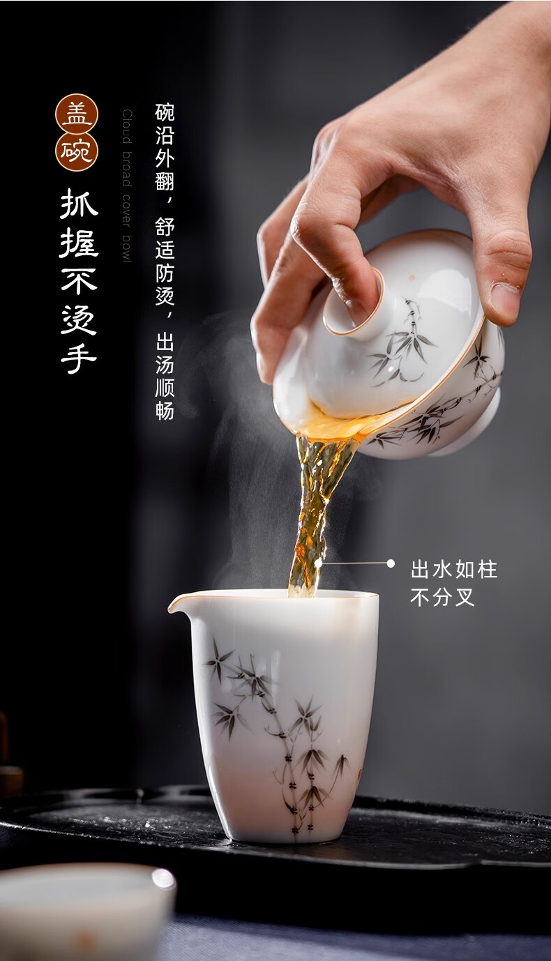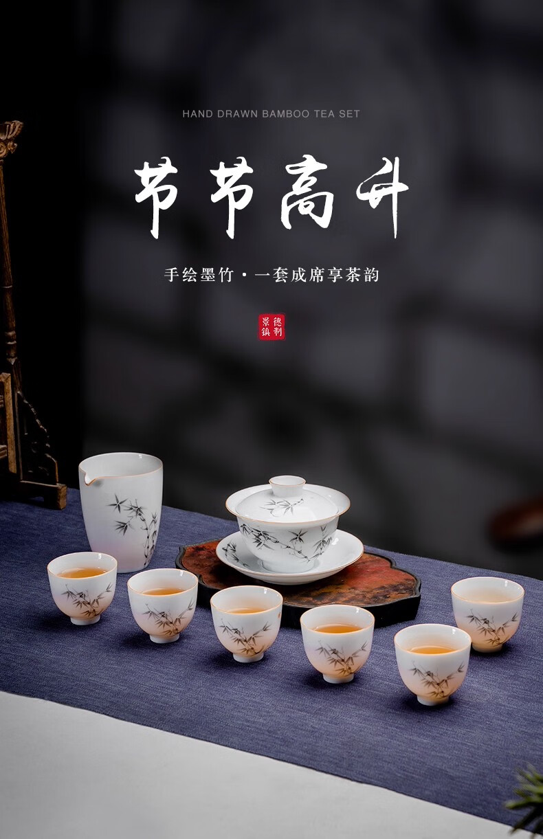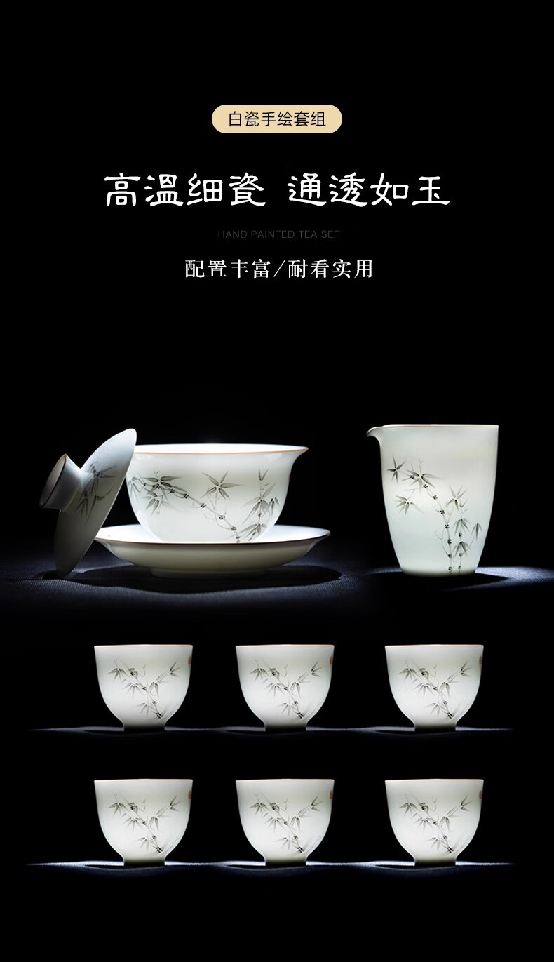 Tea Set Gift Box Kung Fu Tea Set Jingdezhen Ceramic Tea Cover Bowl Tea Cup Office High-end Tea Art Gift Festival High-Sheng 8 Heads (Gift Box)