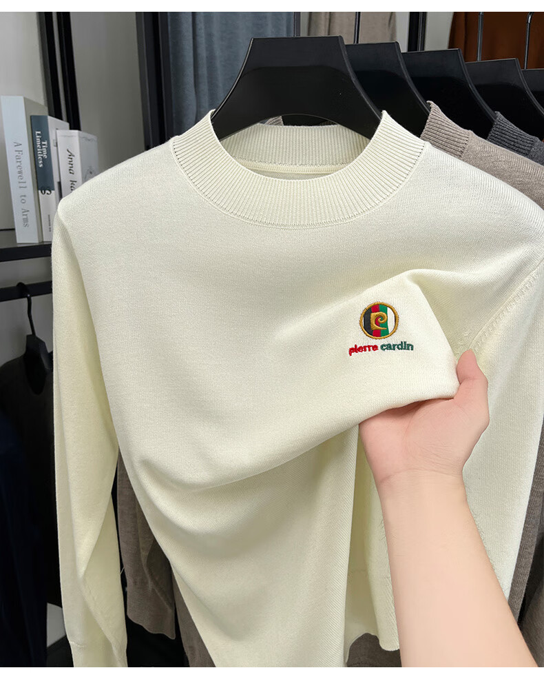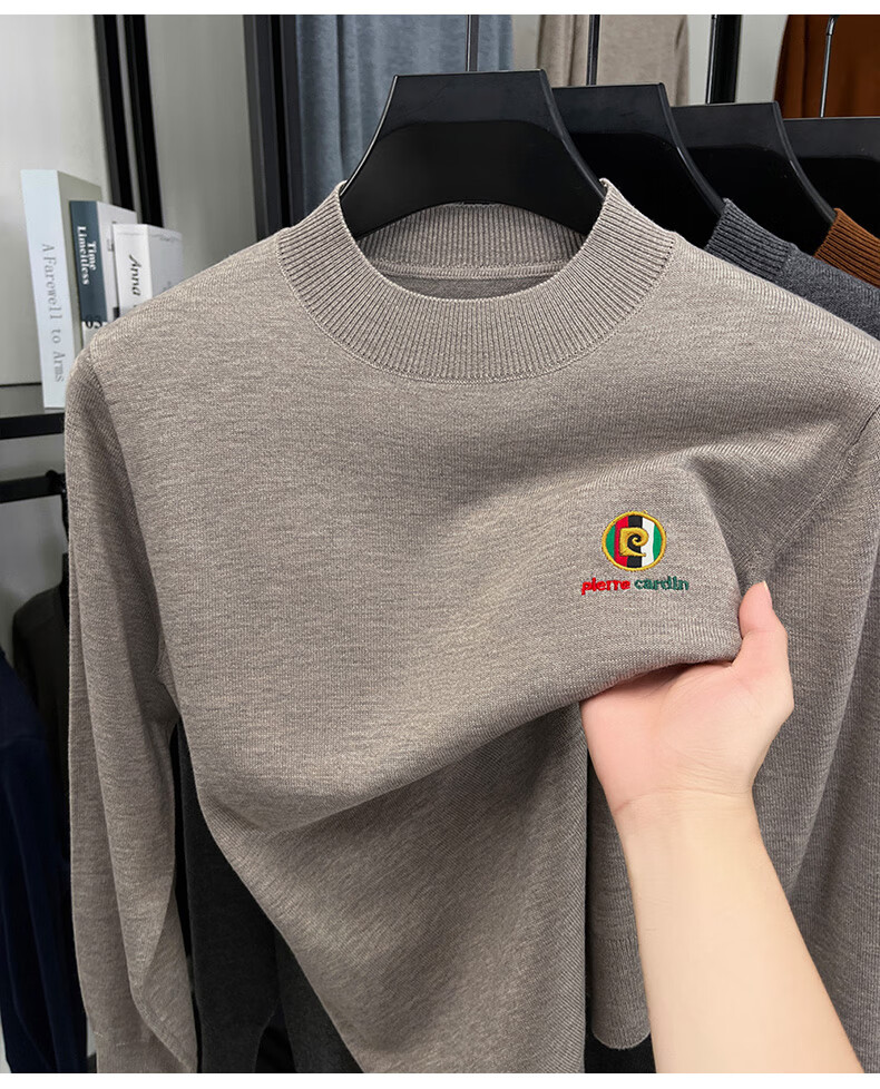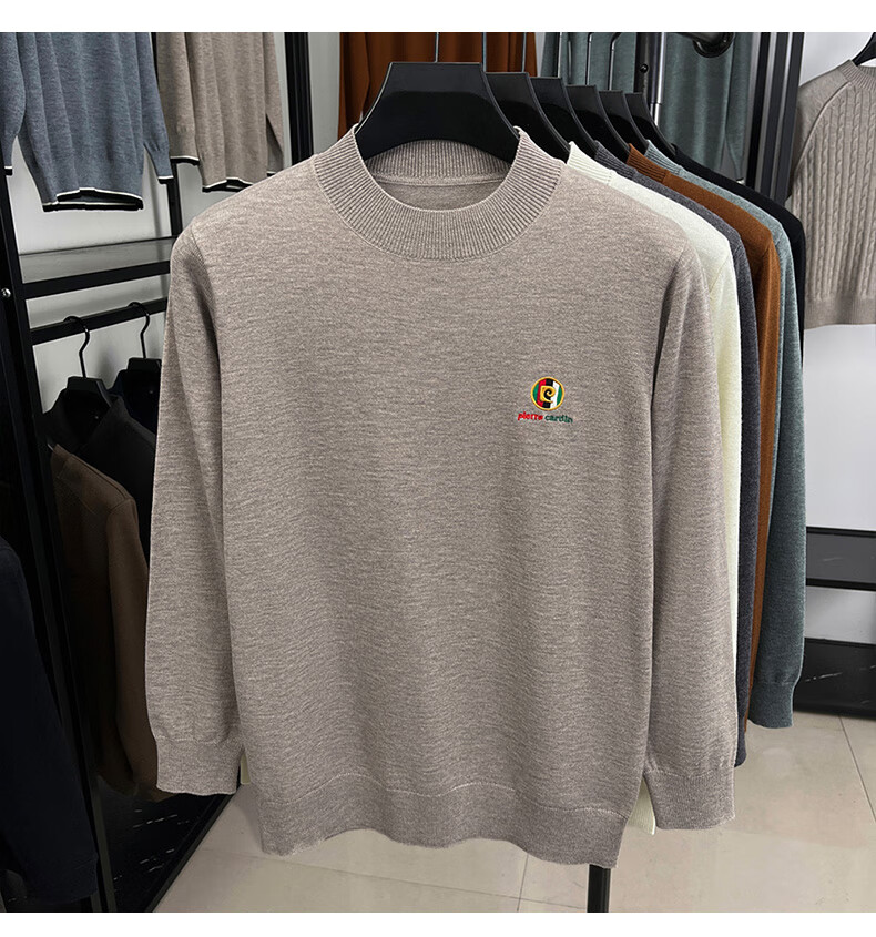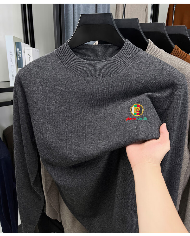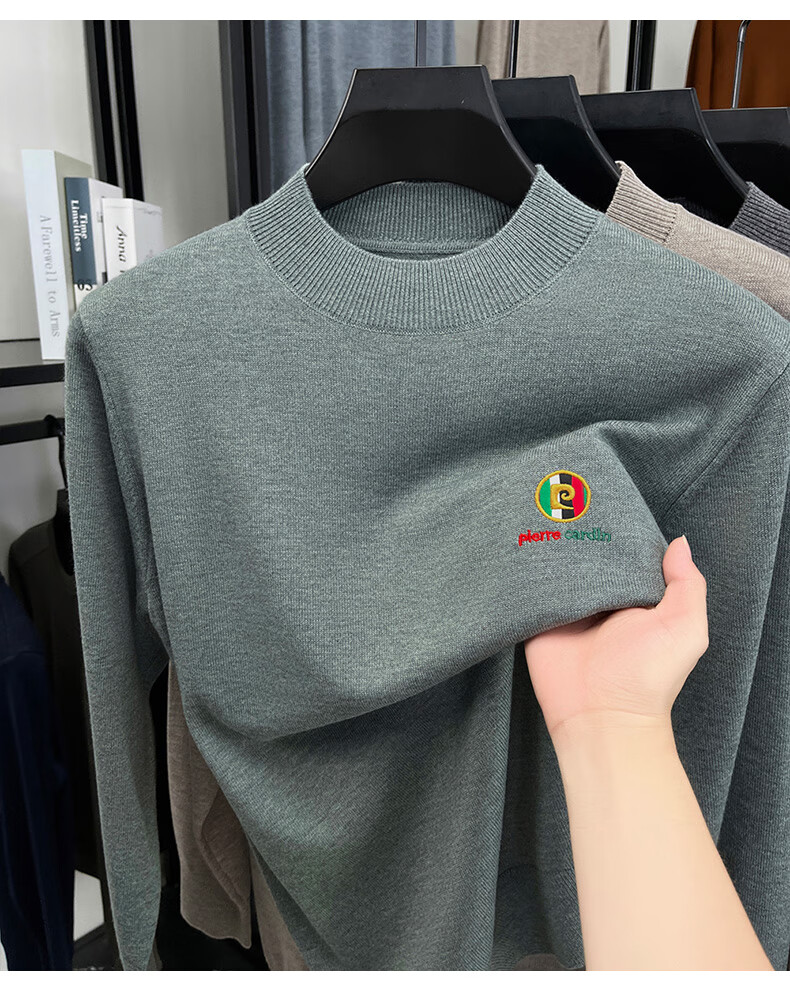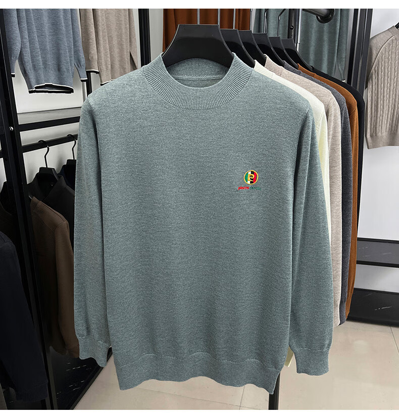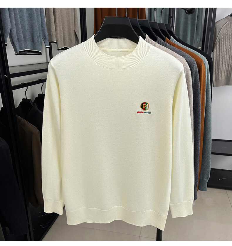 Pierre Cardin's new sweater gray American retro Henry collar sweater men's winter lazy style high-end inner sweater milk white M (110)