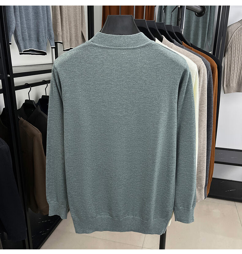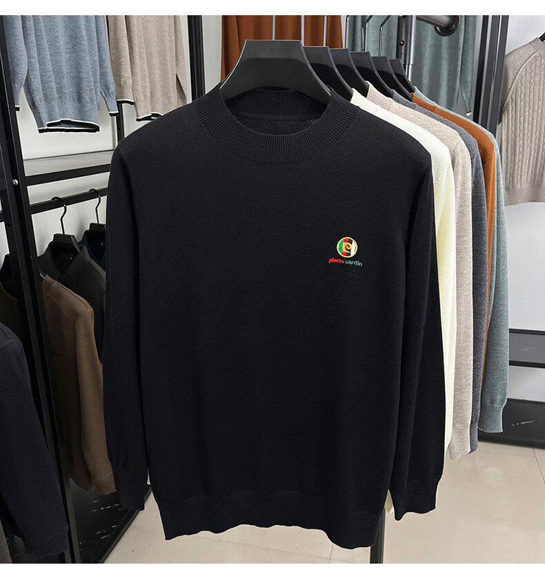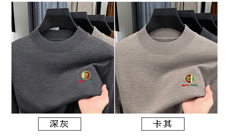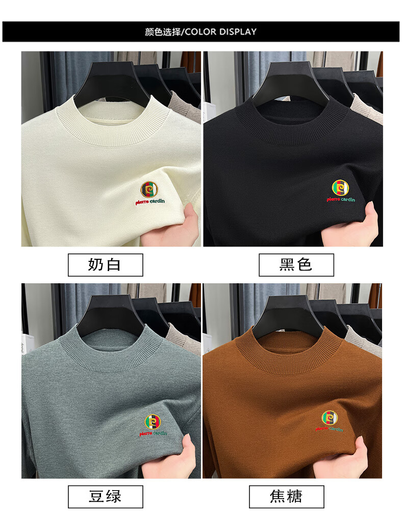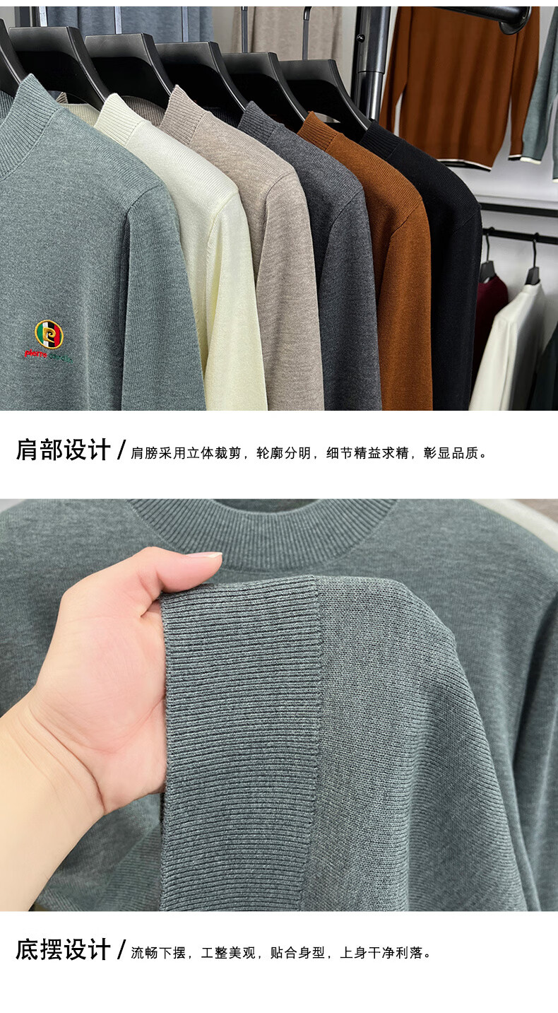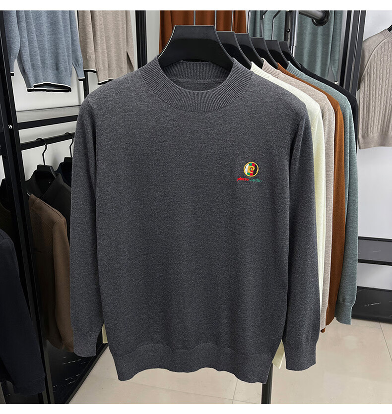 Pierre Cardin's new sweater gray American retro Henry collar sweater men's winter lazy style high-end inner sweater milk white M (110)