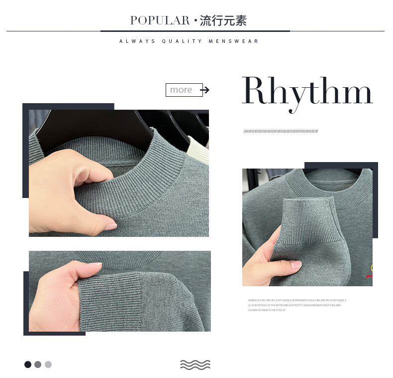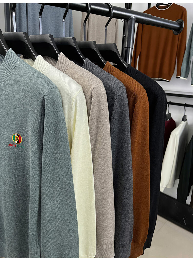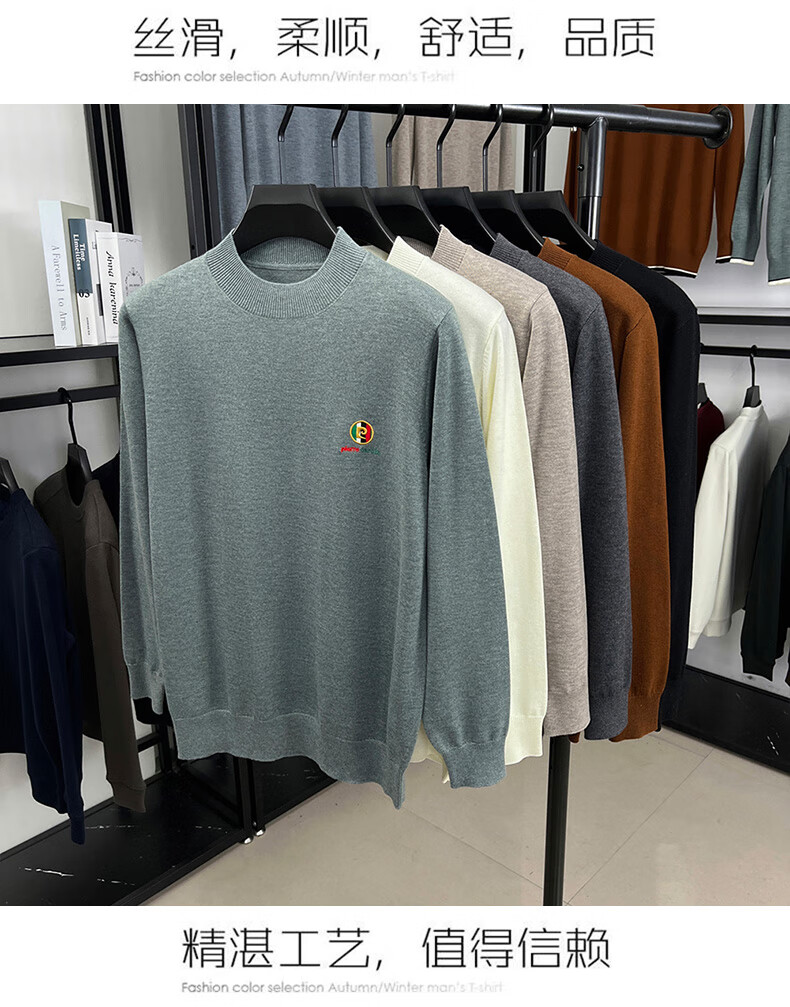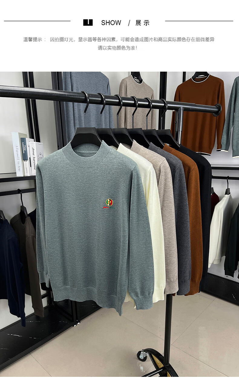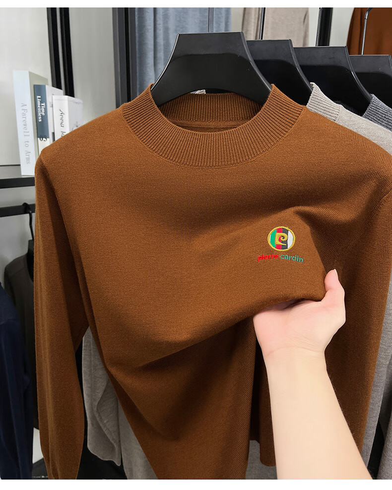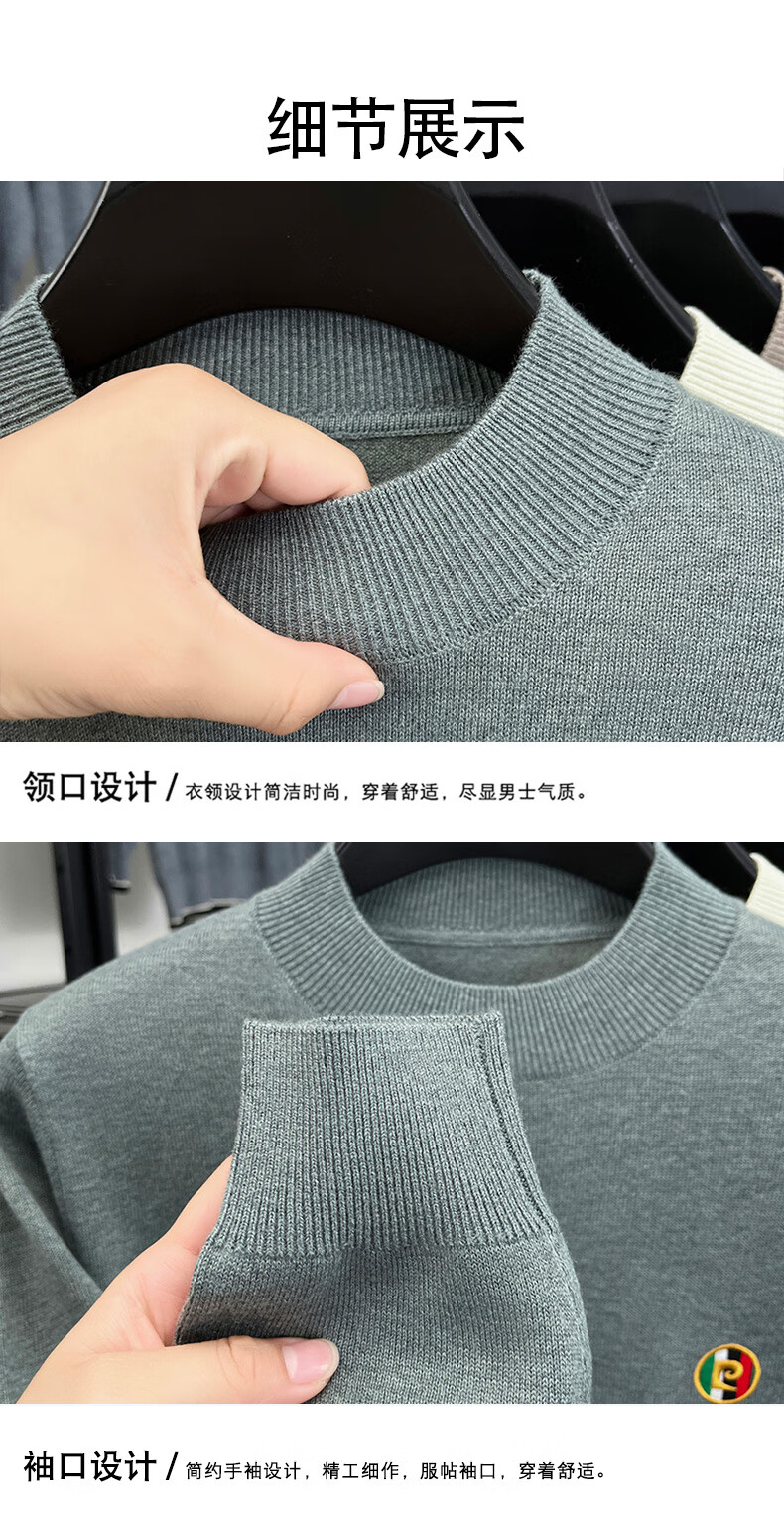 Pierre Cardin's new sweater gray American retro Henry collar sweater men's winter lazy style high-end inner sweater milk white M (110)