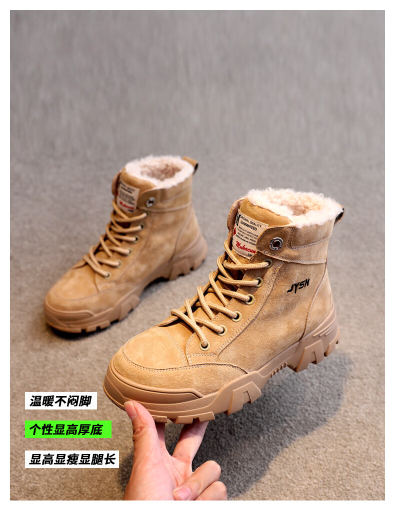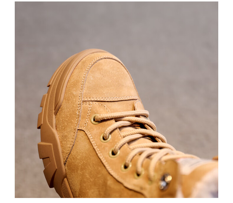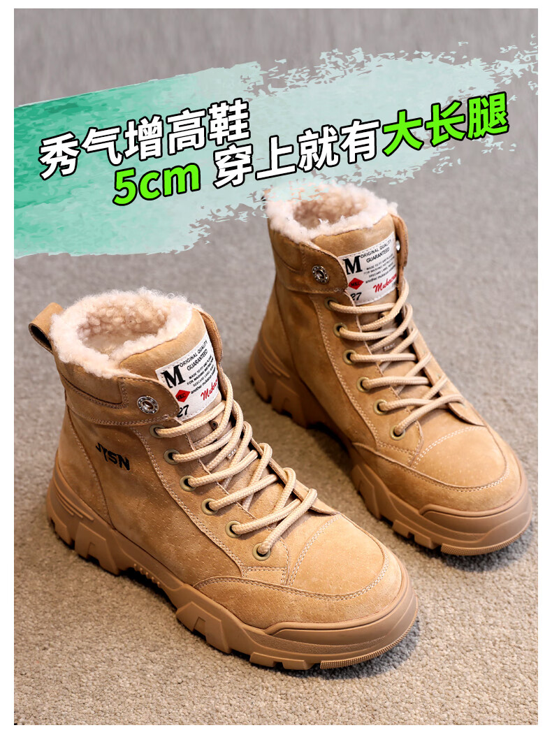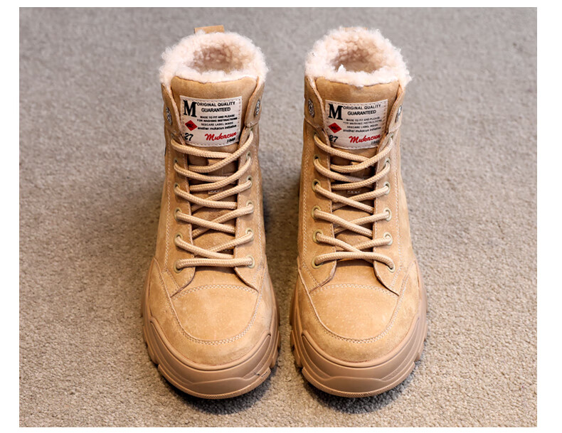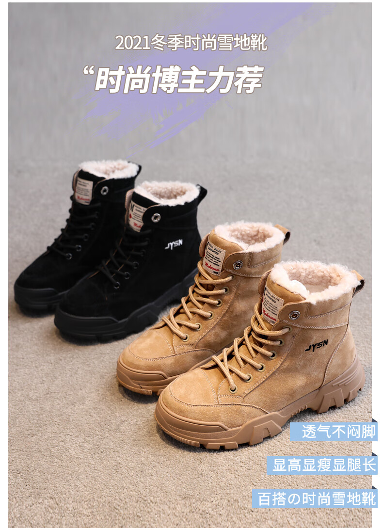 Belle Snow Boots Women's Anti-Slip Martin Boots Snow Shoes Short Boots Plus Velvet Boots Large Size Cotton Boots Women's Shoes Warm Cotton Shoes 21966 Thin Cotton Khaki 35