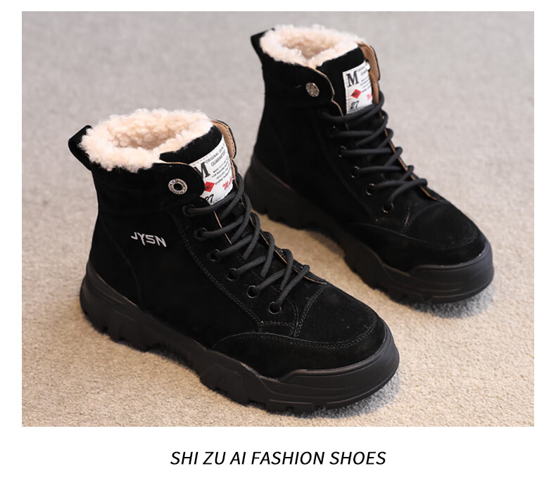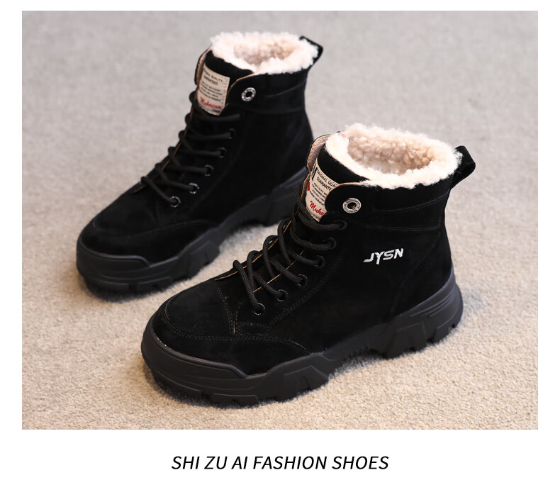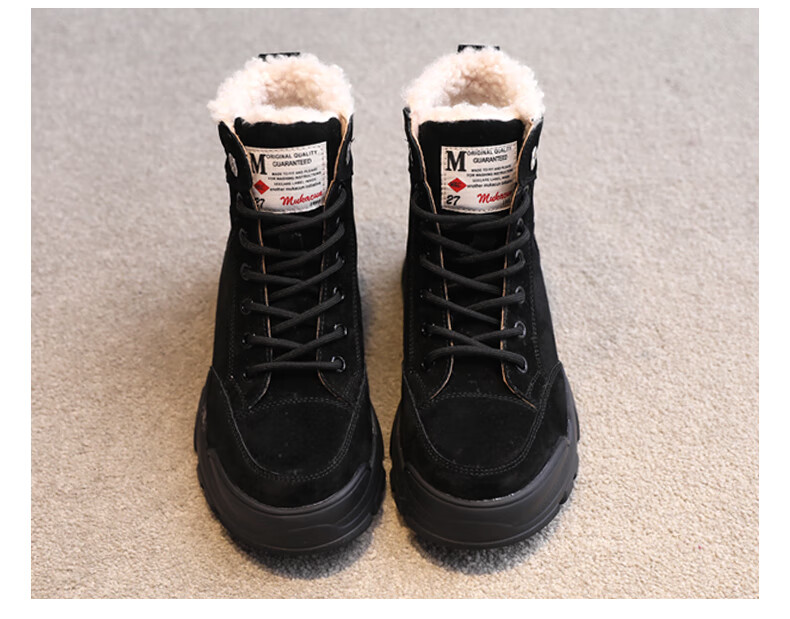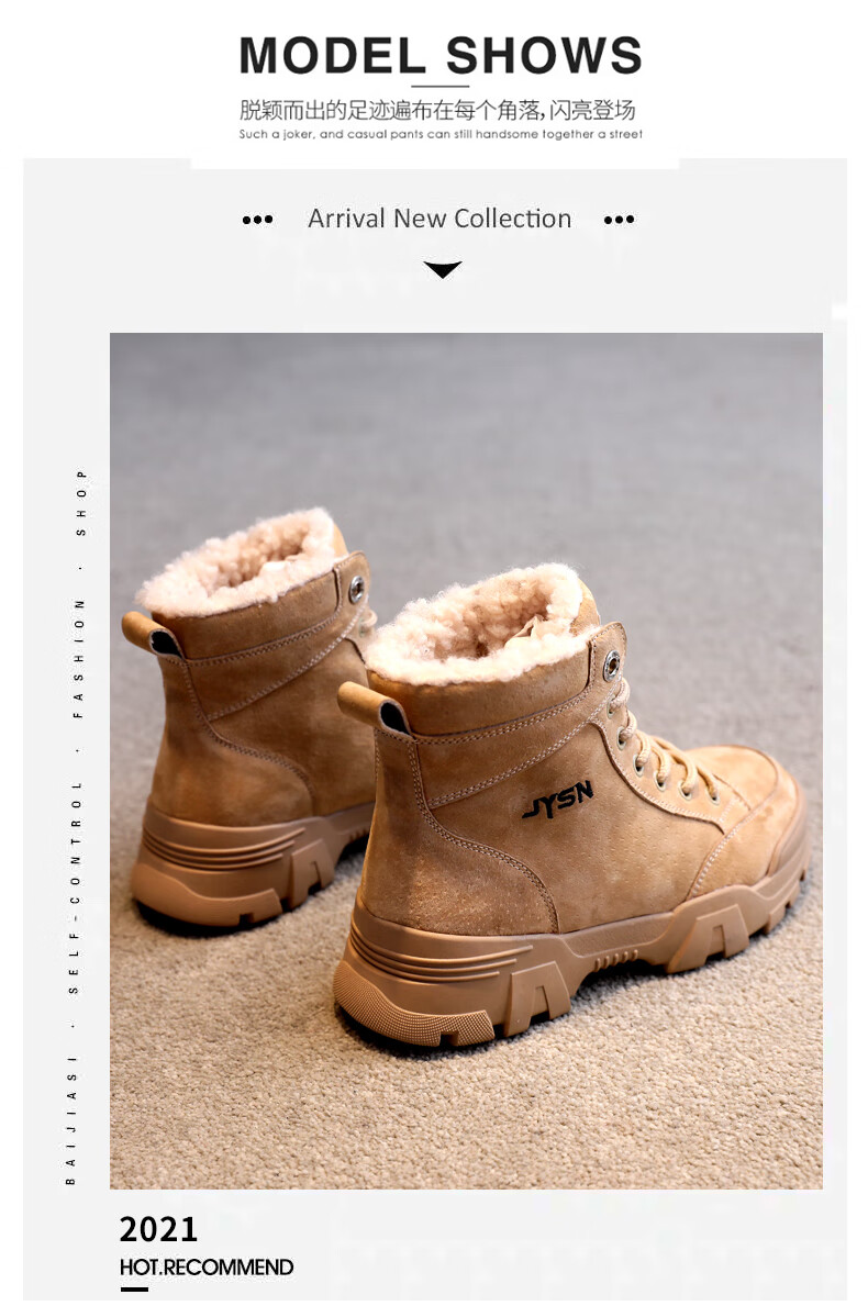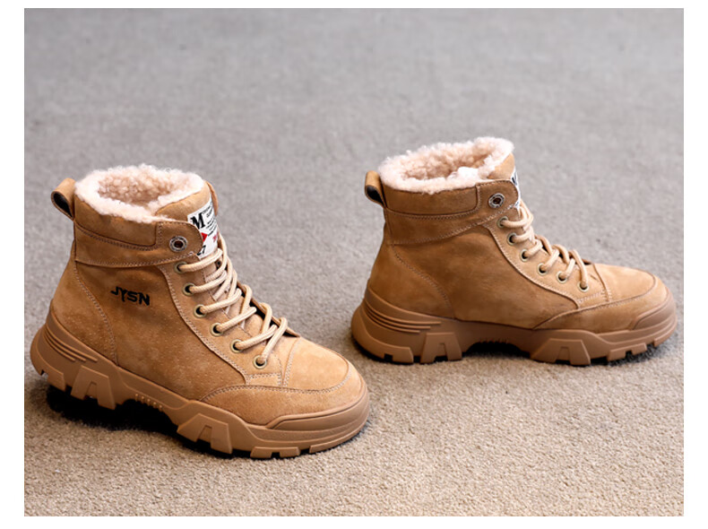 Belle Snow Boots Women's Anti-Slip Martin Boots Snow Shoes Short Boots Plus Velvet Boots Large Size Cotton Boots Women's Shoes Warm Cotton Shoes 21966 Thin Cotton Khaki 35