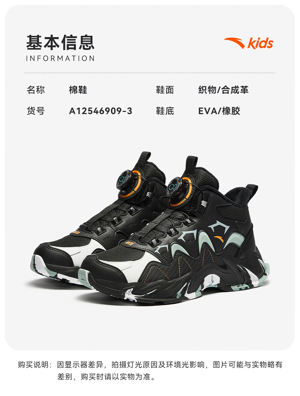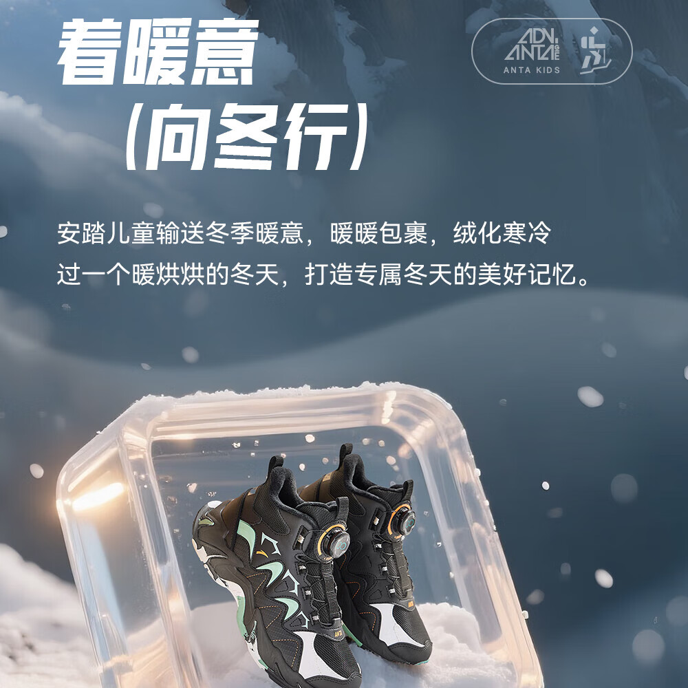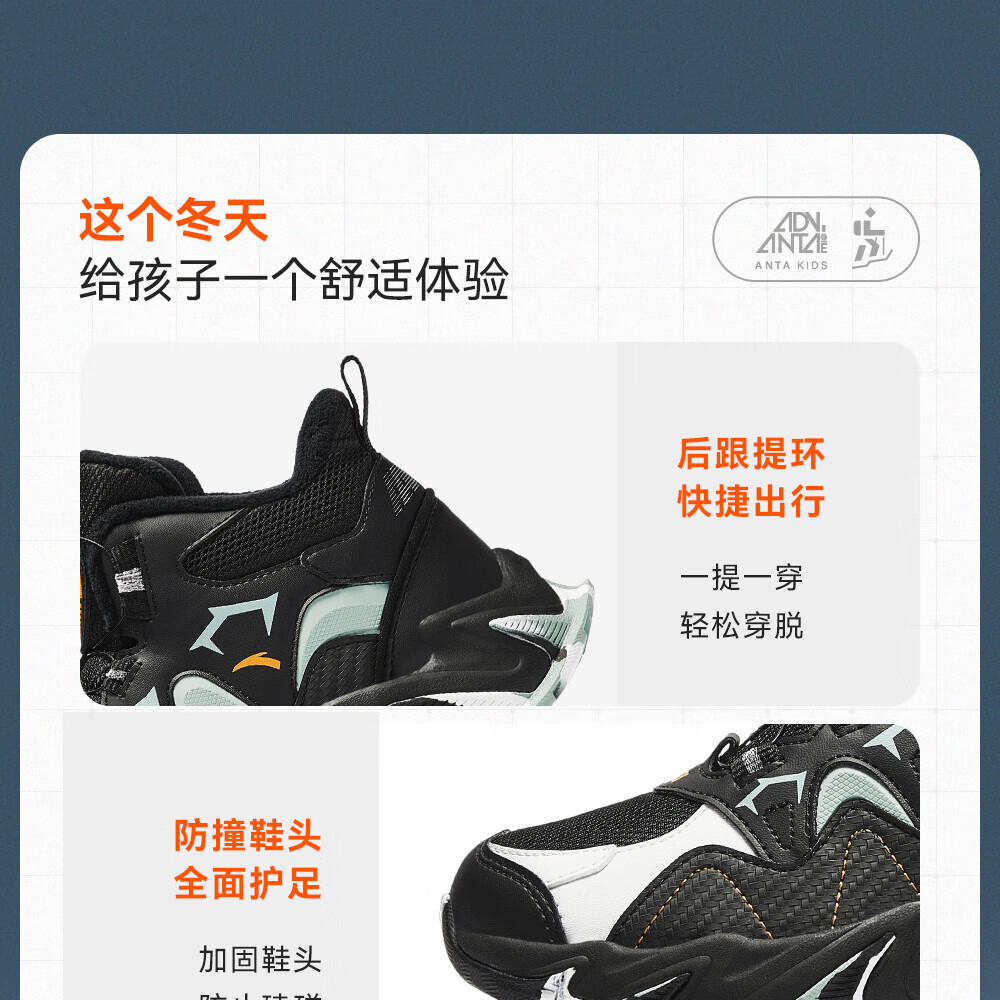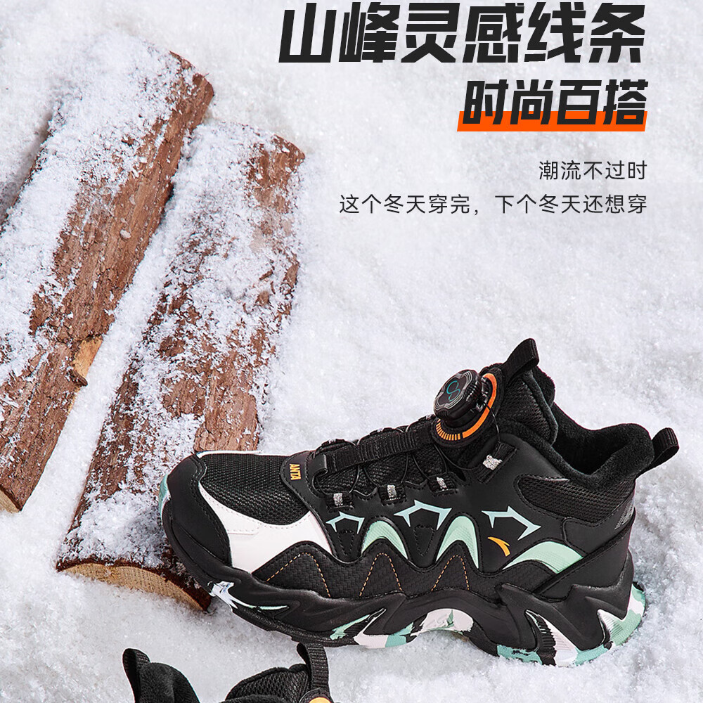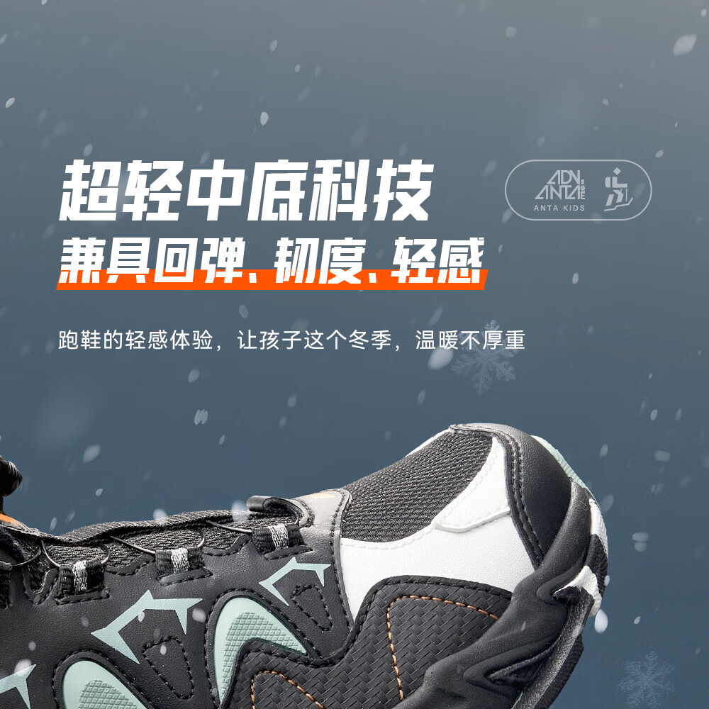 ANTA Children's Cotton Shoes for Men and Women 2025 Autumn and Winter New Fashion Knob Buckle Wear-Resistant Anti-Slip Outdoor Snow Boots Store Manager Recommends Black-3 33 Shoe Inner Length 20.5cm
