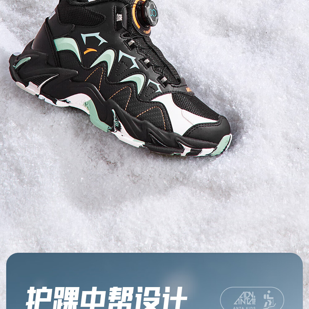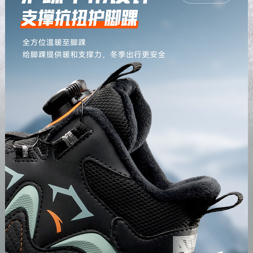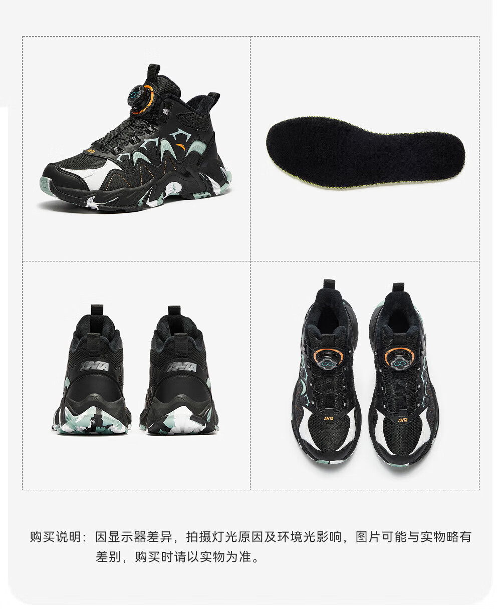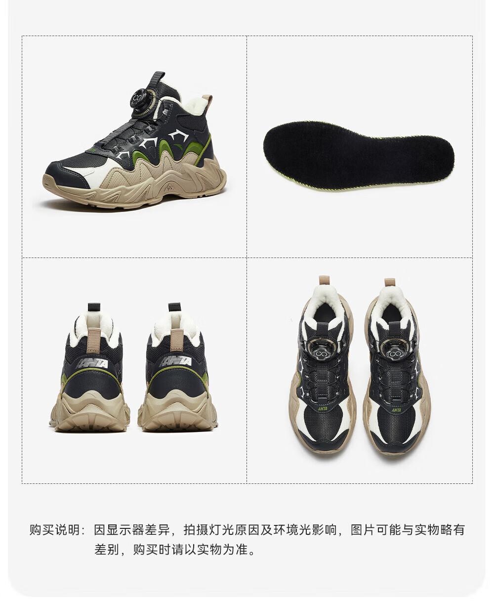 ANTA Children's Cotton Shoes for Men and Women 2025 Autumn and Winter New Fashion Knob Buckle Wear-Resistant Anti-Slip Outdoor Snow Boots Store Manager Recommends Black-3 33 Shoe Inner Length 20.5cm